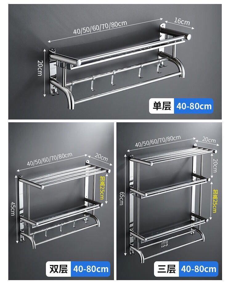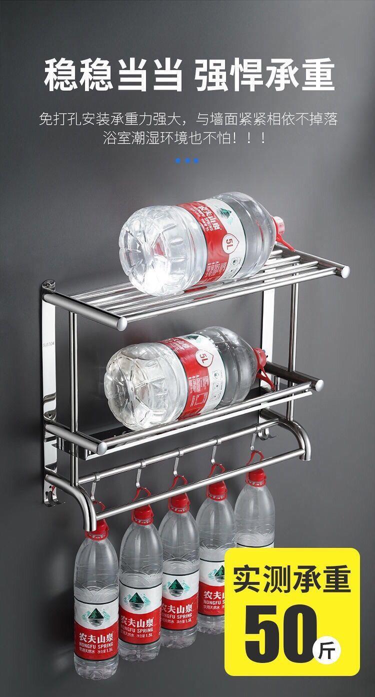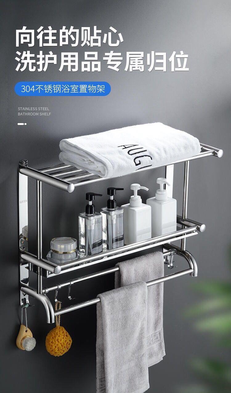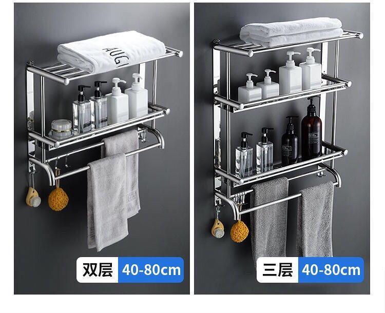 浴室304不绣钢架卫生间置物架毛巾架免打孔墙上置物架高档浴巾架
