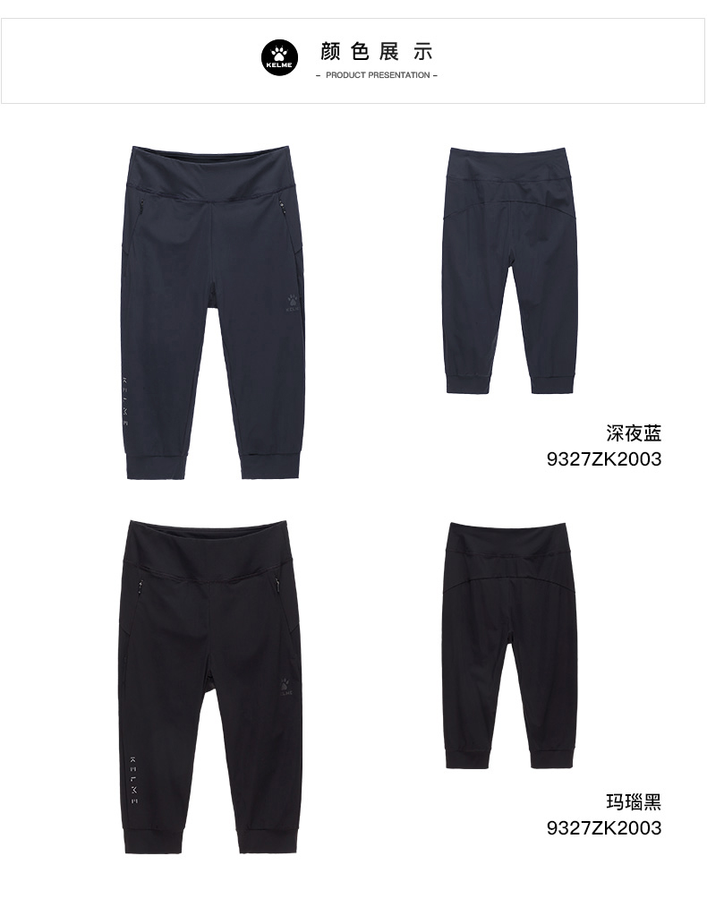 KELME卡尔美弹力针织七分裤女2025夏季冰丝凉感训练瑜伽运动裤子