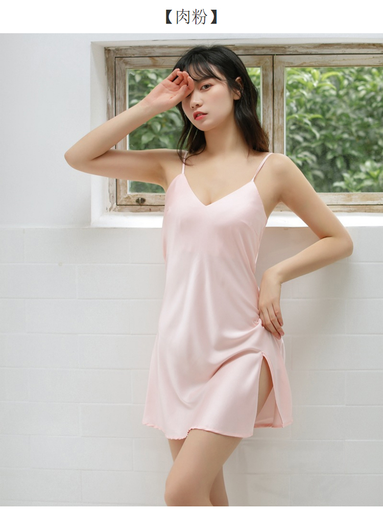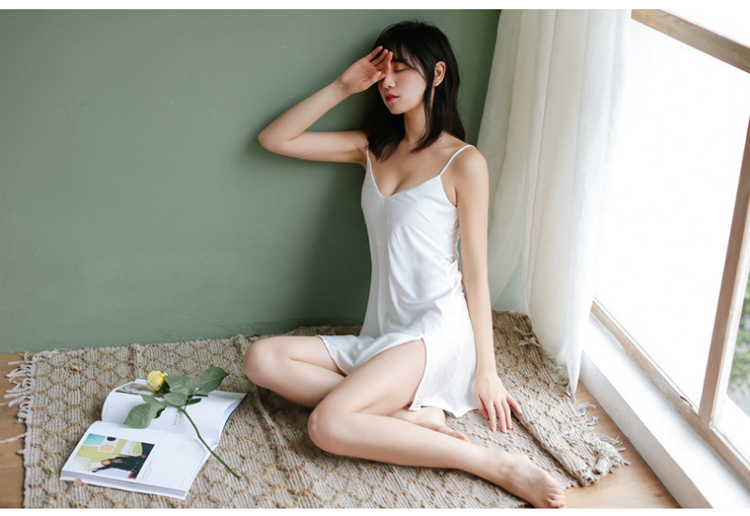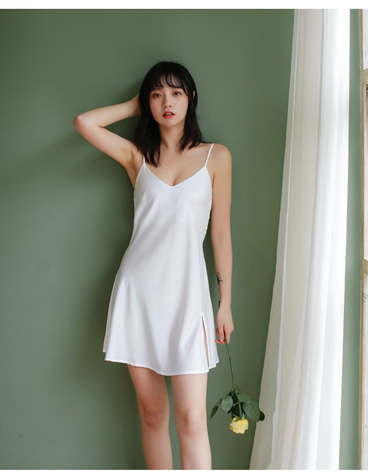仿真丝白色睡衣夏季女薄款性感修身V领情调衣人冰丝吊带睡裙春秋