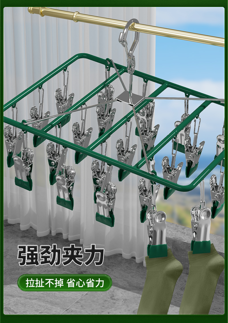 不锈钢家用多夹子晾衣架挂晒袜子架功能婴儿宝宝神器凉晒内衣内裤