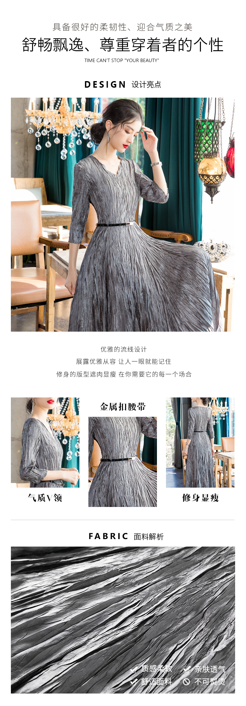 三宅法式优雅大码连衣裙女春秋高级质感褶皱系带收腰显瘦百褶长裙