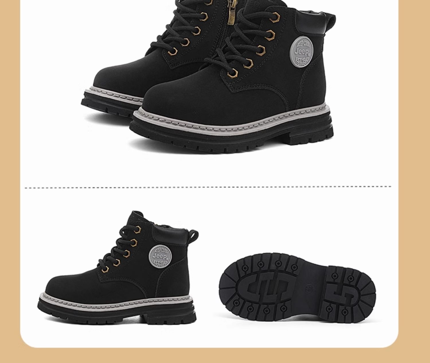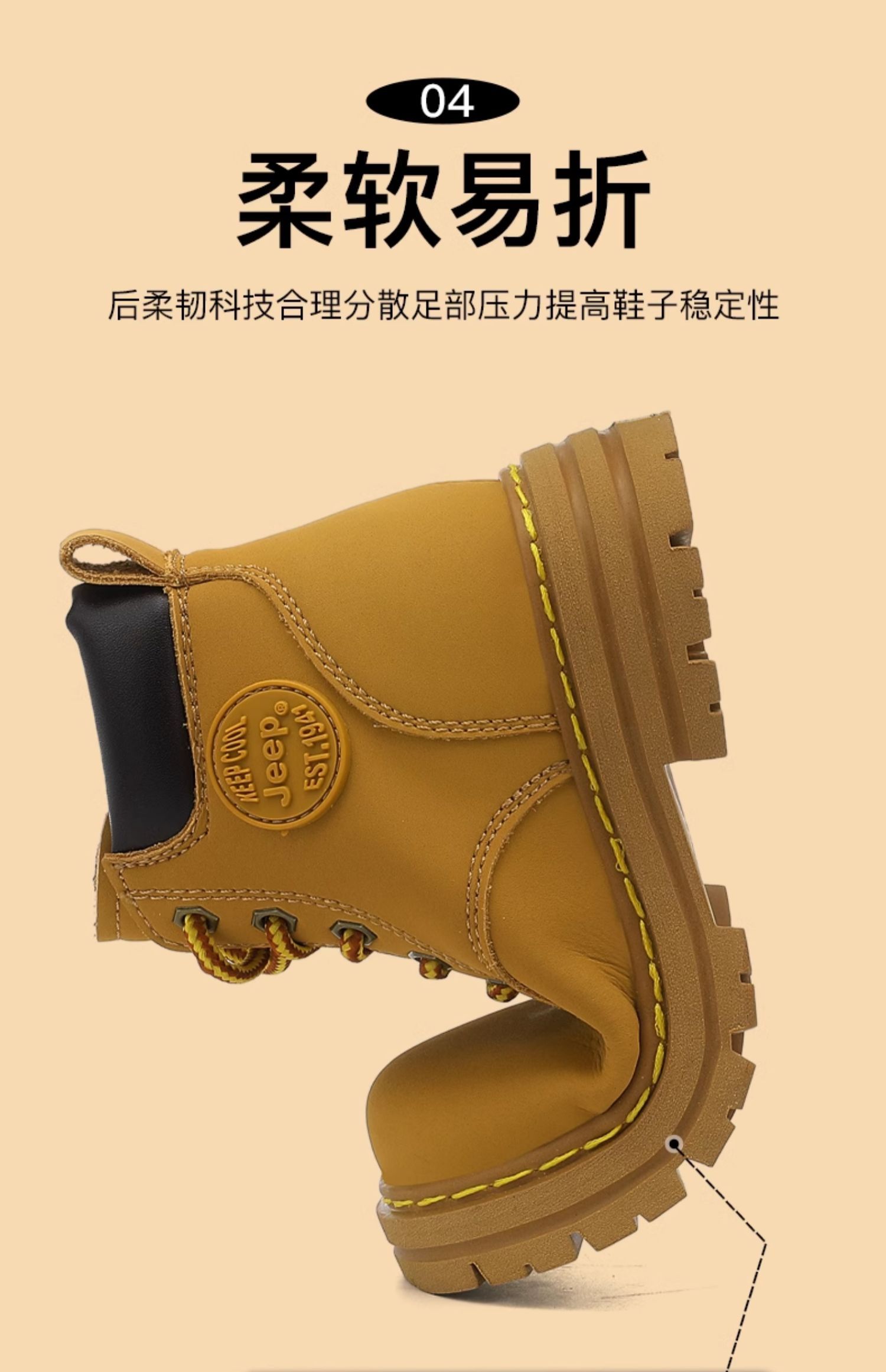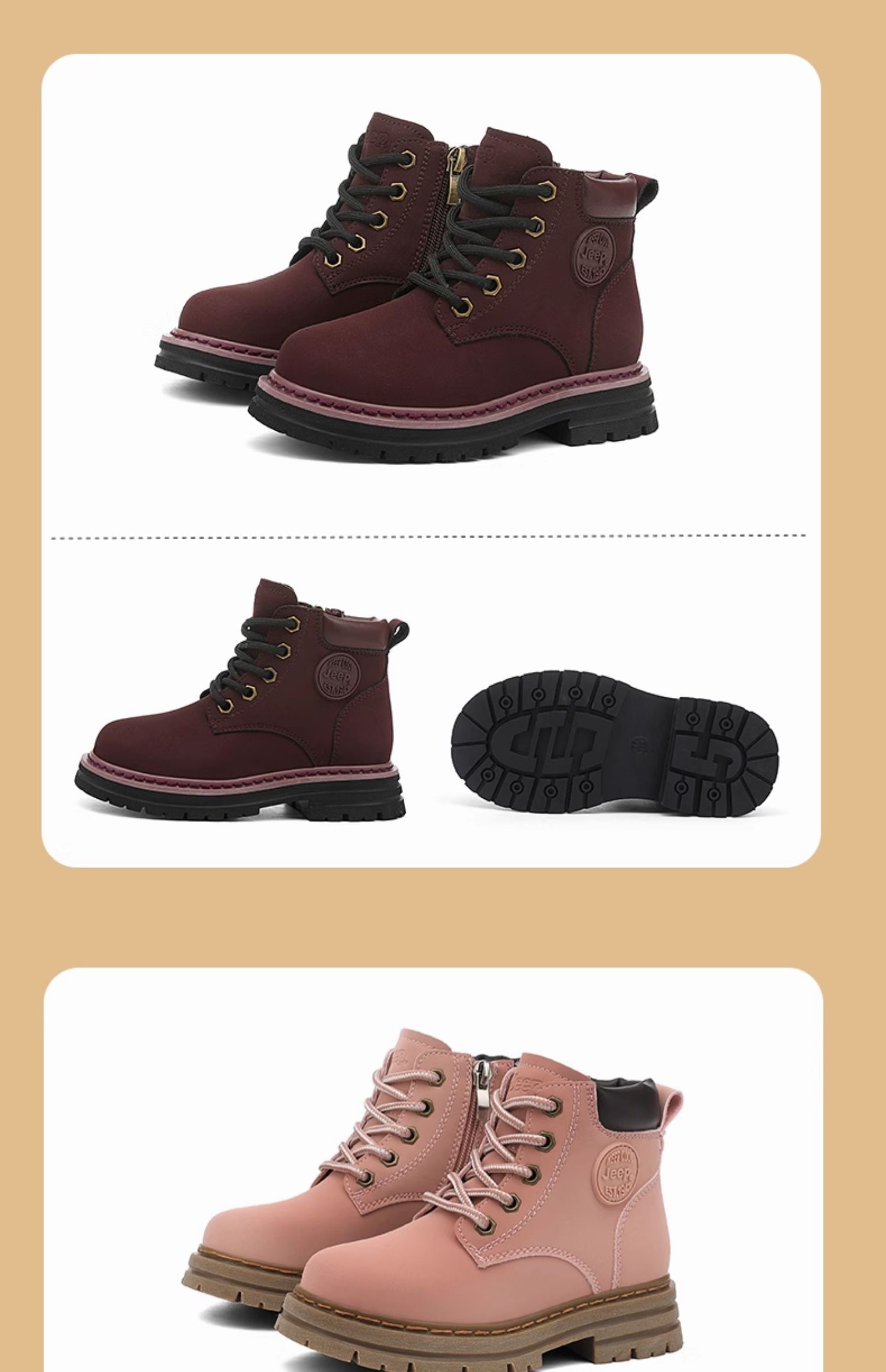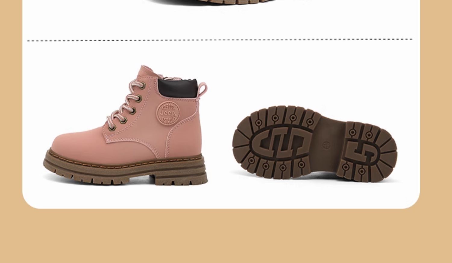 JEEP儿童马丁靴大黄靴皮靴男童女童鞋子2025春秋男孩防滑户外靴子