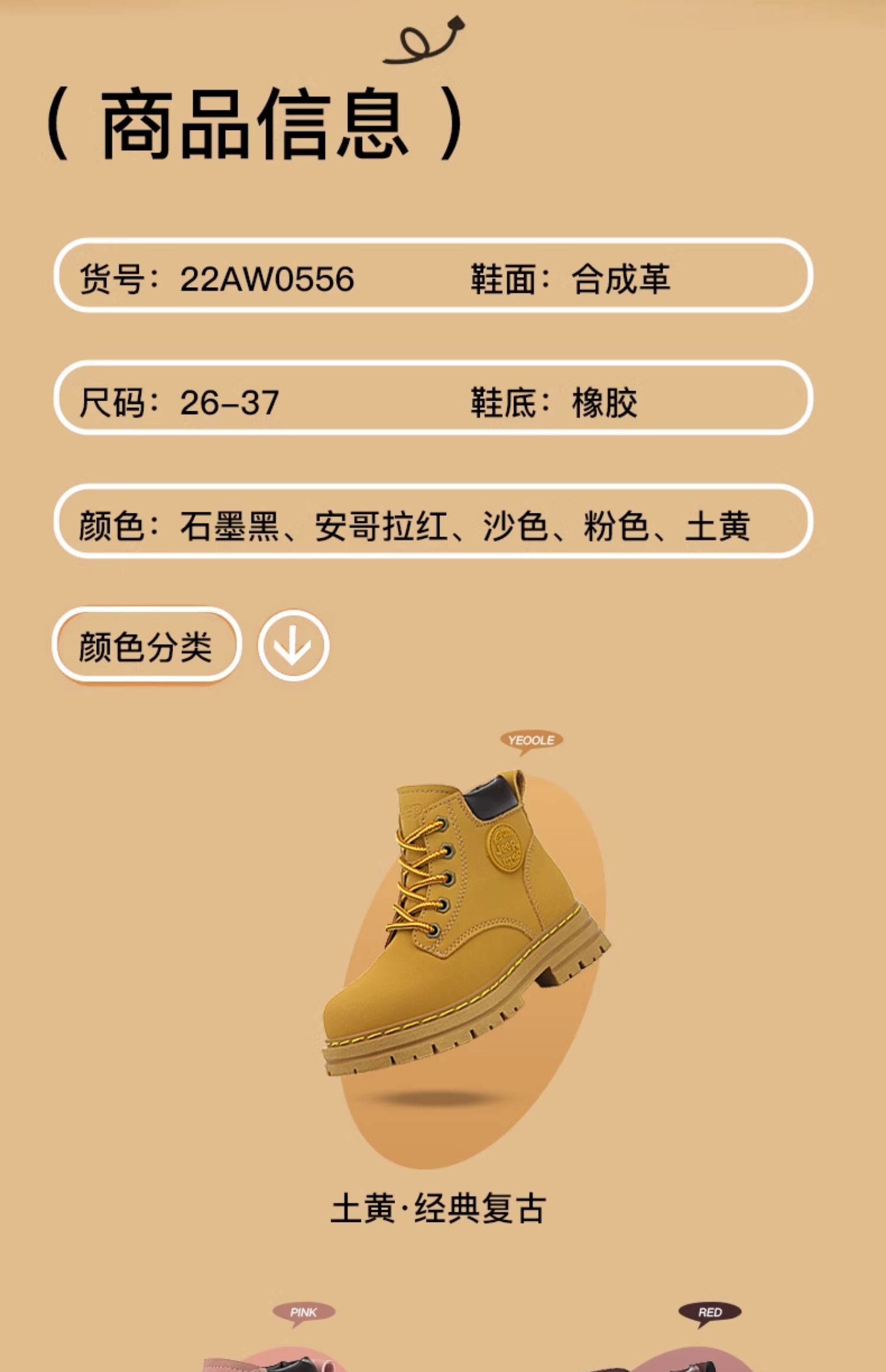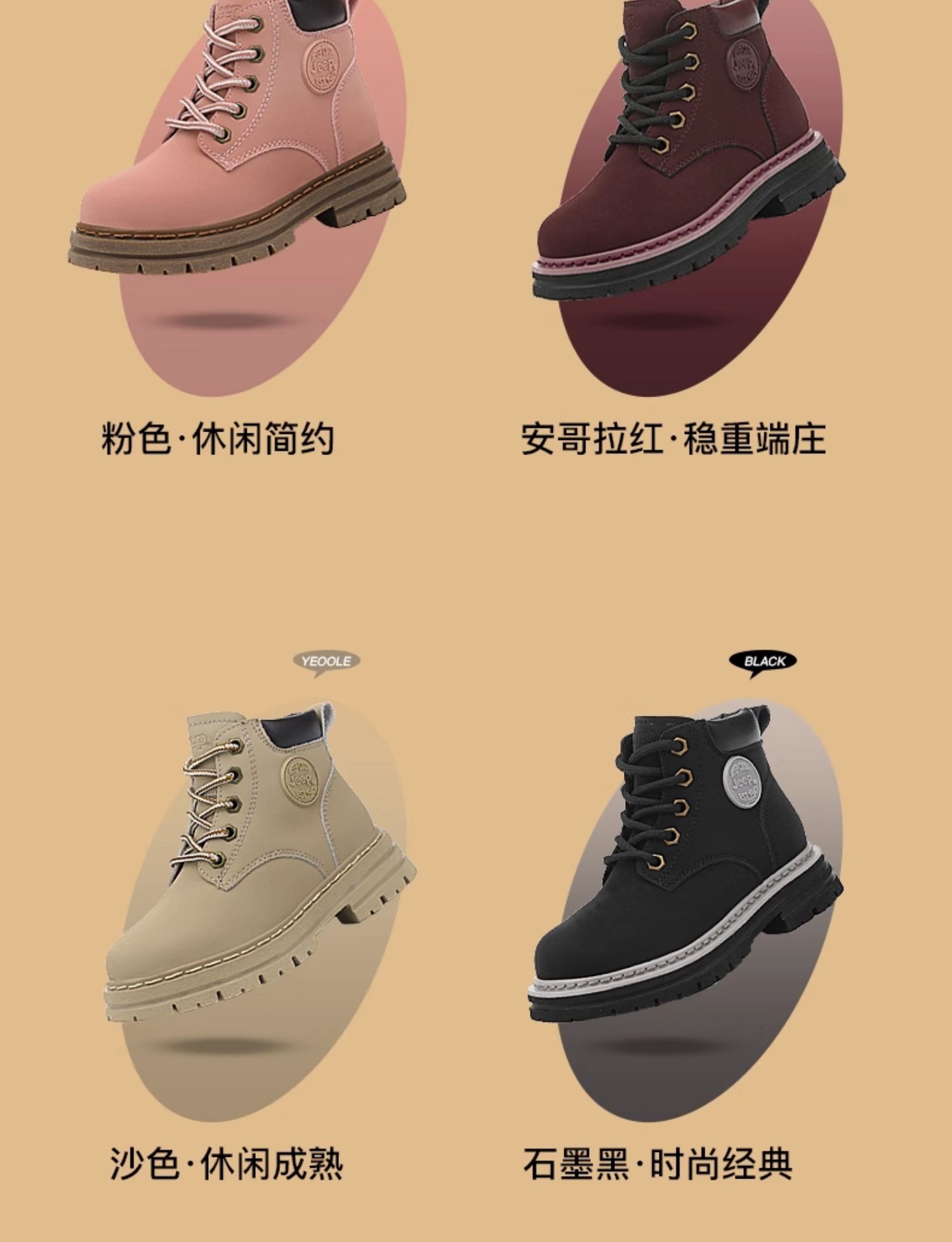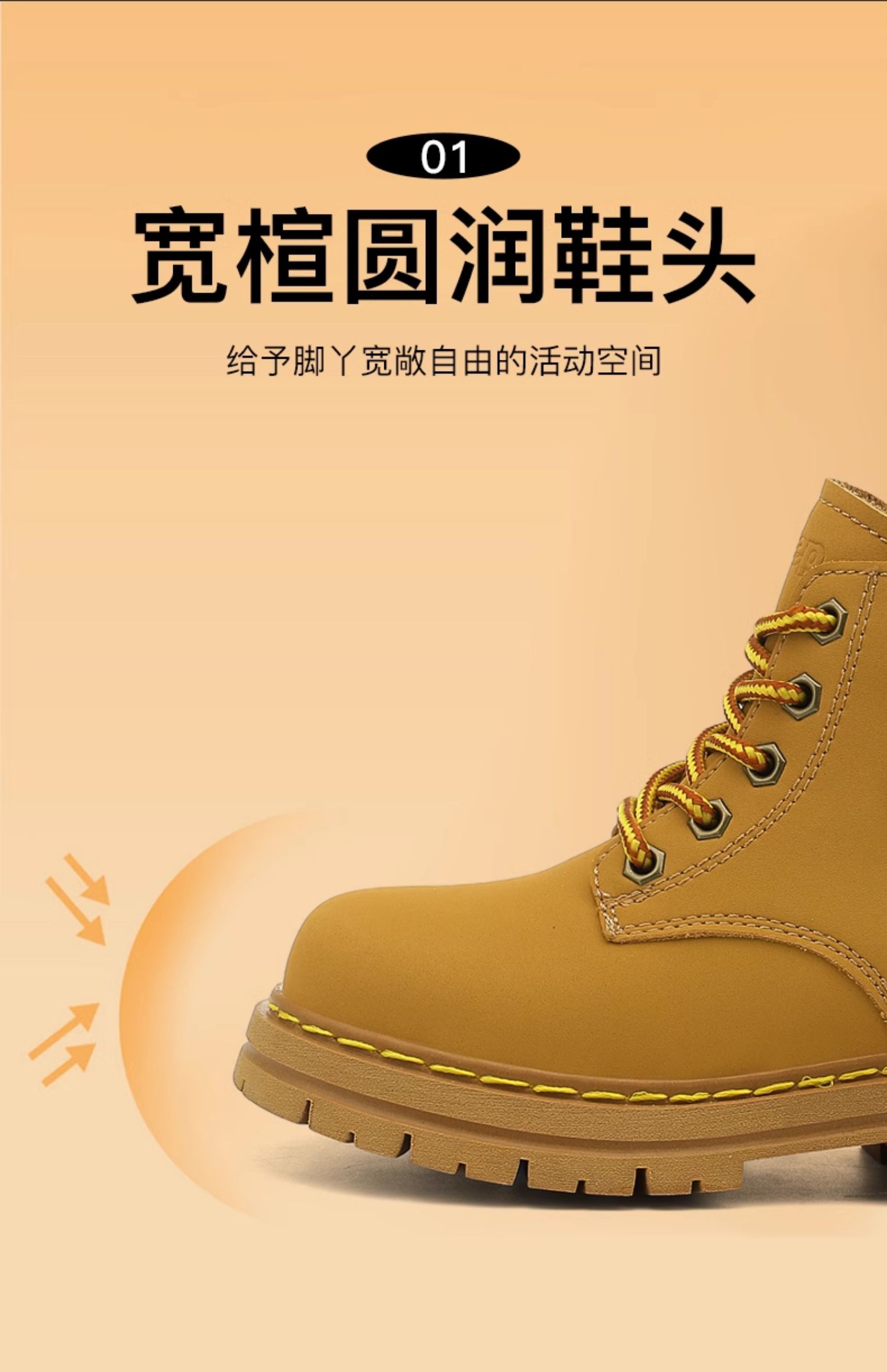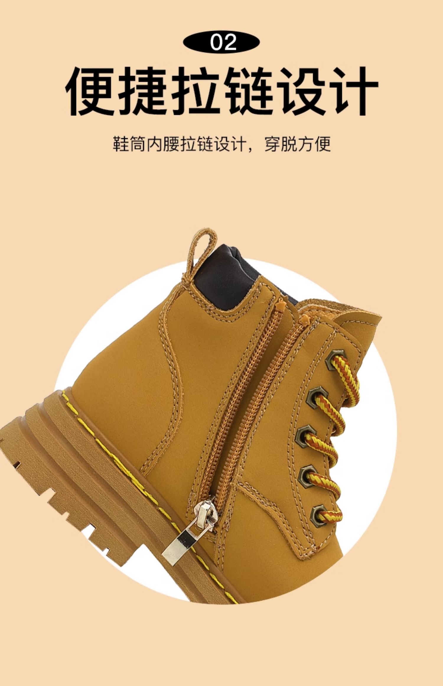 JEEP儿童马丁靴大黄靴皮靴男童女童鞋子2025春秋男孩防滑户外靴子