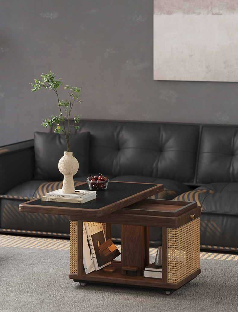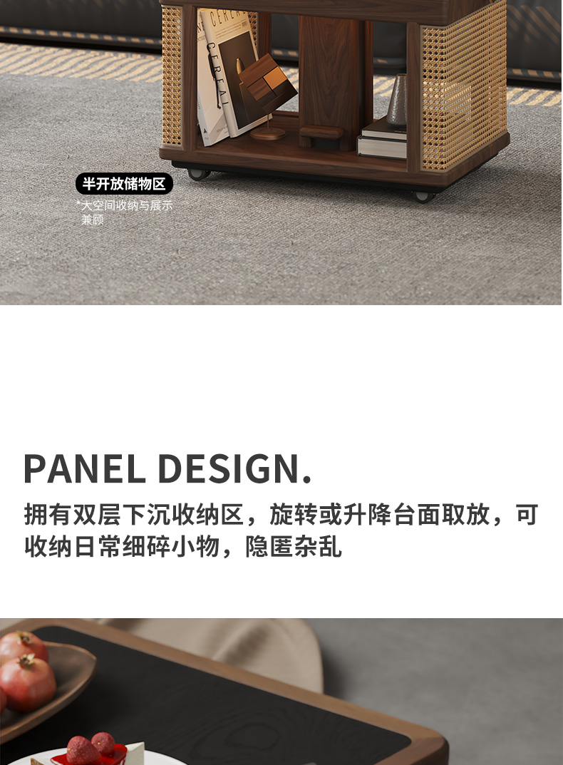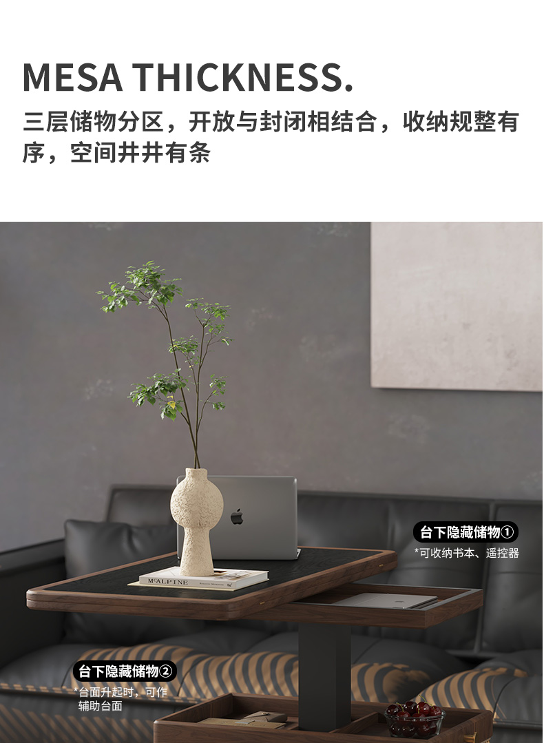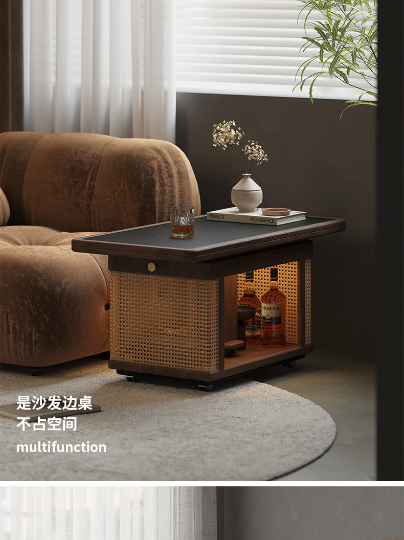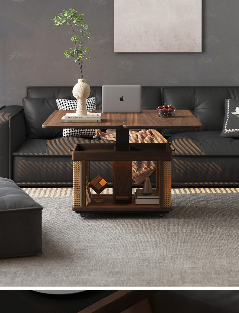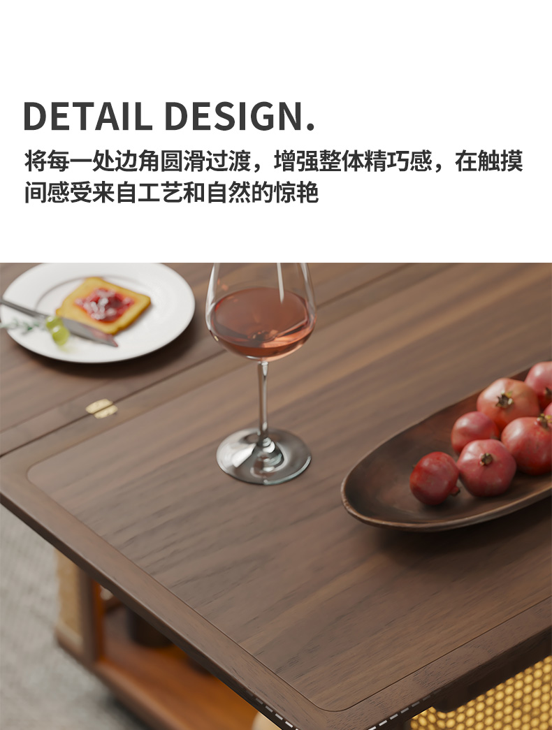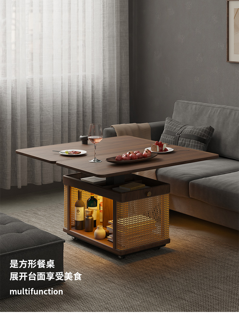 实木茶几可移动黑胡桃木升降餐桌客厅家用旋转折叠沙发边几小推车