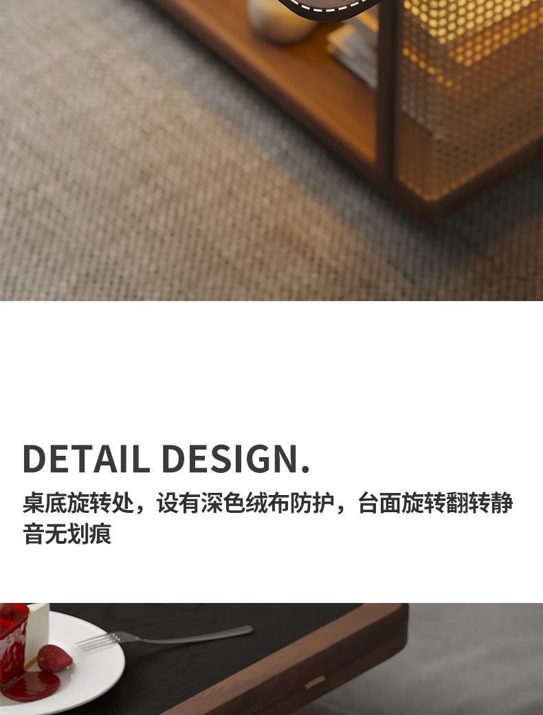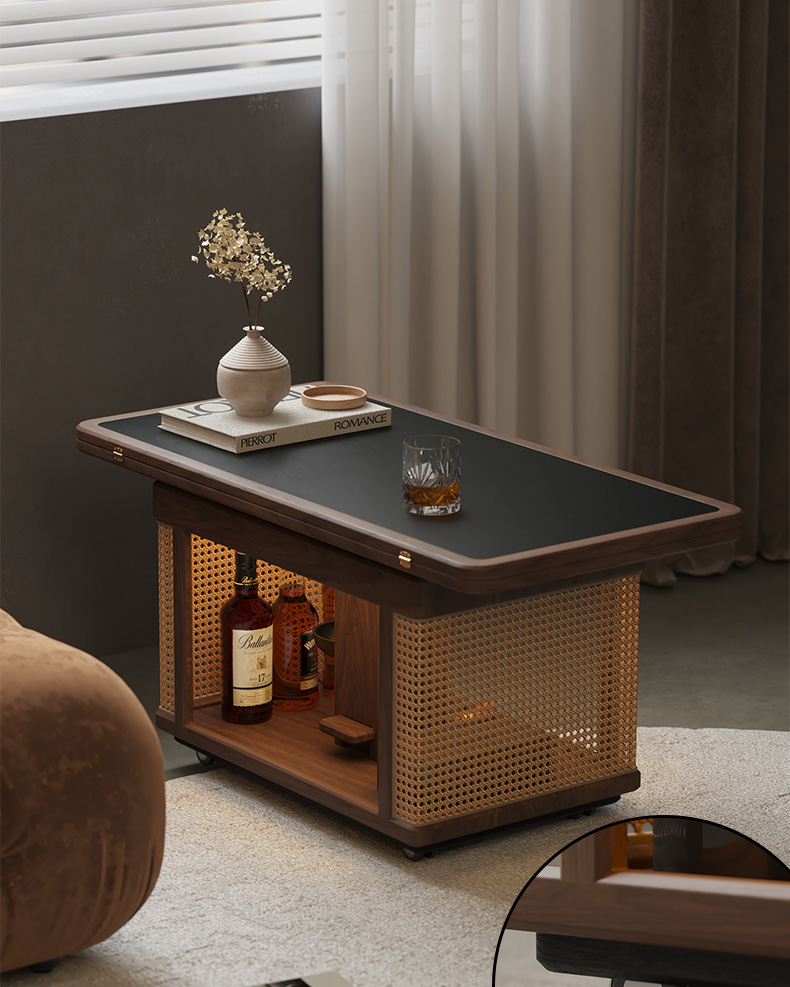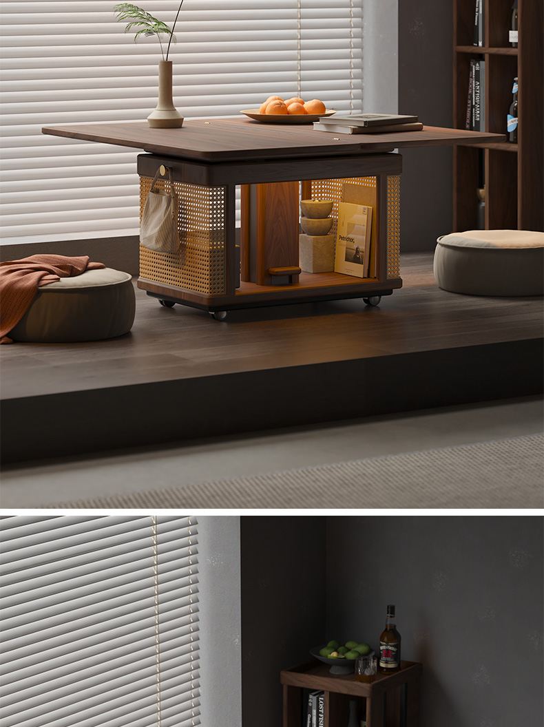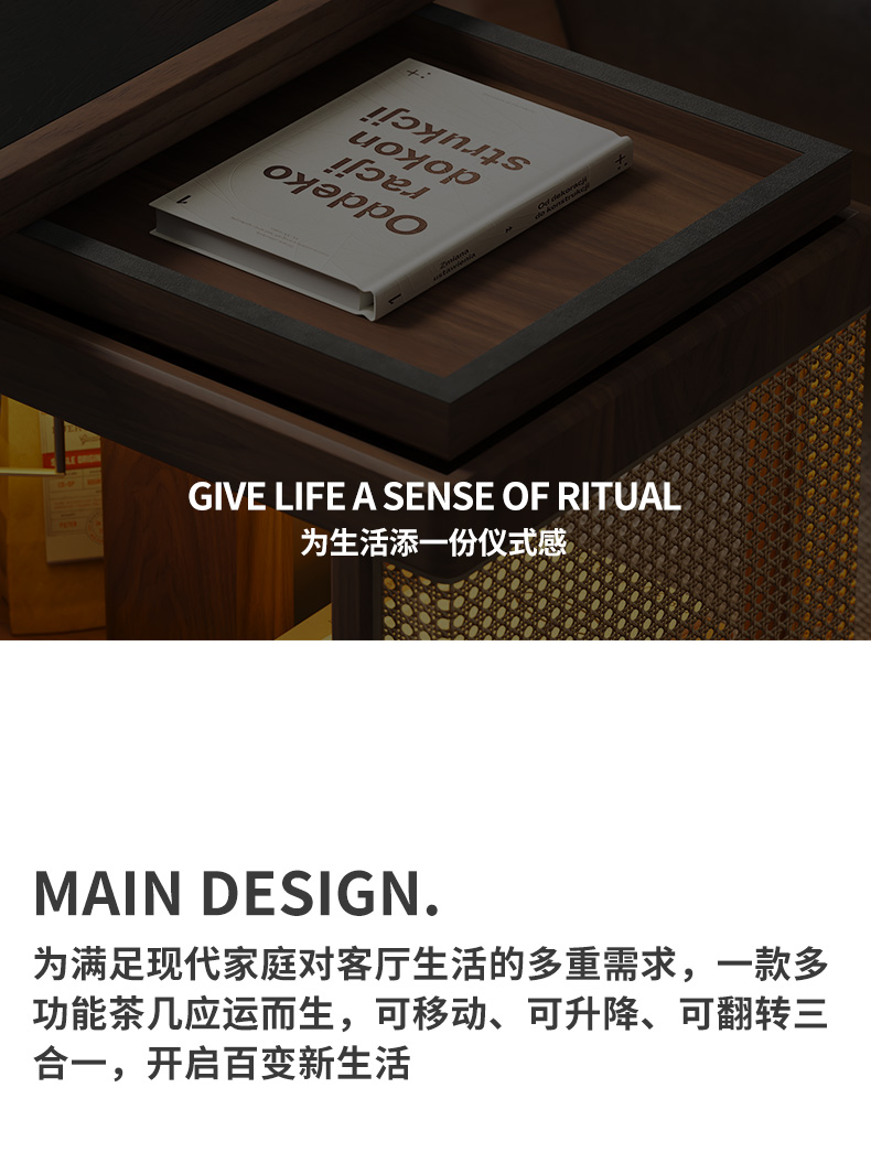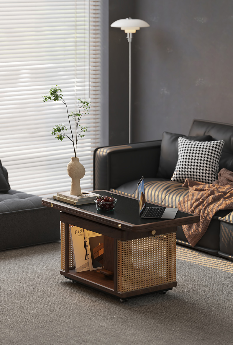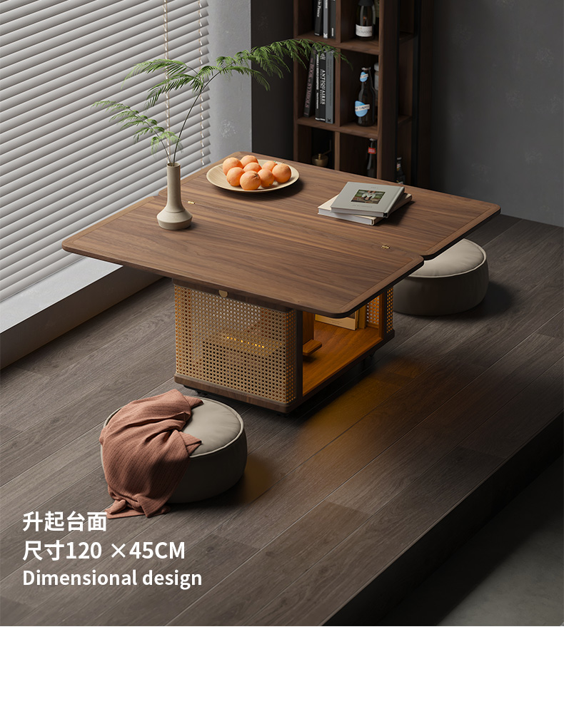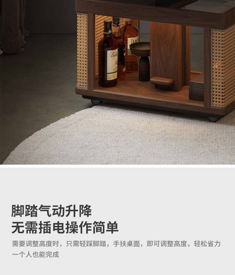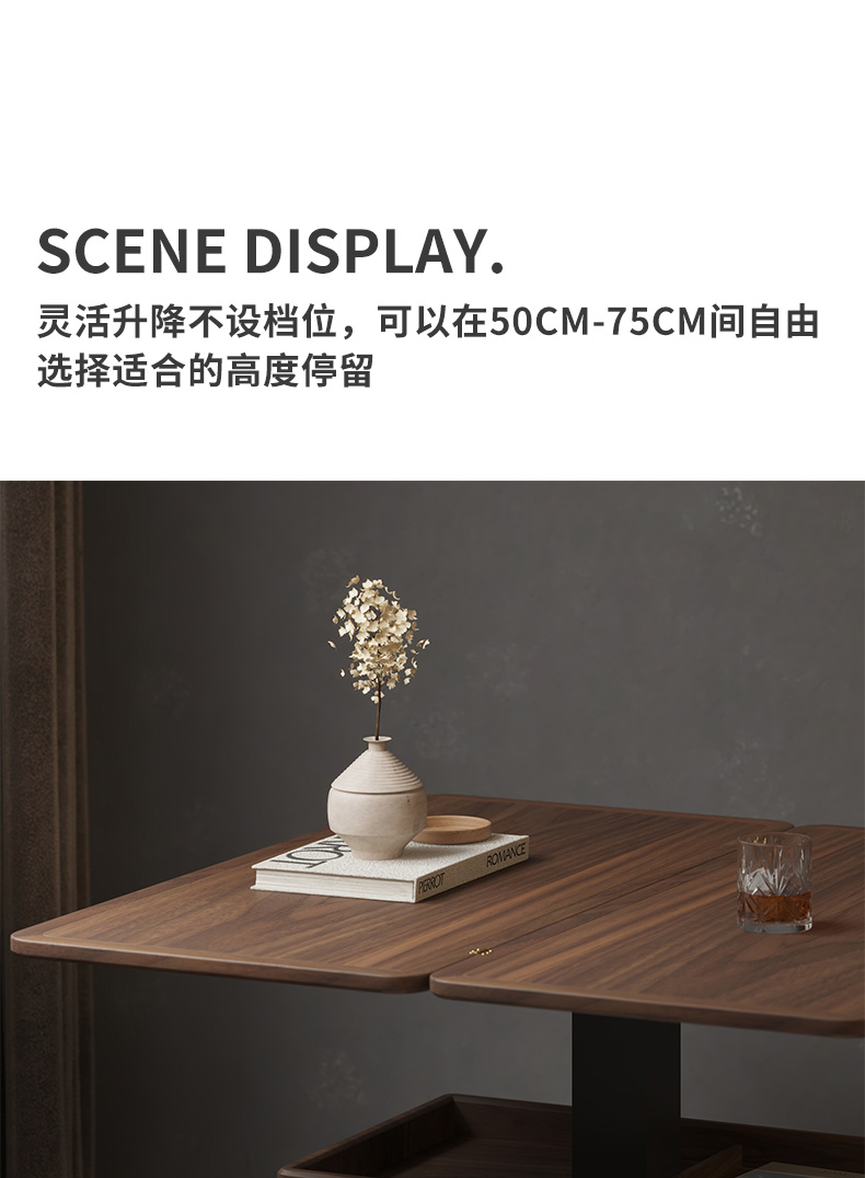 实木茶几可移动黑胡桃木升降餐桌客厅家用旋转折叠沙发边几小推车