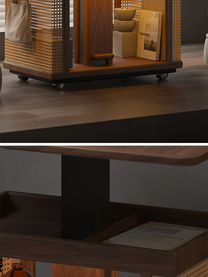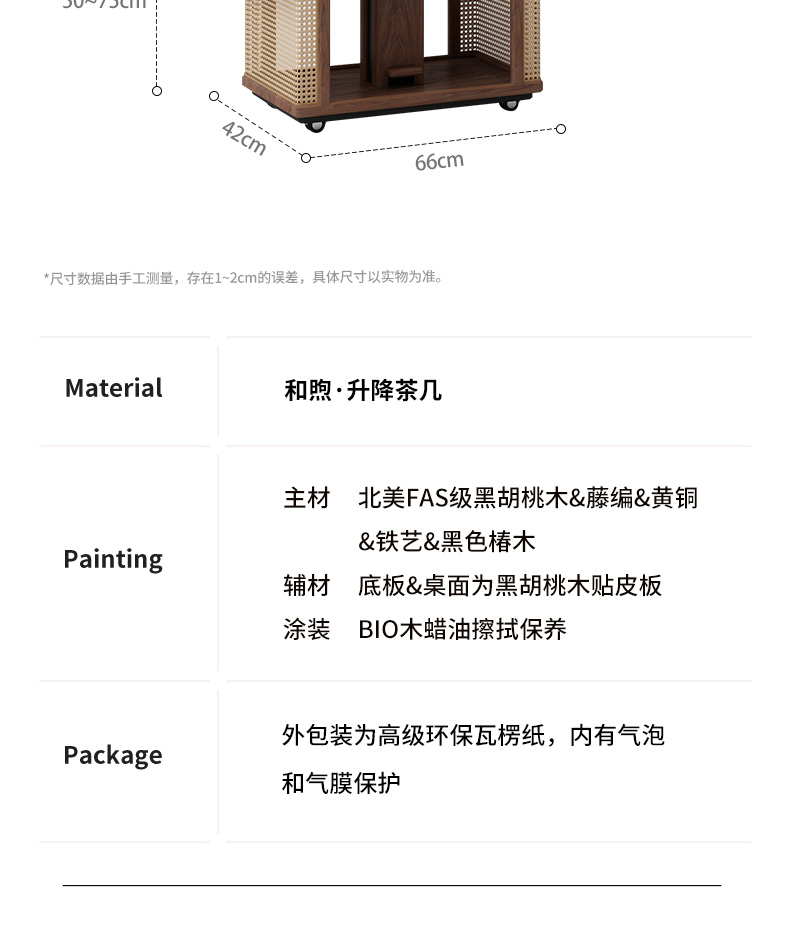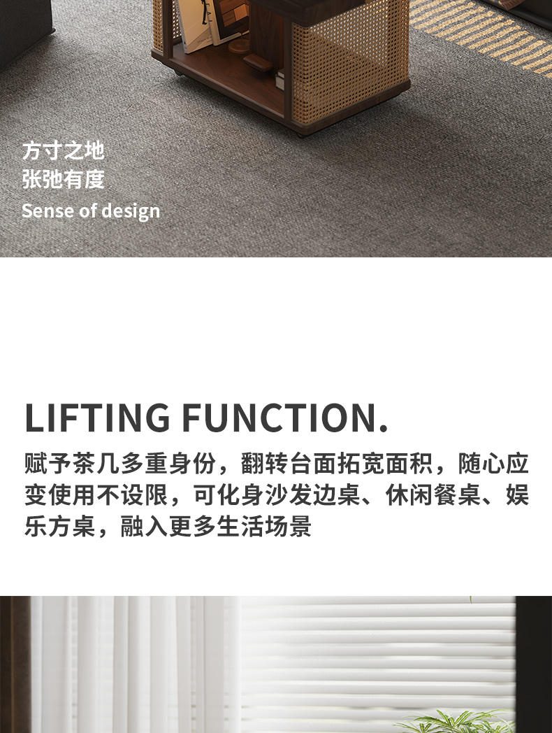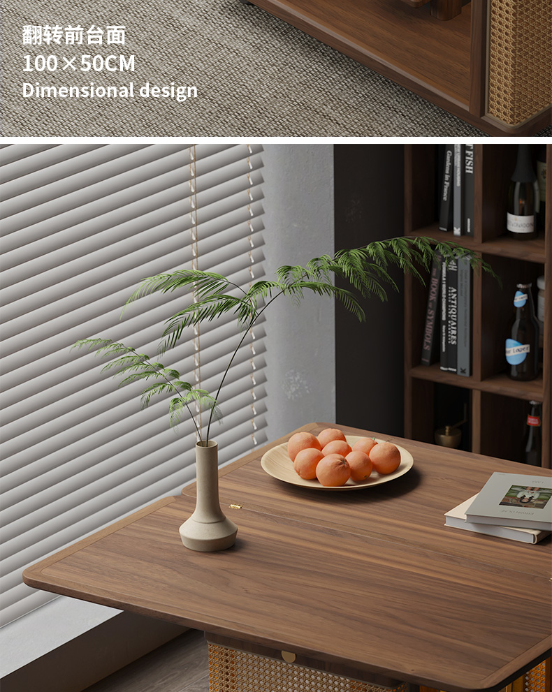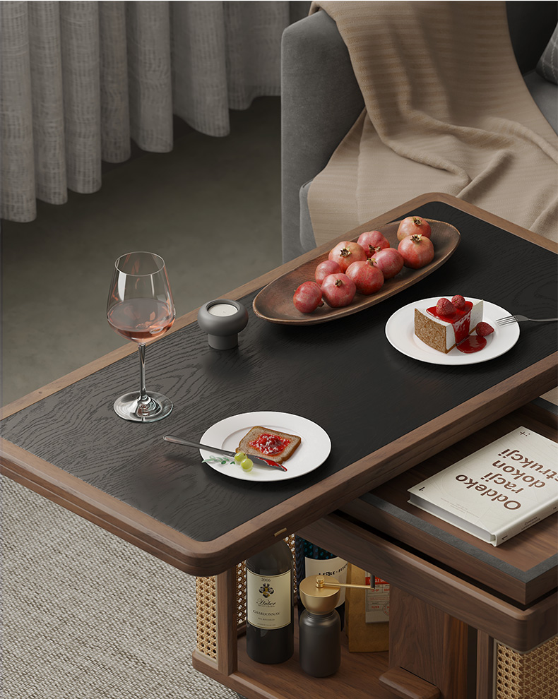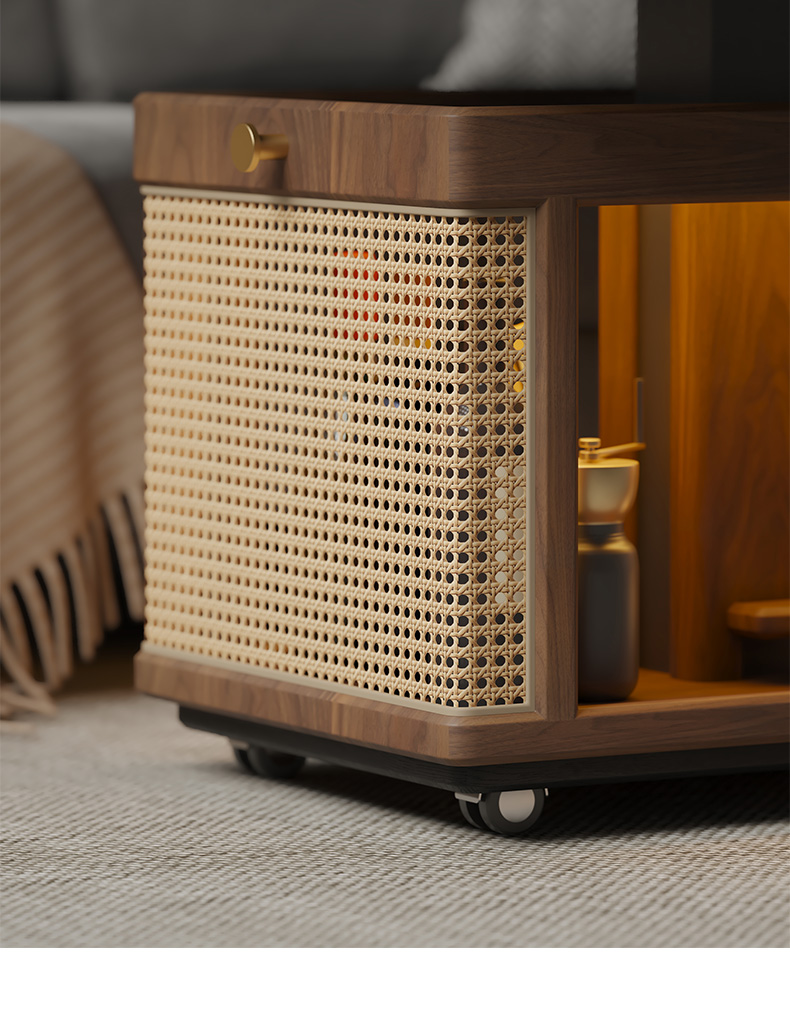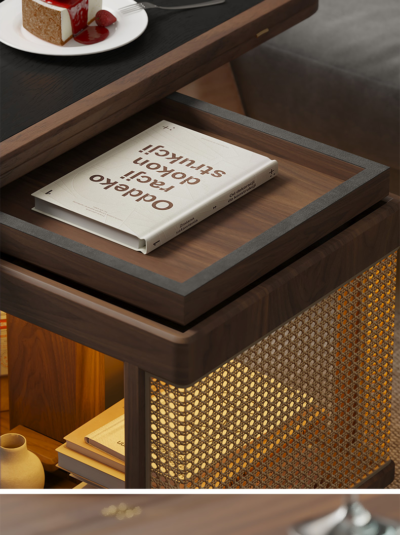 实木茶几可移动黑胡桃木升降餐桌客厅家用旋转折叠沙发边几小推车