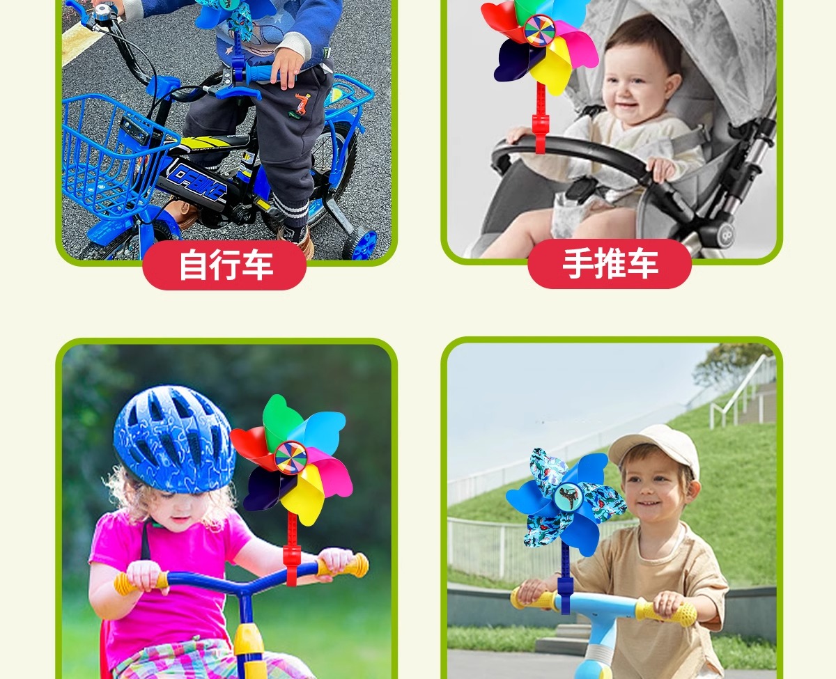 七彩旋转风车儿童滑板车自行车婴儿推车装饰挂件小风车户外玩具