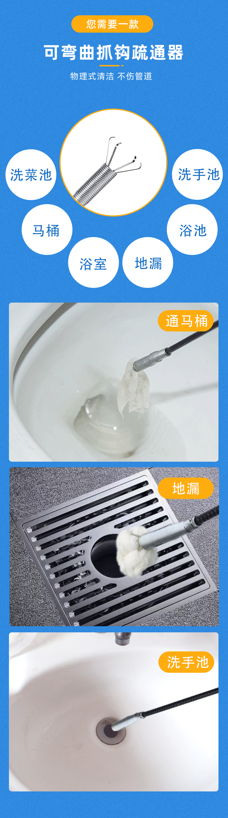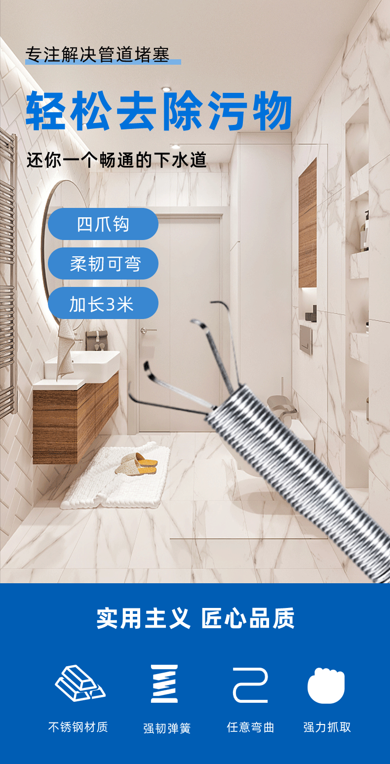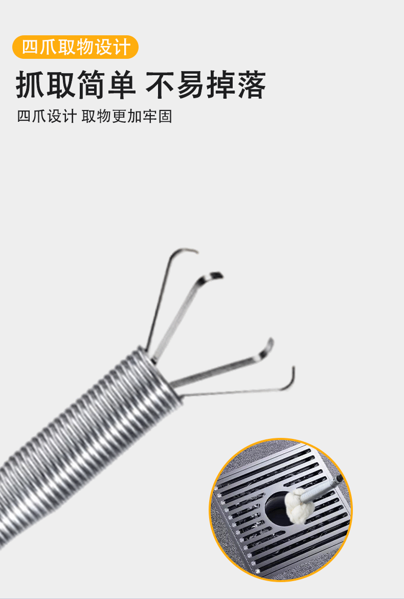 下水道神器管道疏通器马桶地漏堵塞神爪专用工具家用取物抓取清理