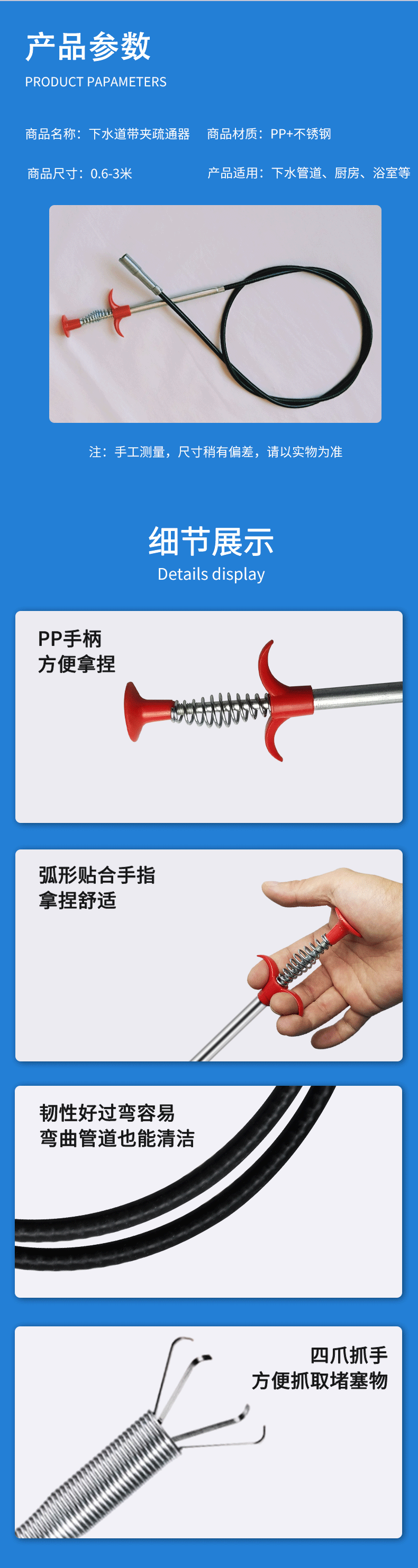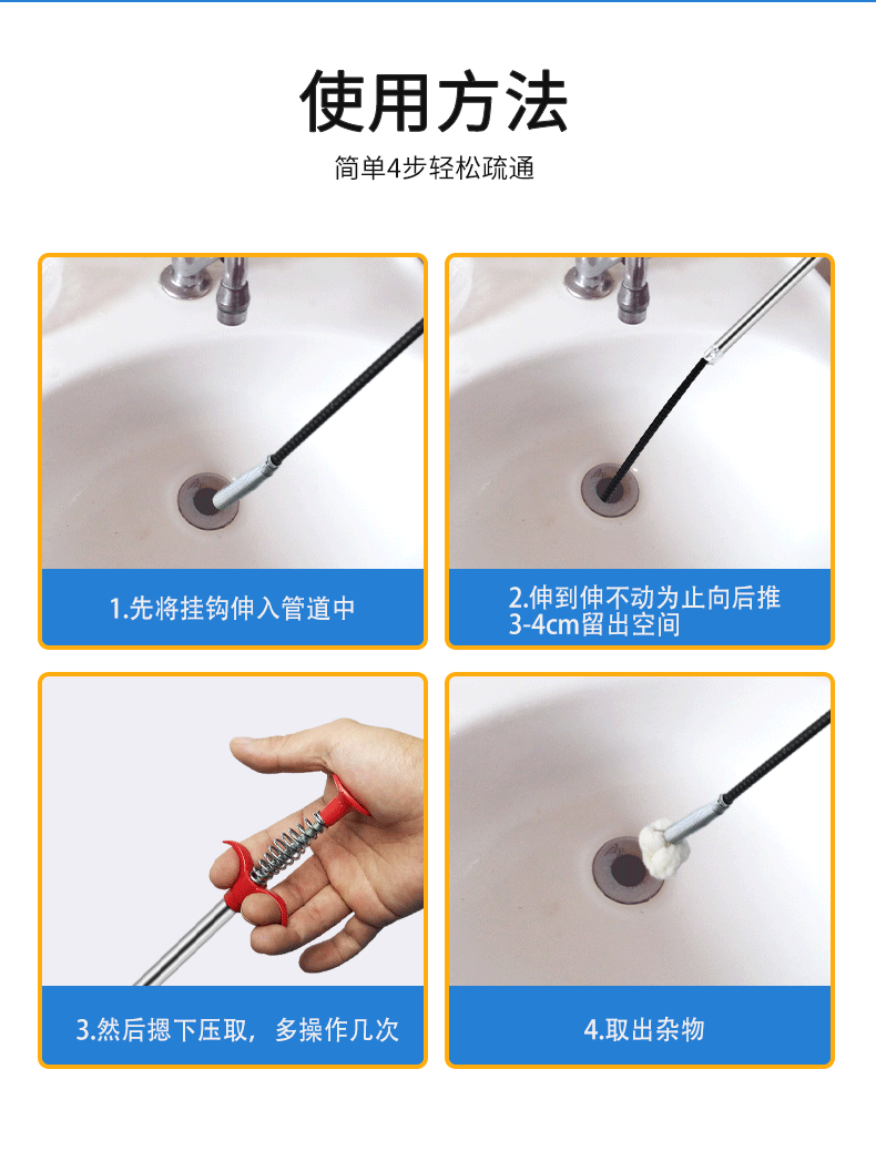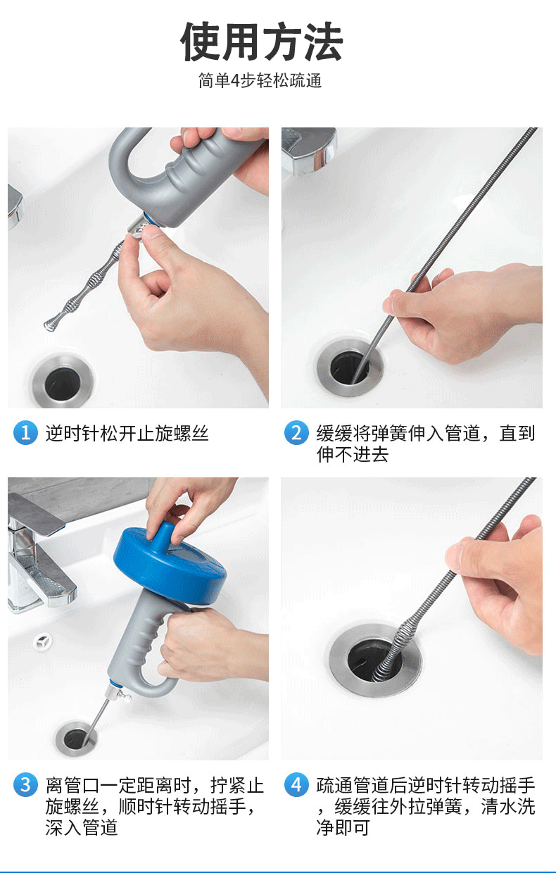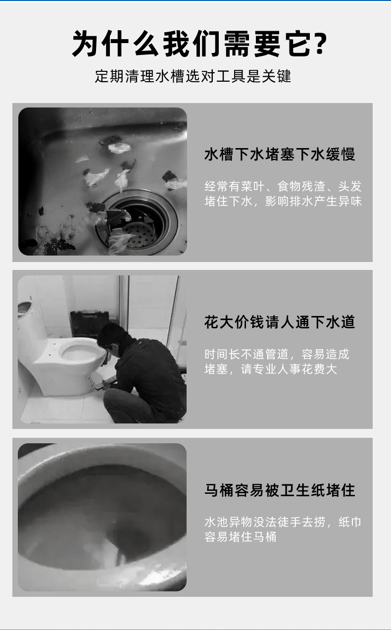 下水道神器管道疏通器马桶地漏堵塞神爪专用工具家用取物抓取清理
