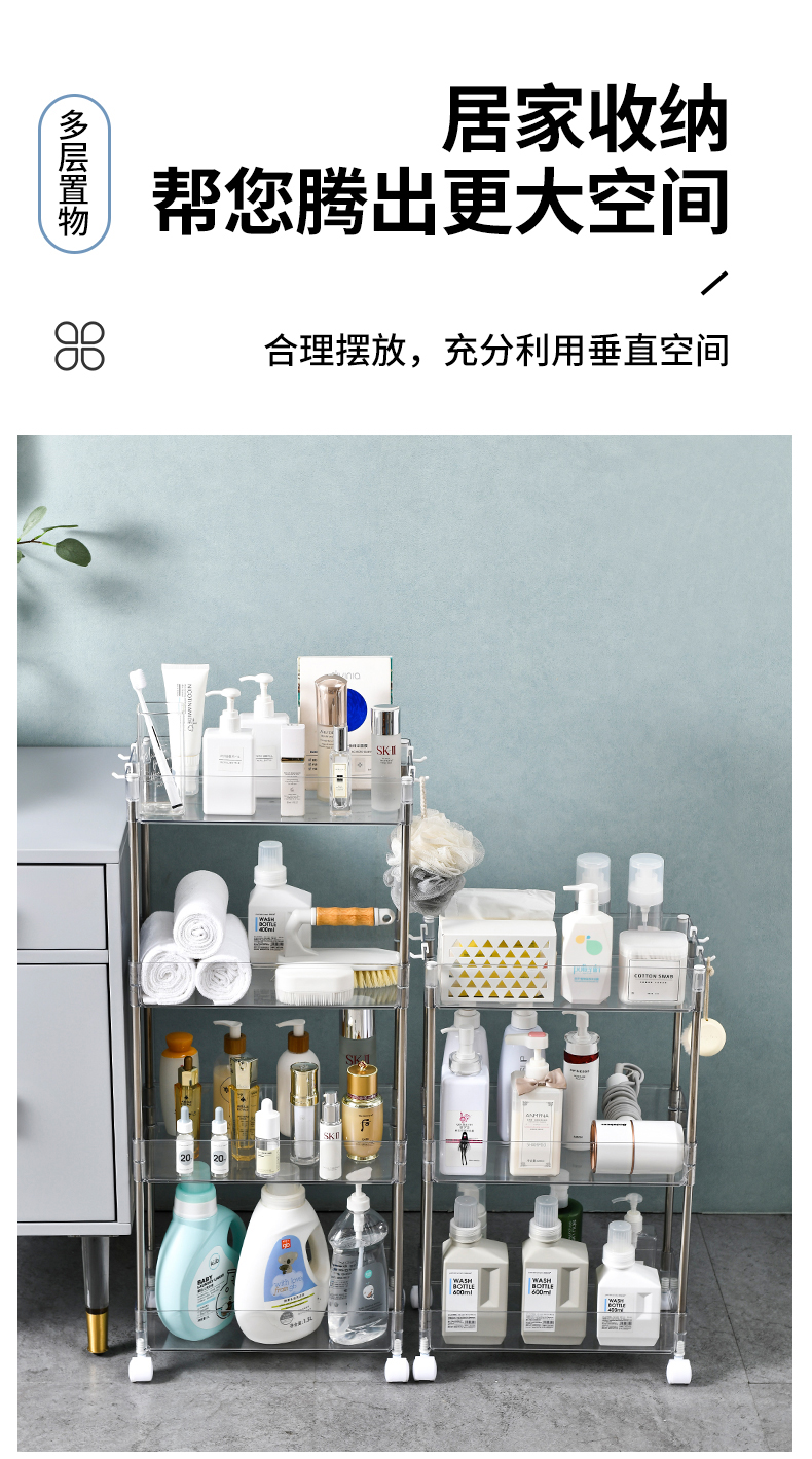 9/12/13cm卫生间夹缝置物架落地厨房冰箱旁边超窄极小缝隙收纳柜