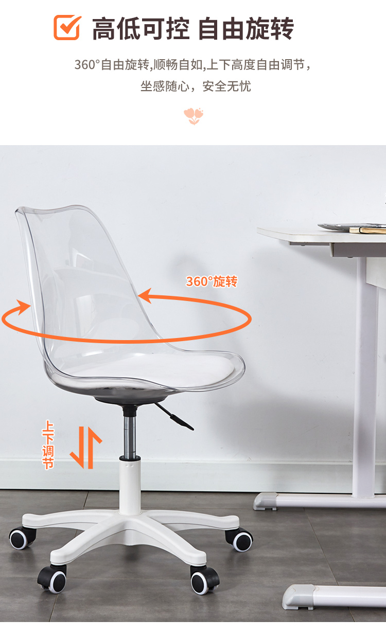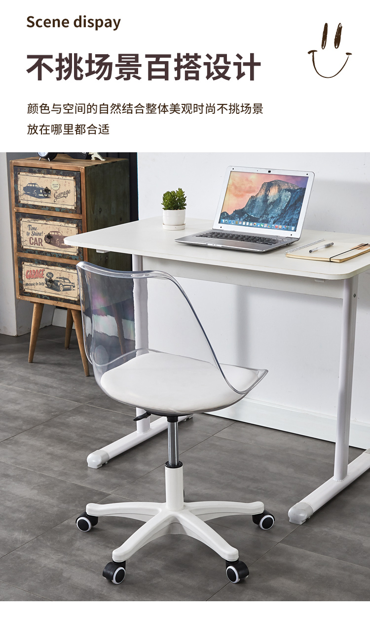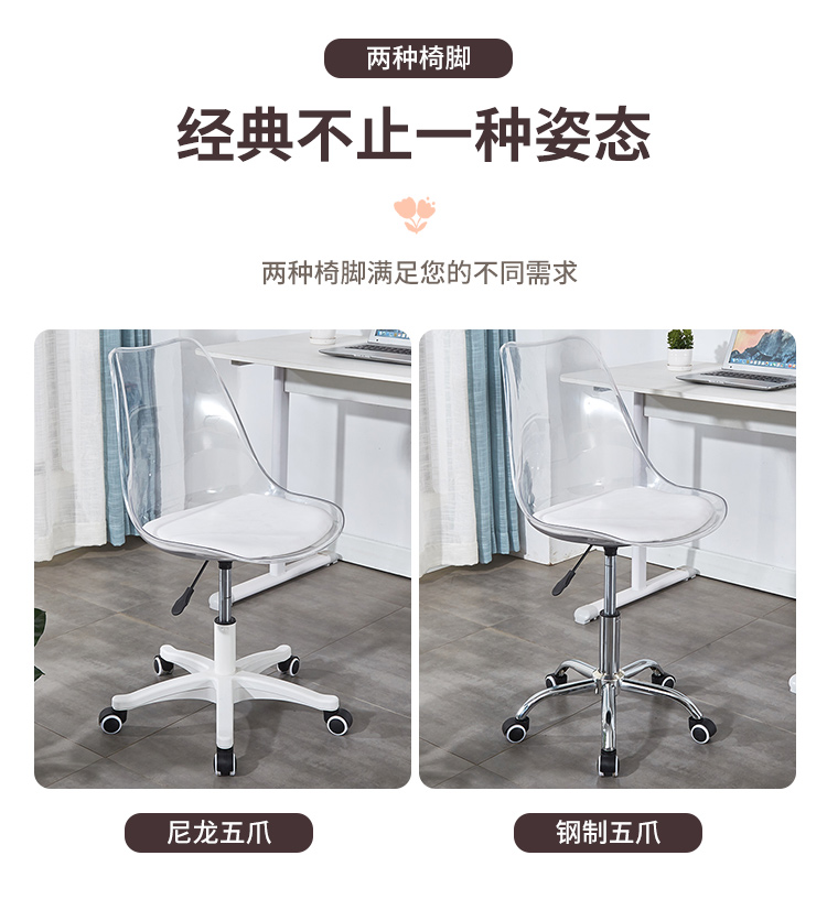 电脑椅子靠背简约家用久坐不累办公室学习书桌椅亚克力旋转升降凳