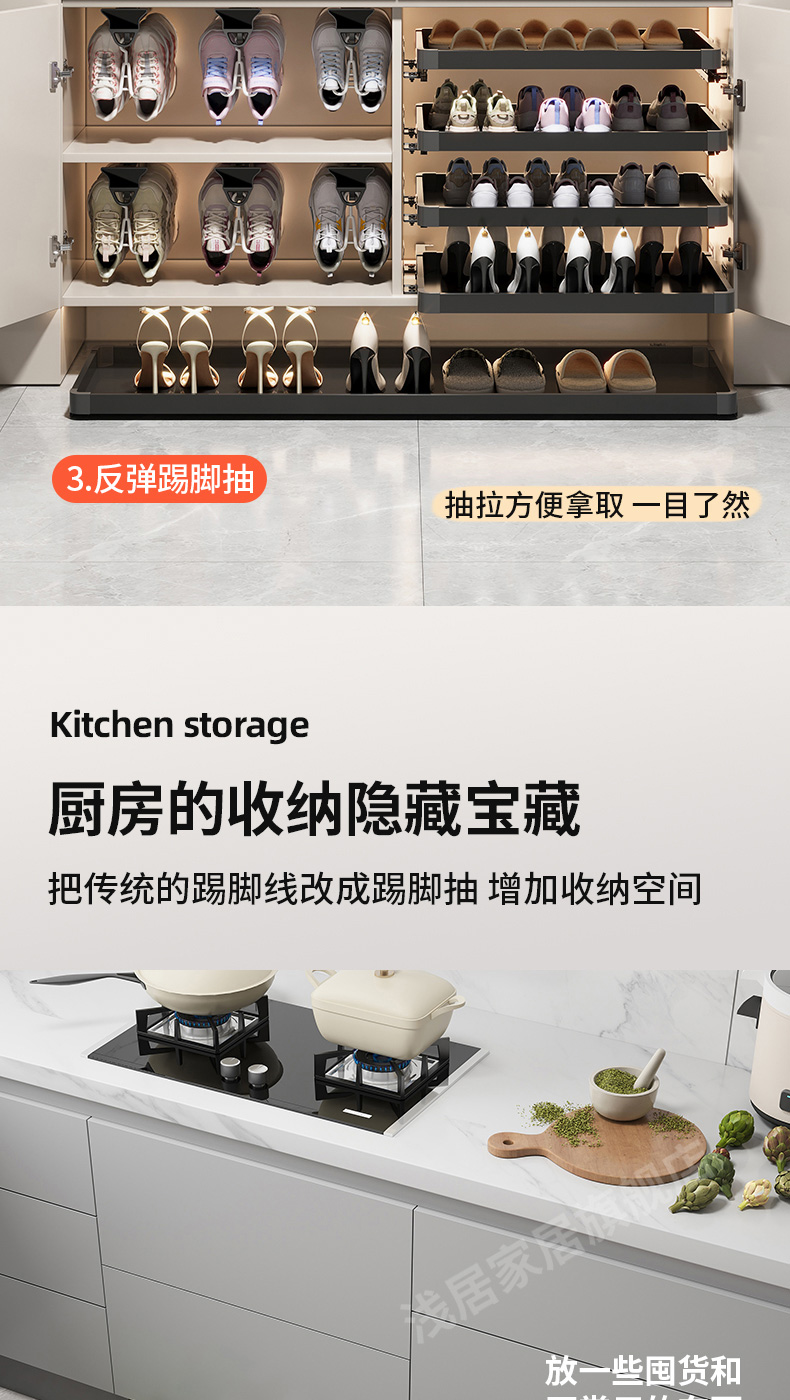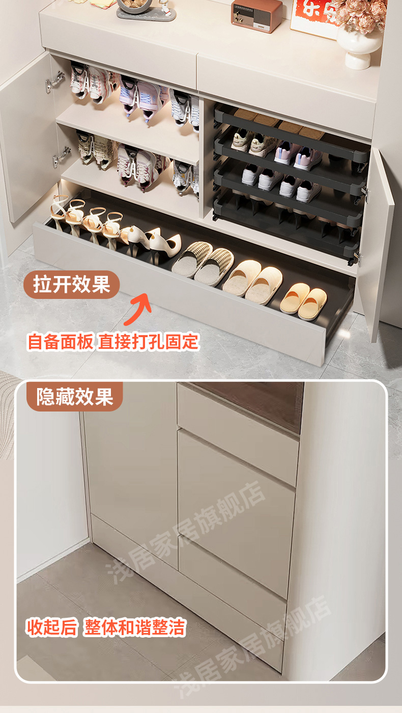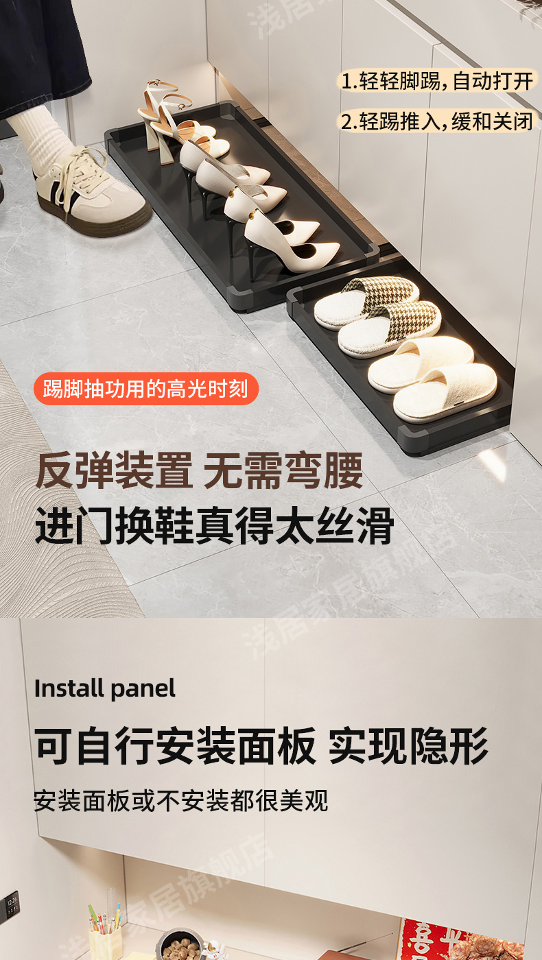 踢脚抽屉鞋柜收纳抽屉入户柜家鞋柜玄关柜鞋架反弹抽拉加深鞋架