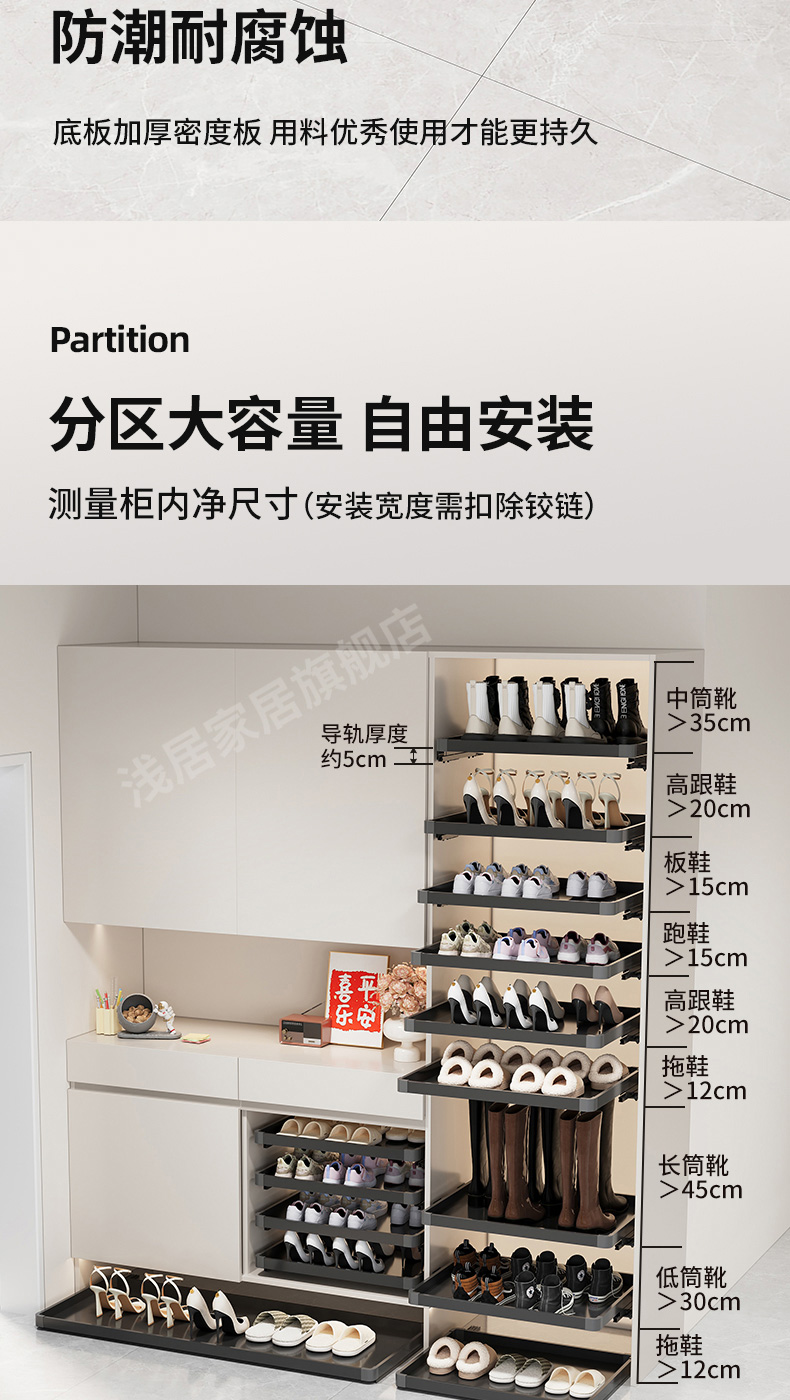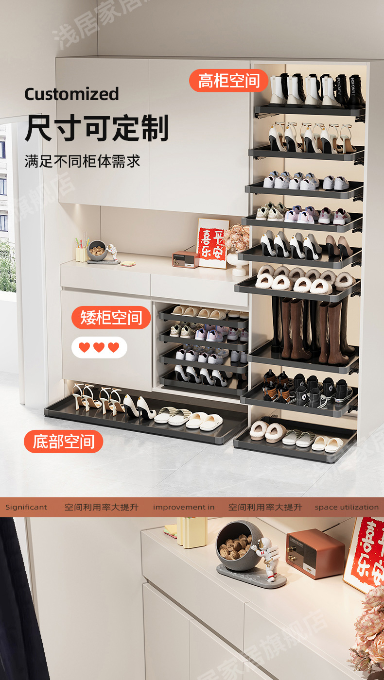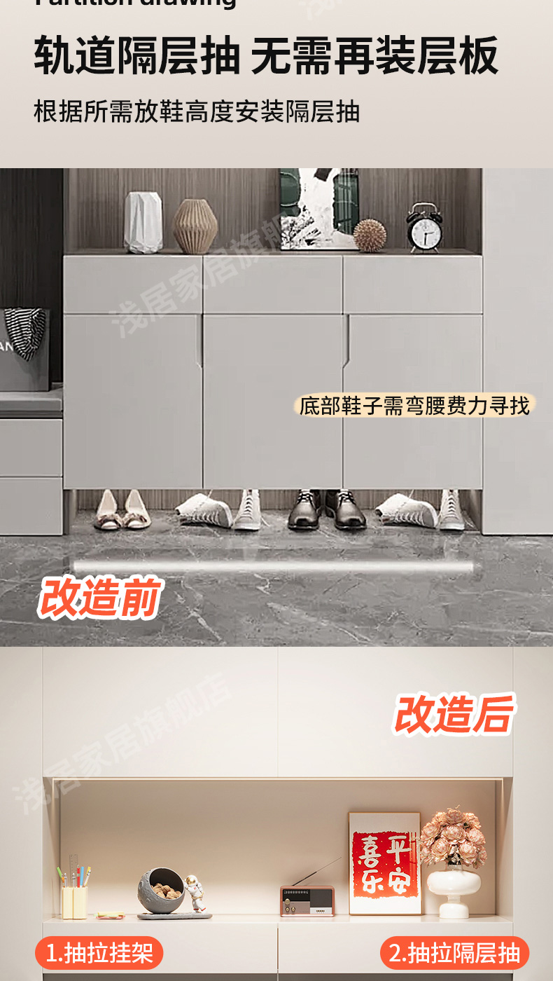踢脚抽屉鞋柜收纳抽屉入户柜家鞋柜玄关柜鞋架反弹抽拉加深鞋架