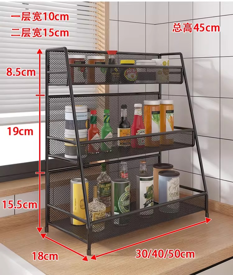 厨房置物架台面酱油醋辅料瓶多功能家用沥水储物调料品分层收纳架