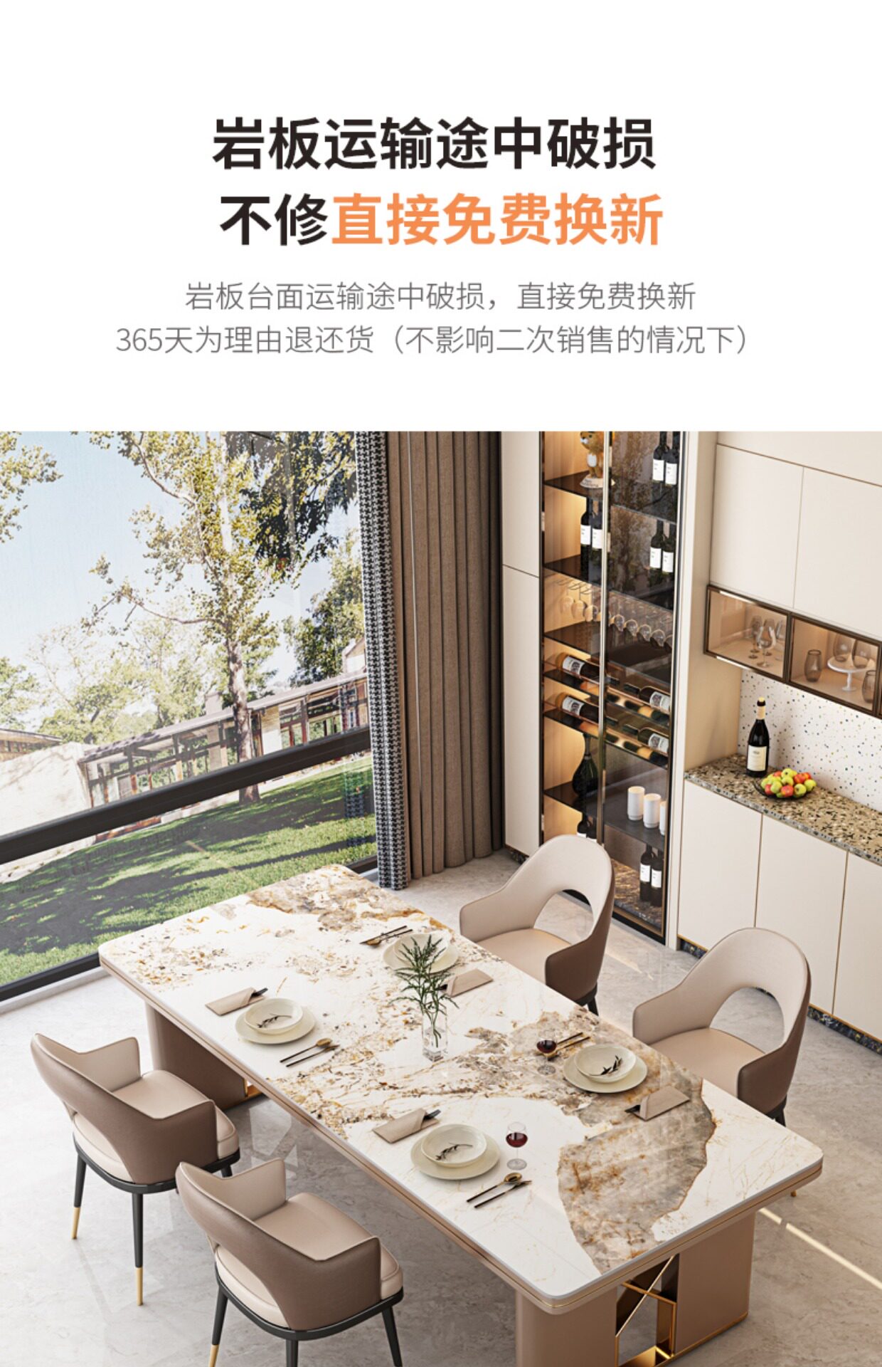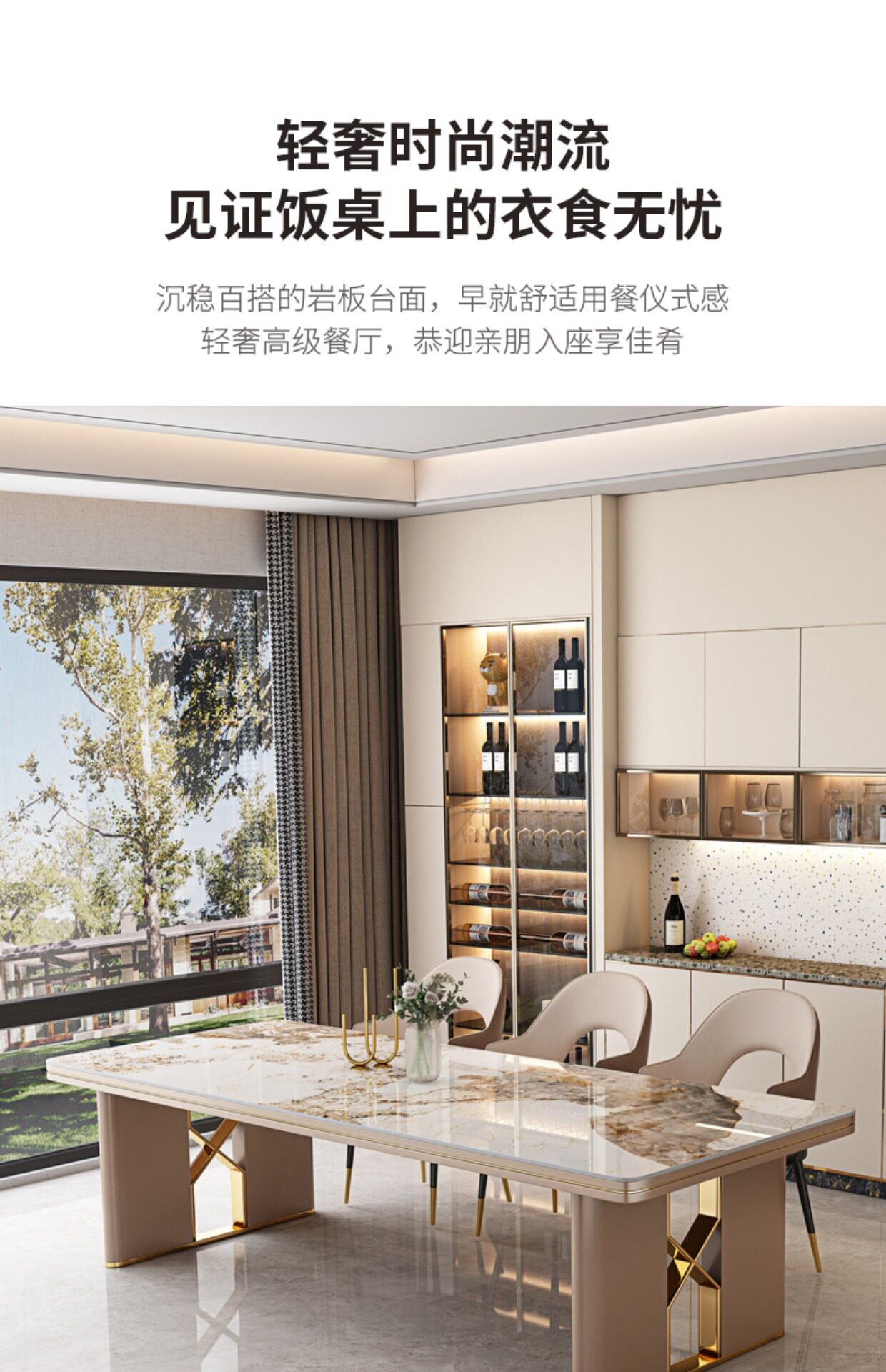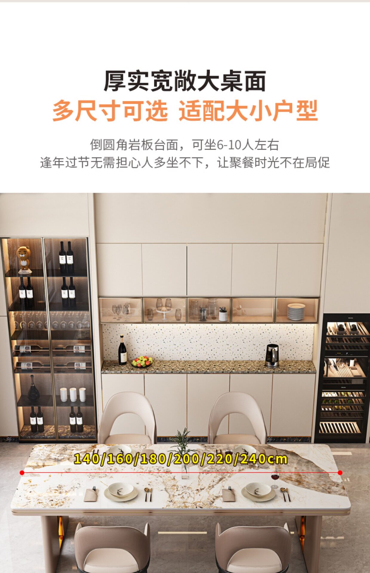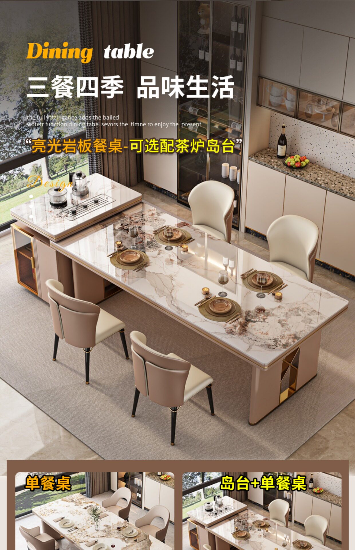 岩板岛台餐桌椅2米轻奢亮光现代简约长方形饭桌8人理石别墅大板桌