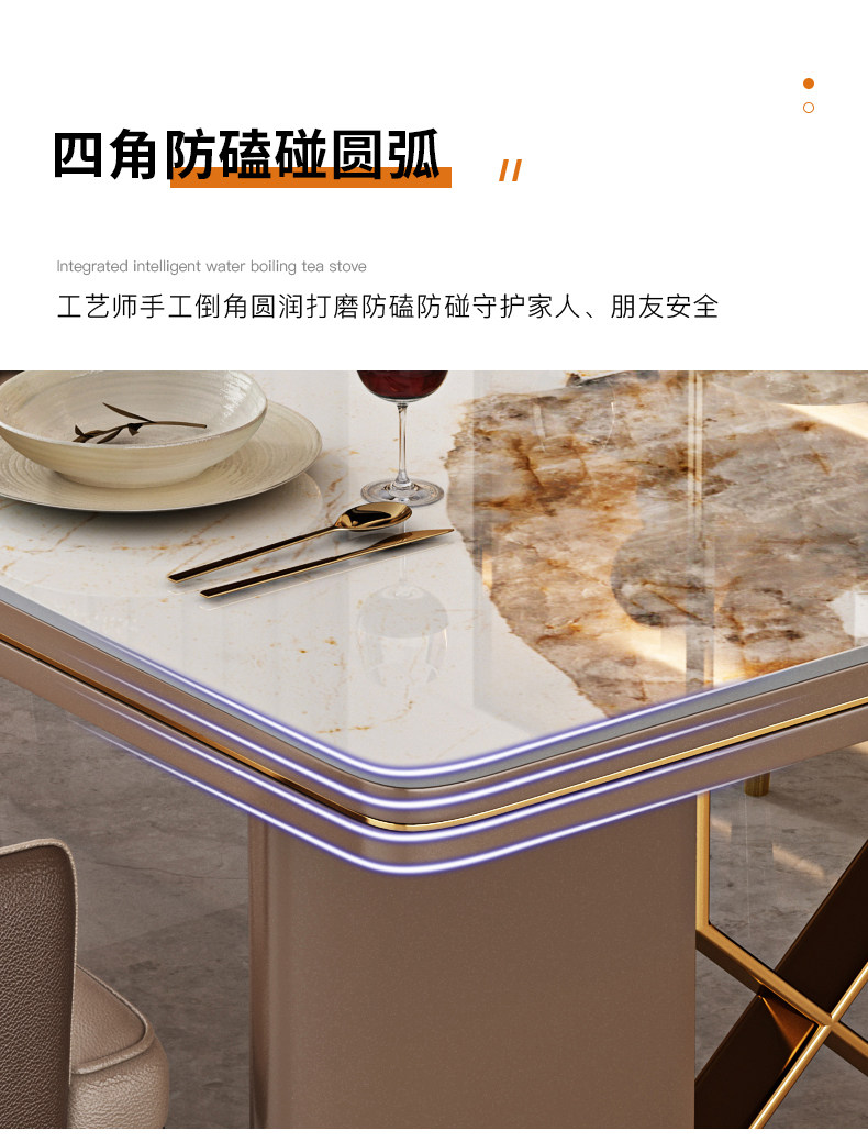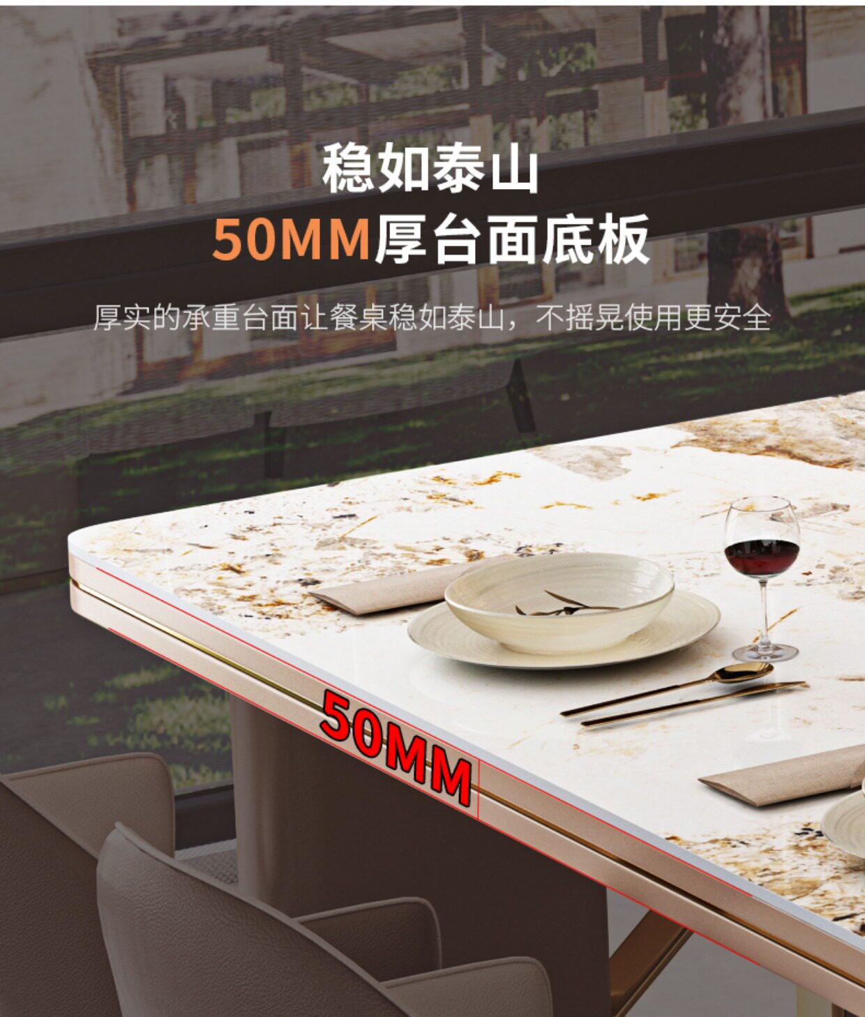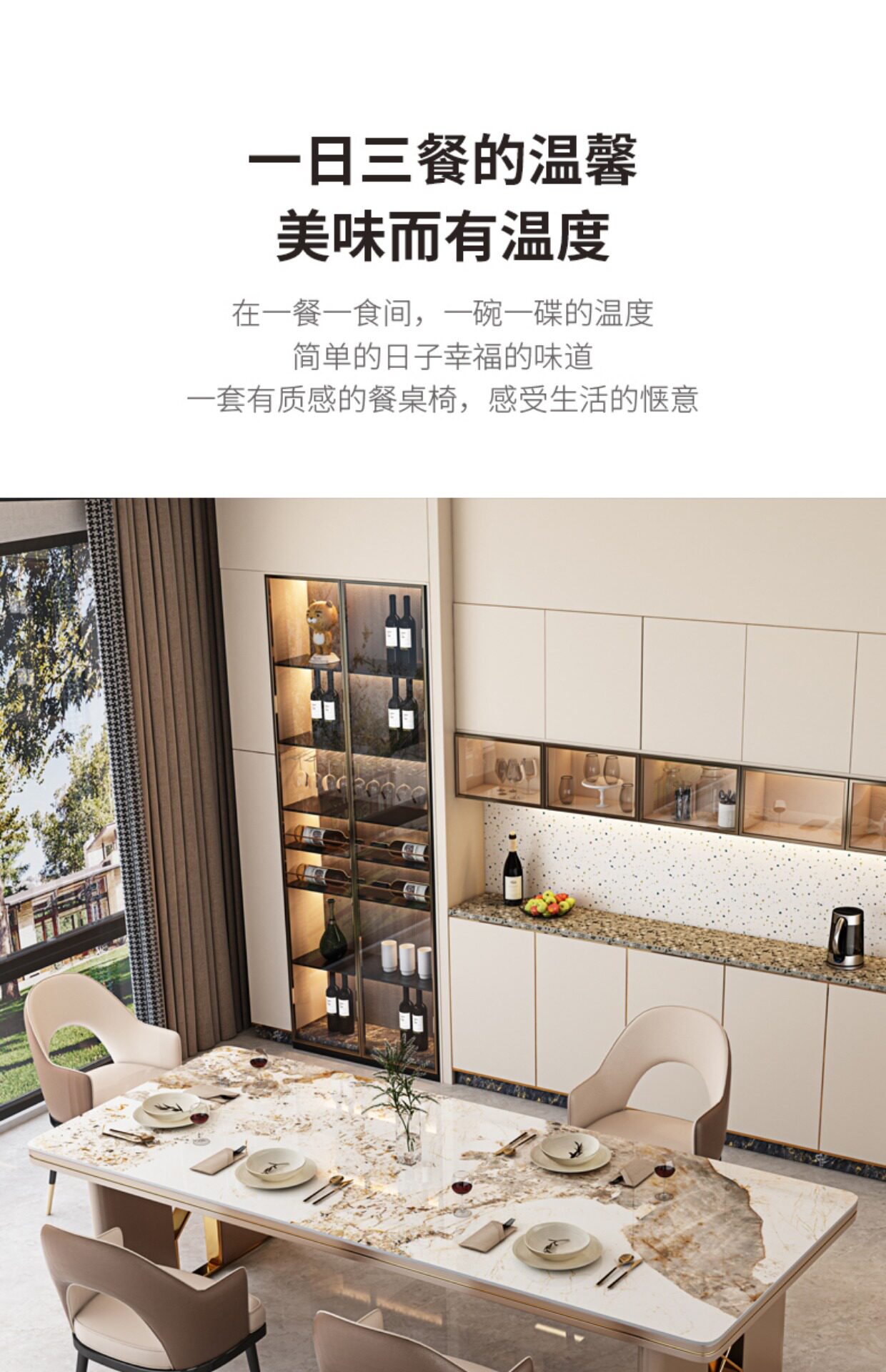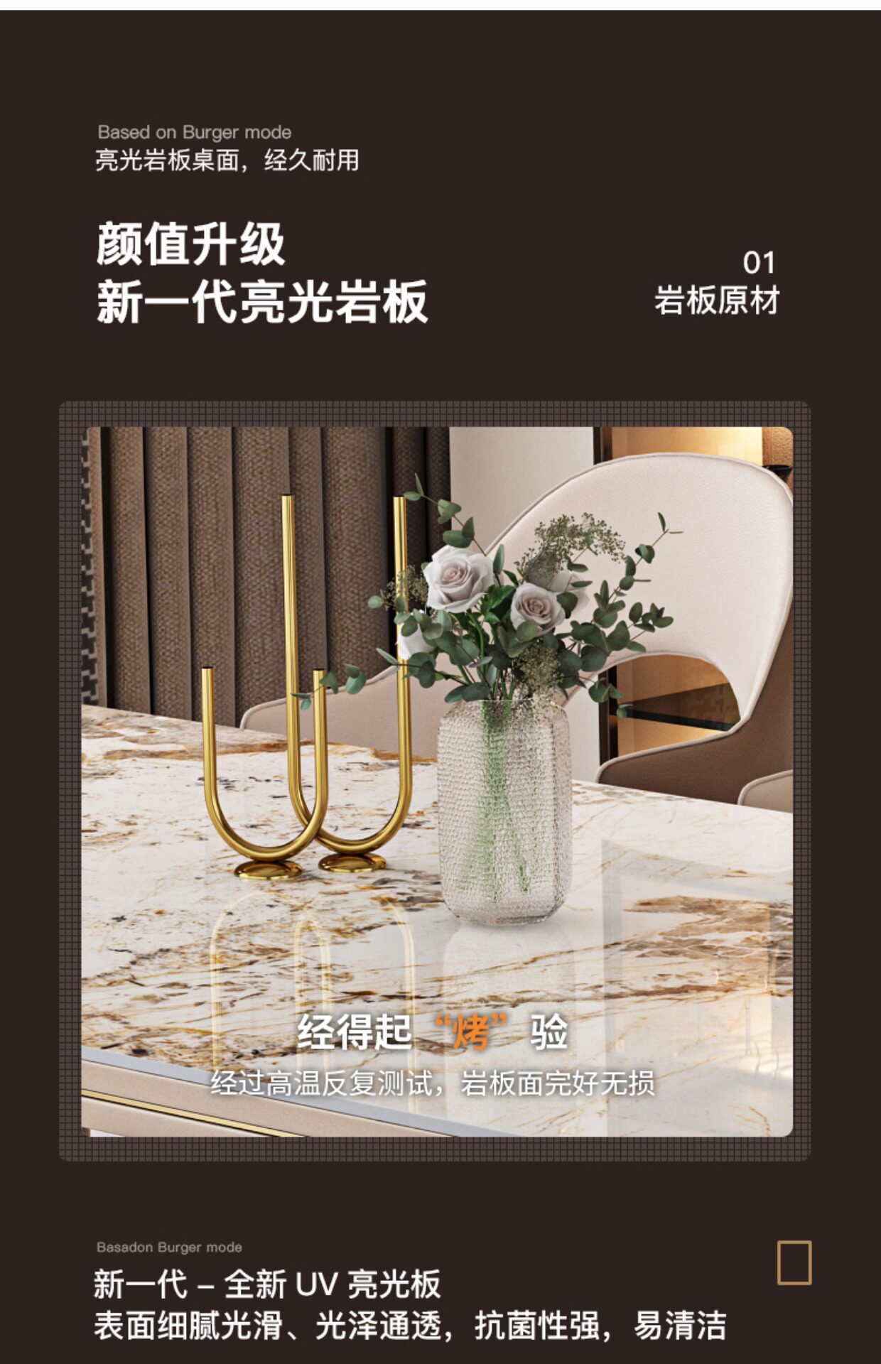 岩板岛台餐桌椅2米轻奢亮光现代简约长方形饭桌8人理石别墅大板桌