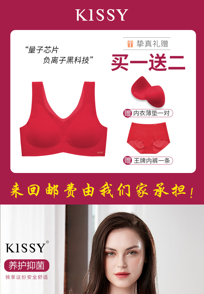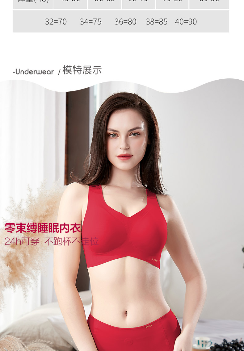 kissy内衣女无钢圈文胸本命年红色套装虎年薄款聚拢结婚新娘胸罩