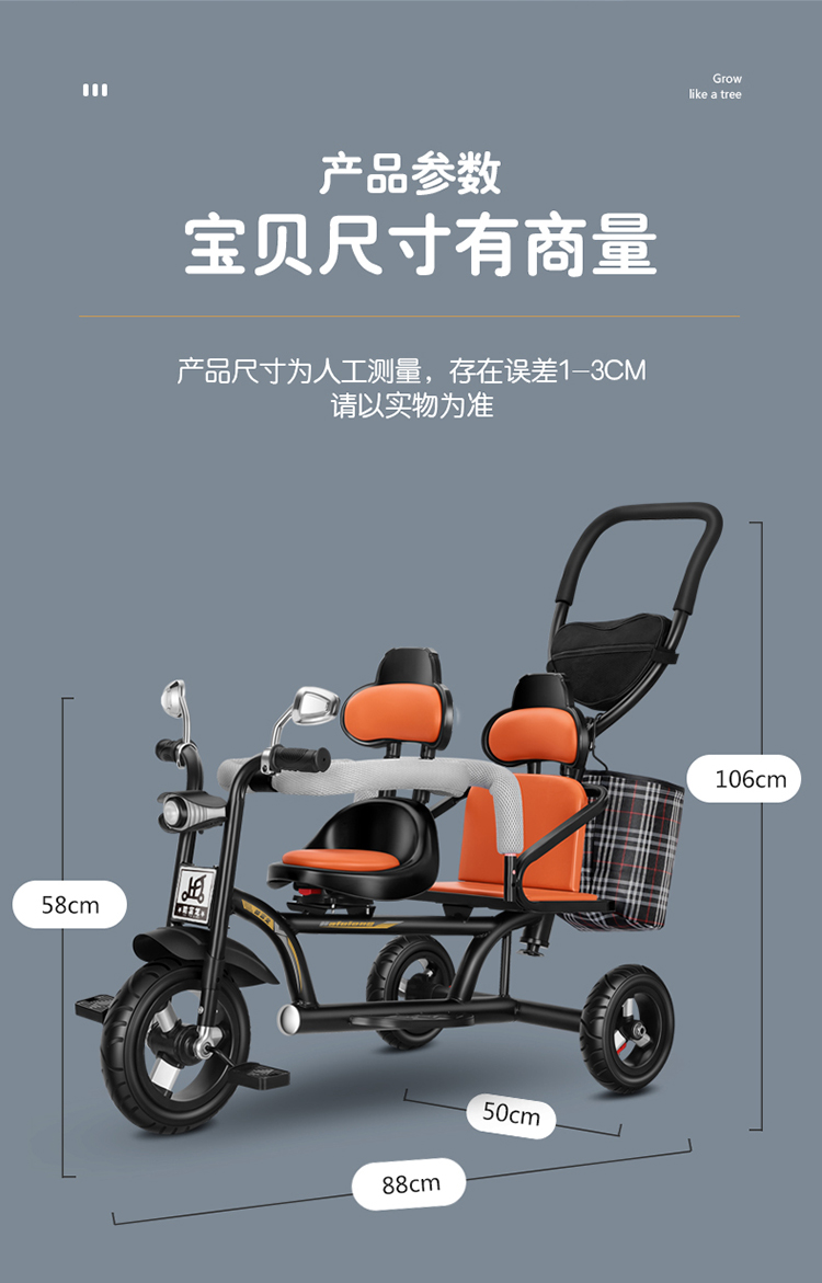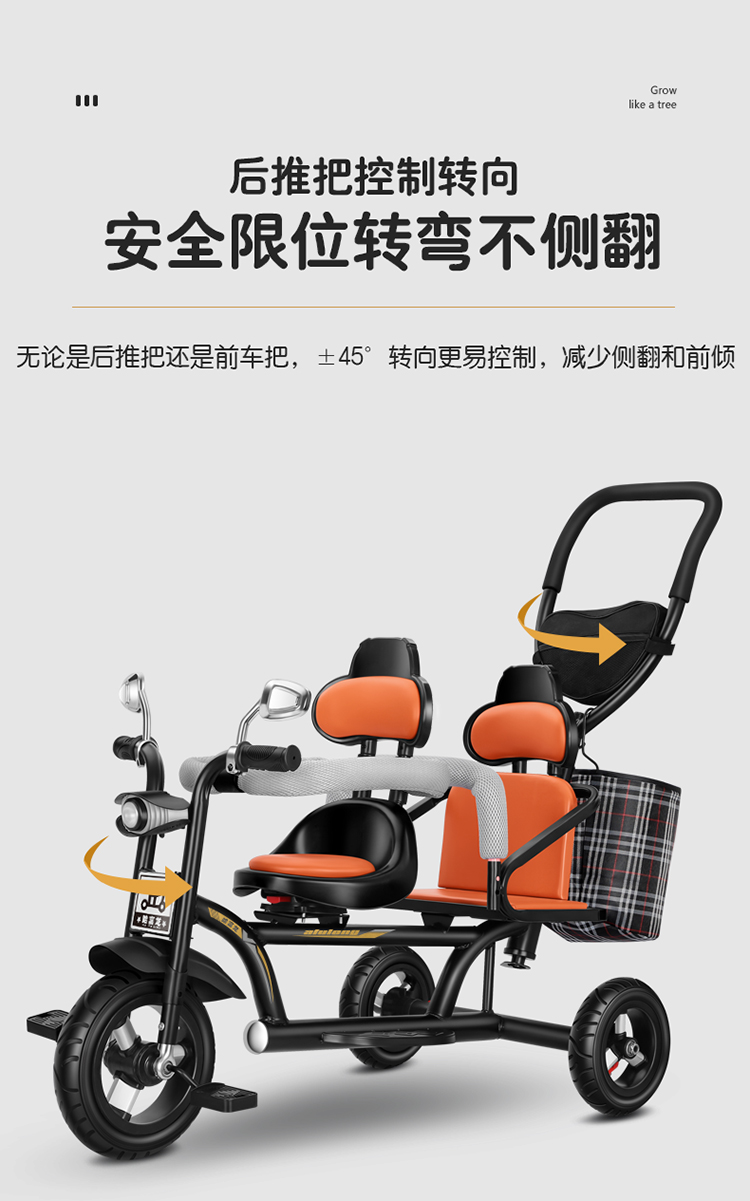 二胎溜娃神器双人儿童三轮车可带人宝宝脚踏车双胞胎婴幼儿手推车
