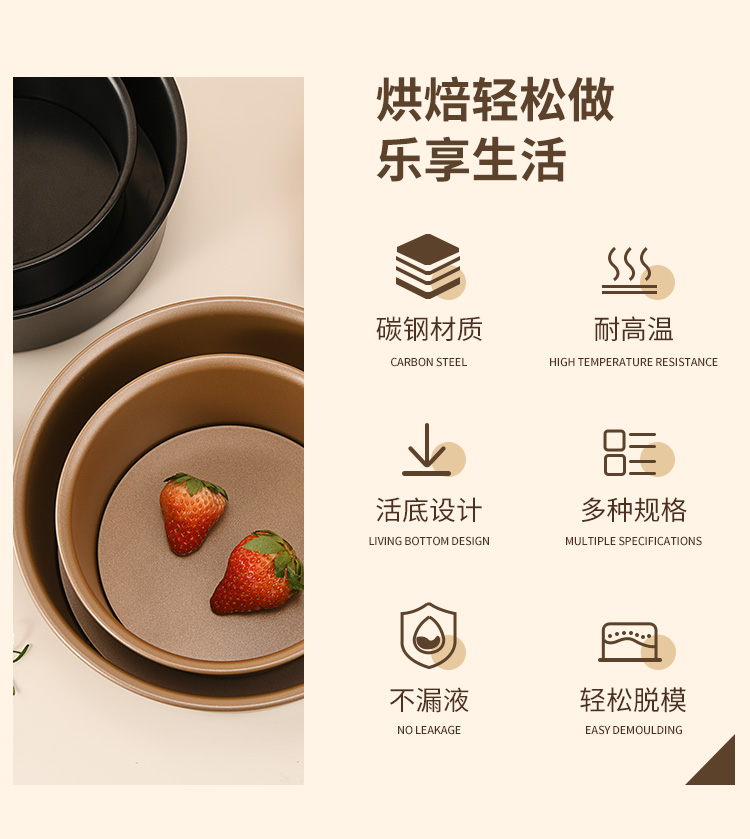 戚风蛋糕模具活底家用烘焙烤箱工具不沾面包全套磨具6/8寸胚烤盘