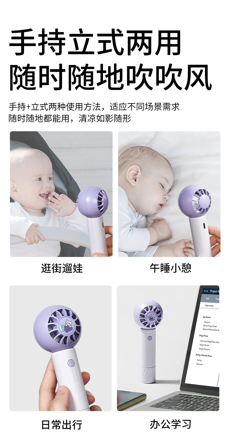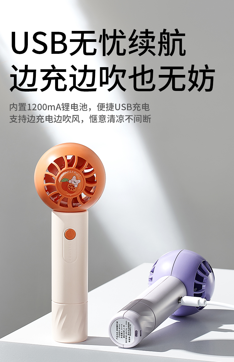 科巢儿童手持usb风扇挂立办公室可桌面迷你充电空调扇便携式随身制冷小风扇小型强力电风扇低音宿舍降温神器