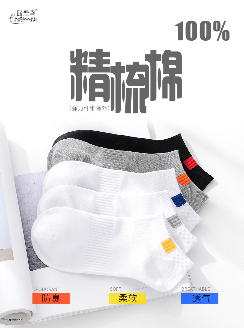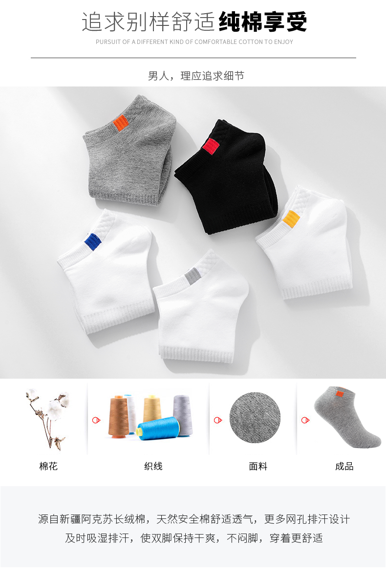 袜子男短袜夏季防臭吸汗运动隐形袜纯棉浅口低帮短筒袜船袜ins潮