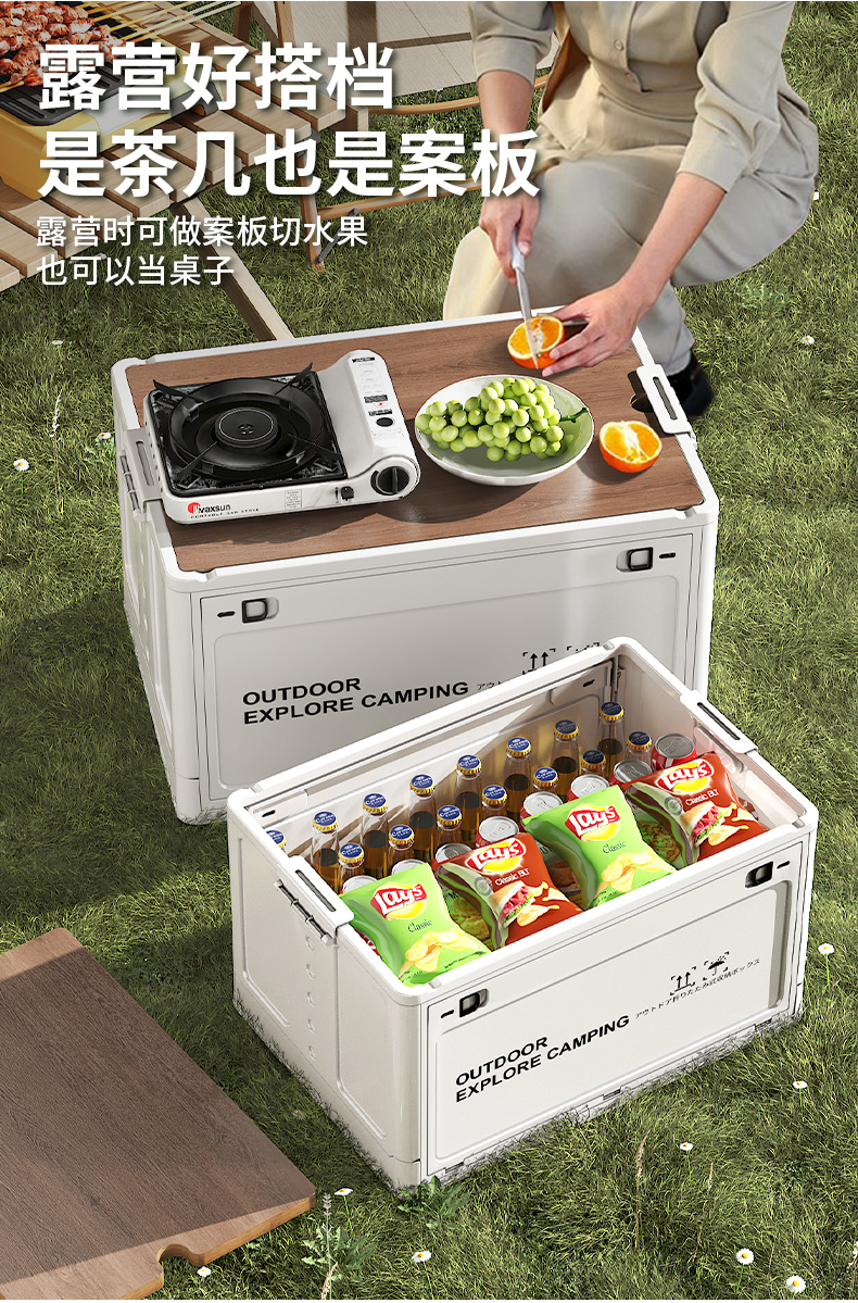 户外露营收纳箱野营野餐折叠箱汽车车载整理箱后备储物箱