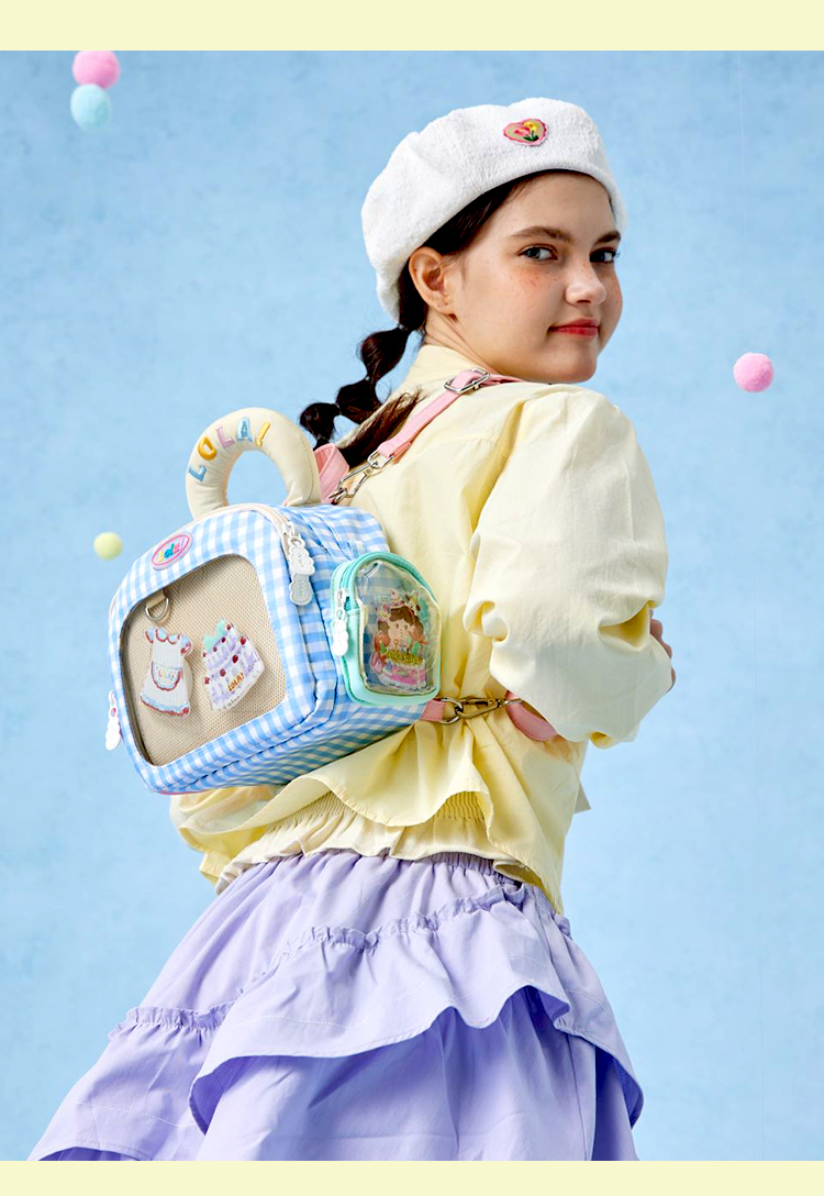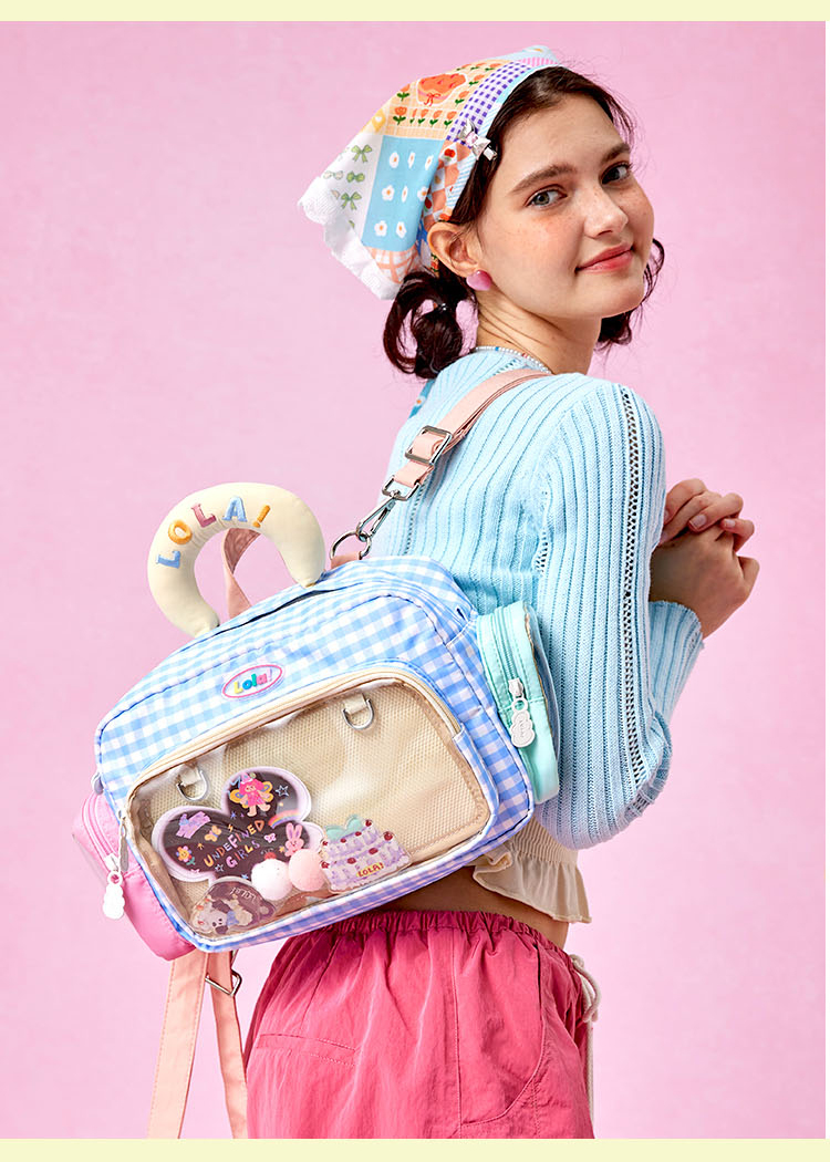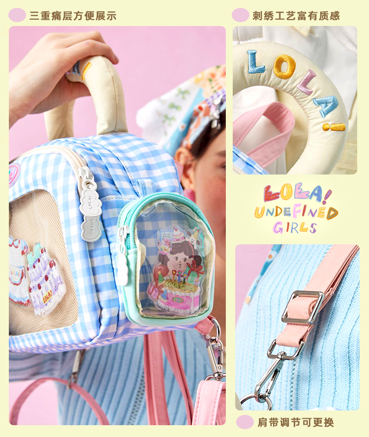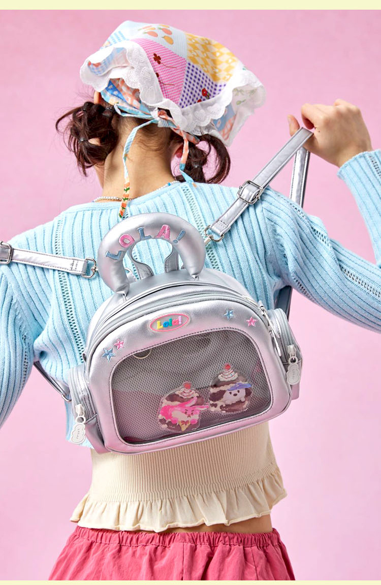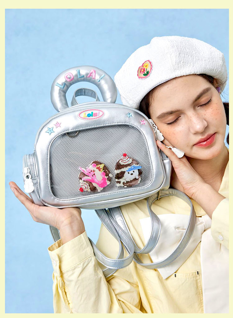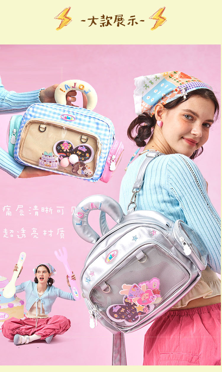 LOLA DESIGN机器人背痛 少女出游小背包可爱斜挎中食量痛包双肩包