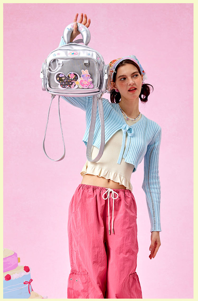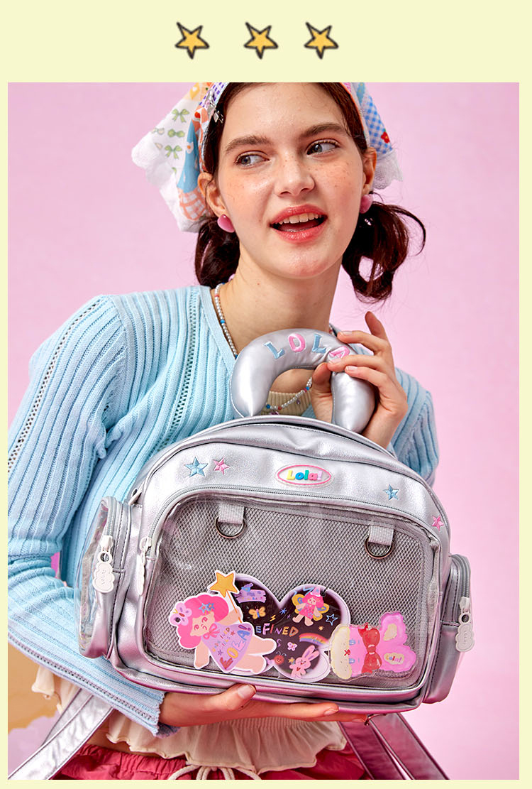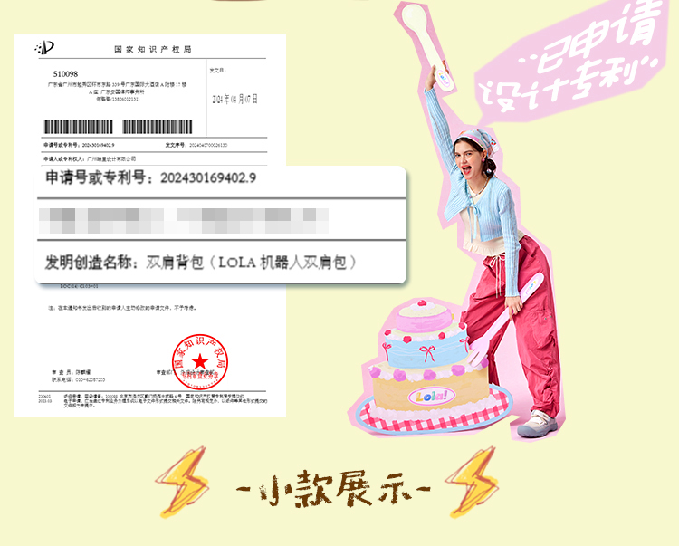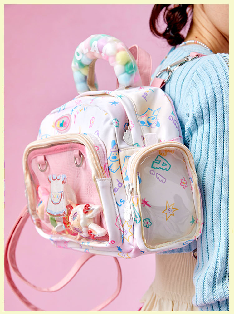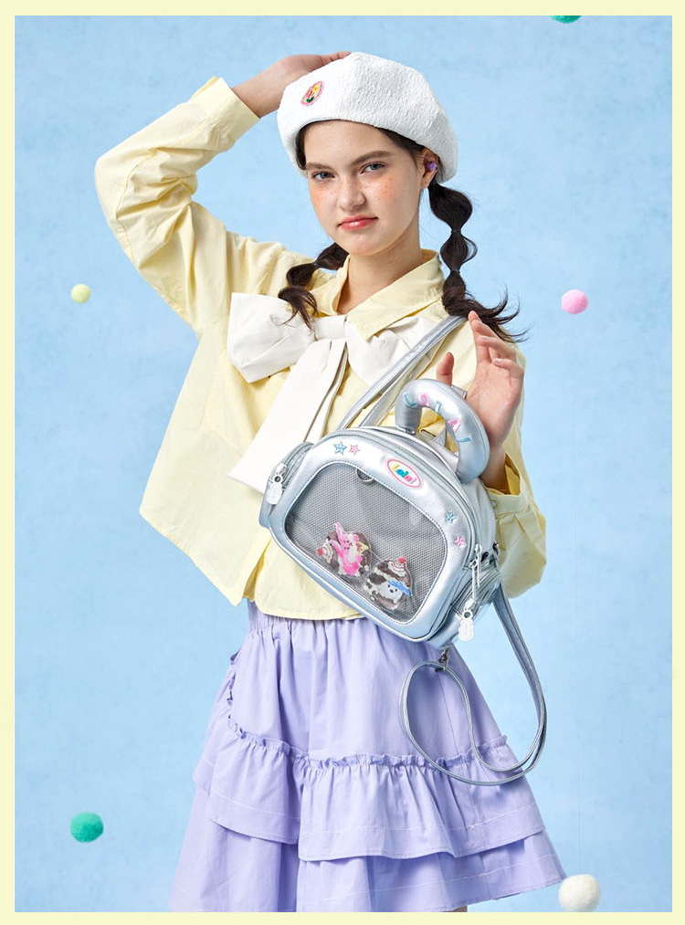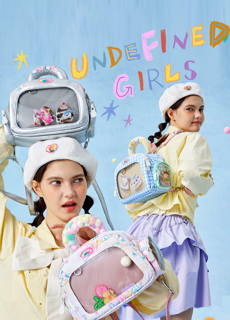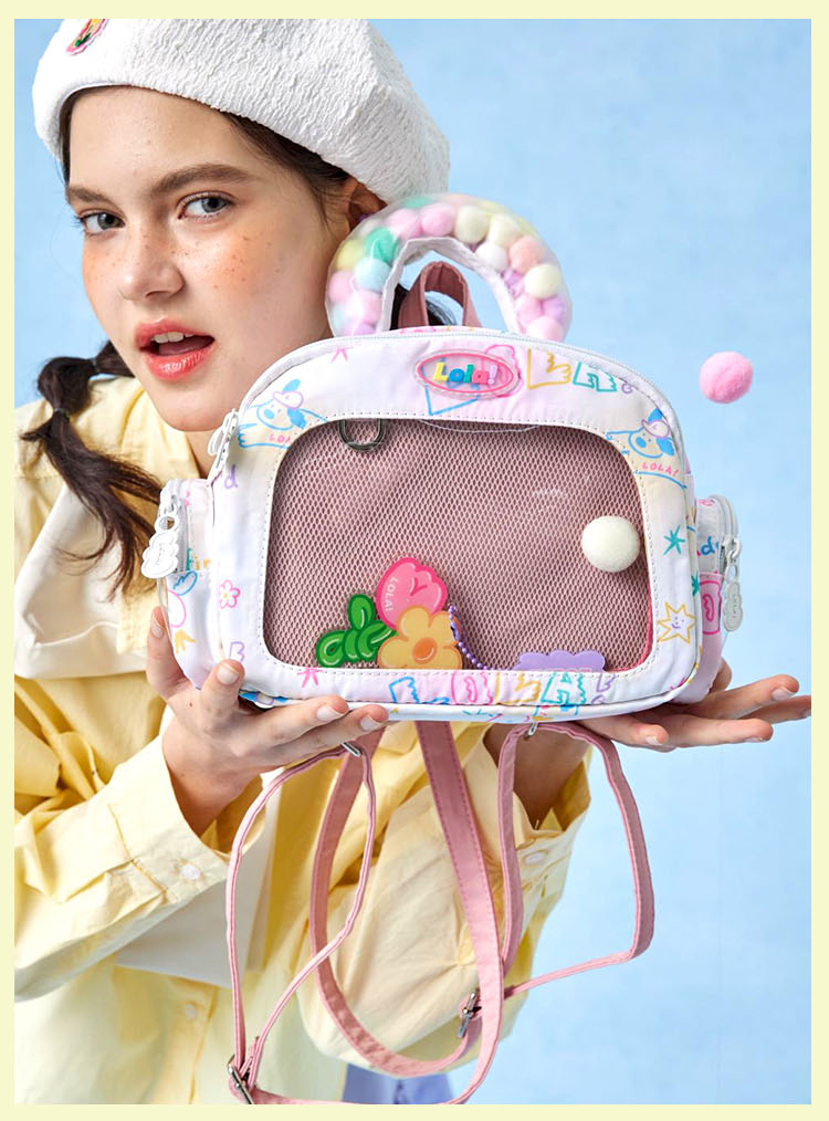 LOLA DESIGN机器人背痛 少女出游小背包可爱斜挎中食量痛包双肩包