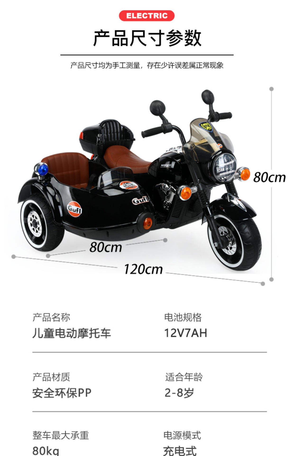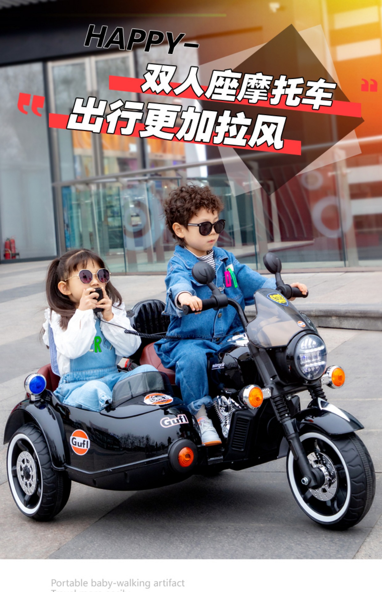 儿童电动摩托车双人可坐大人宝宝玩具车三轮电动车亲子超大号童车