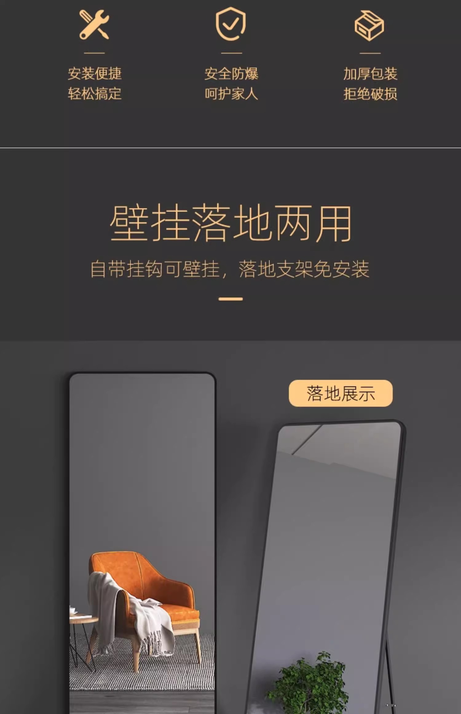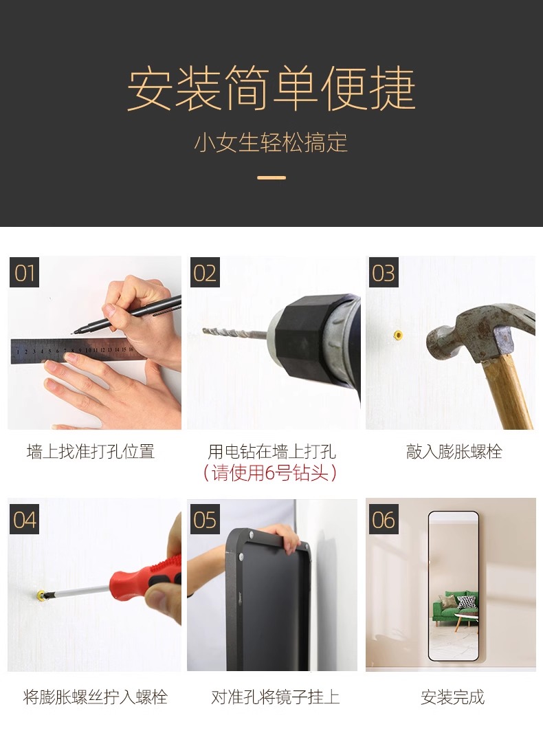 舞蹈镜子家用练舞健身大尺寸穿衣全身镜高清不变形玻璃落地镜子