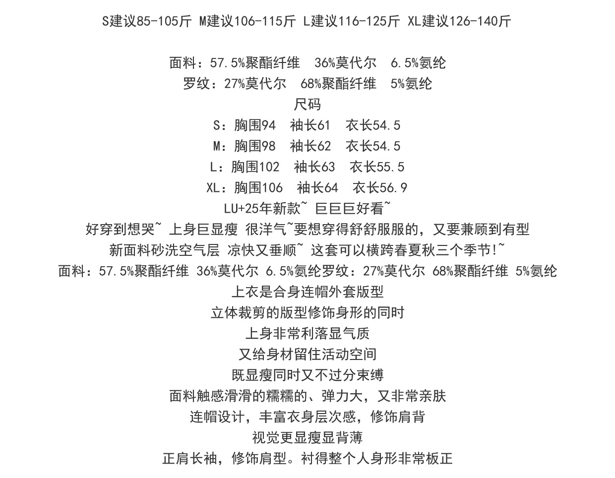 lu家同款运动休闲百搭短款外套卫衣瑜伽服连帽外套女2025早春新款