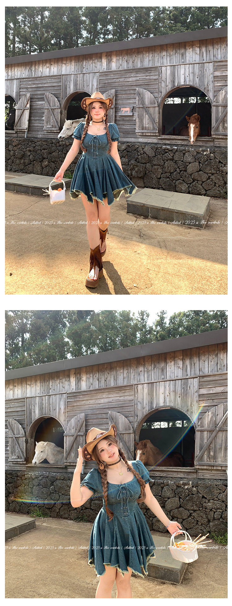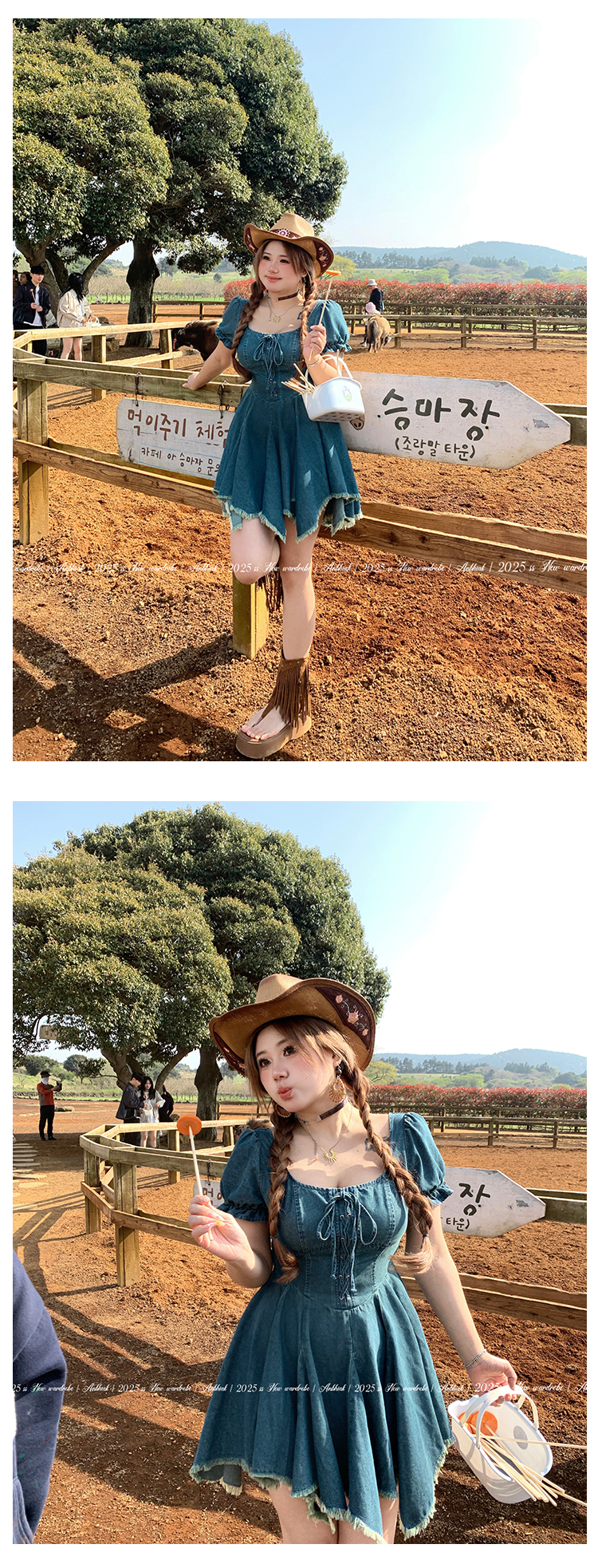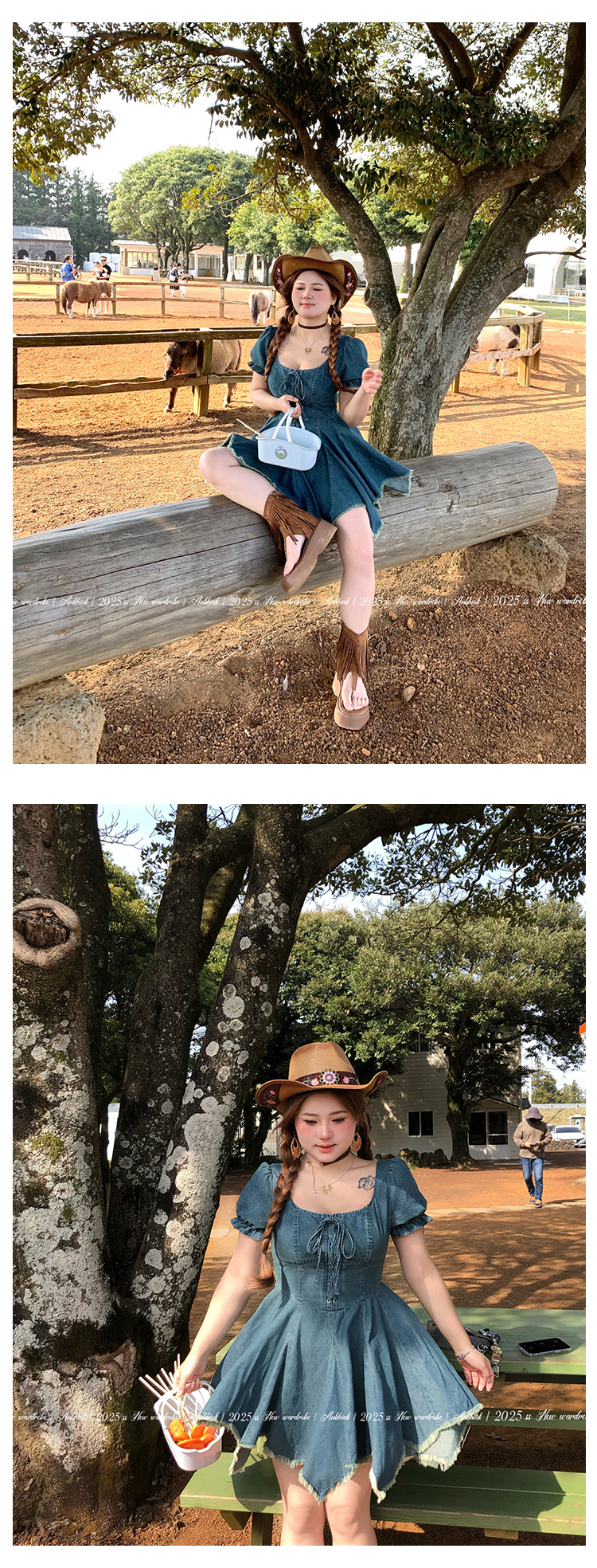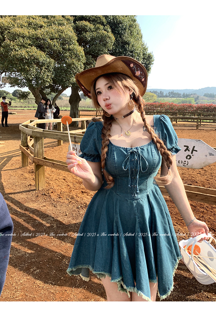 安妮不火迷迭自由集高腰流苏牛仔连衣裙女微胖大码美式复古牛仔裙