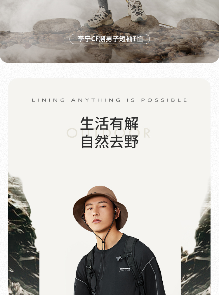 李宁CF溯短袖男士夏季正品户外速干上衣宽松半袖休闲体恤运动T恤
