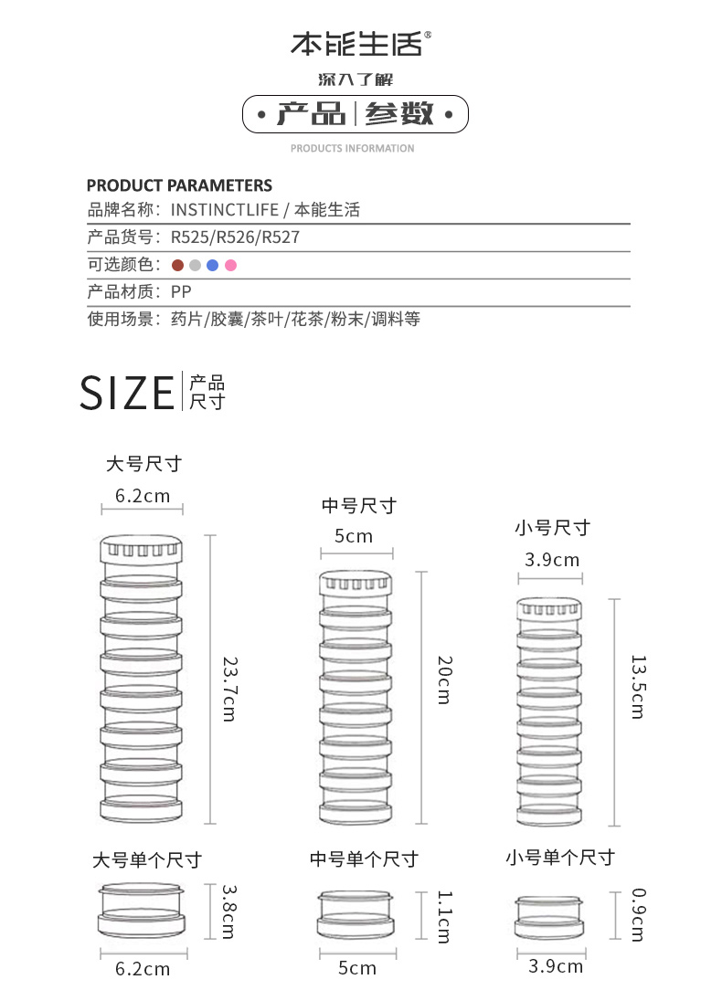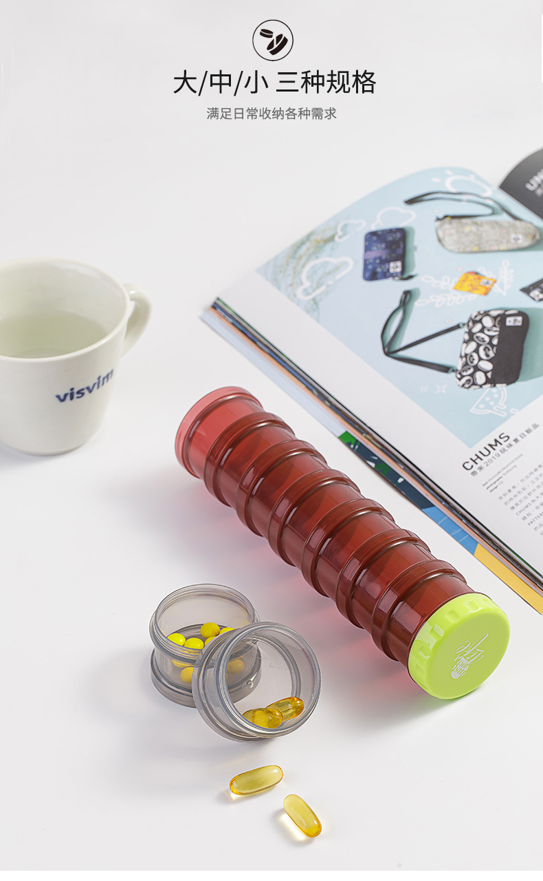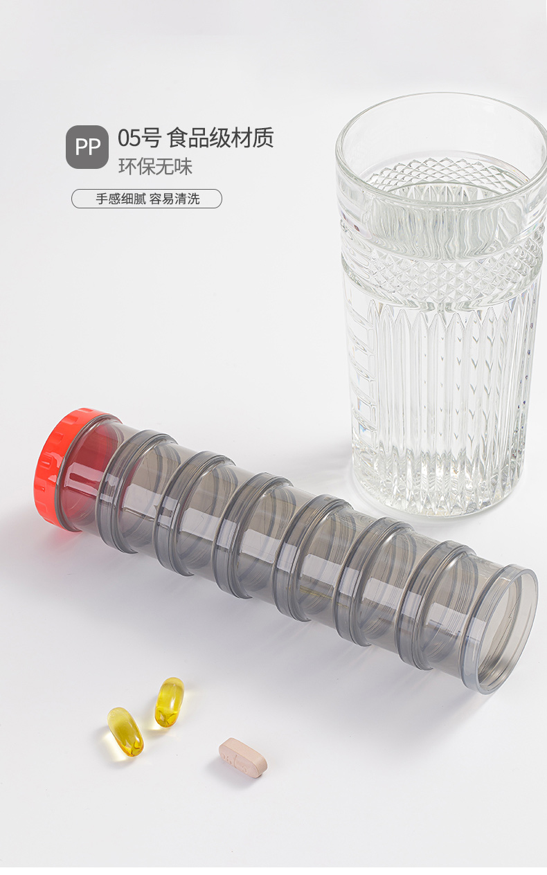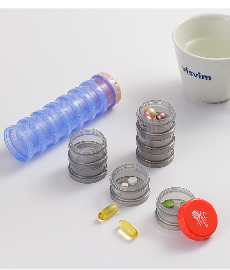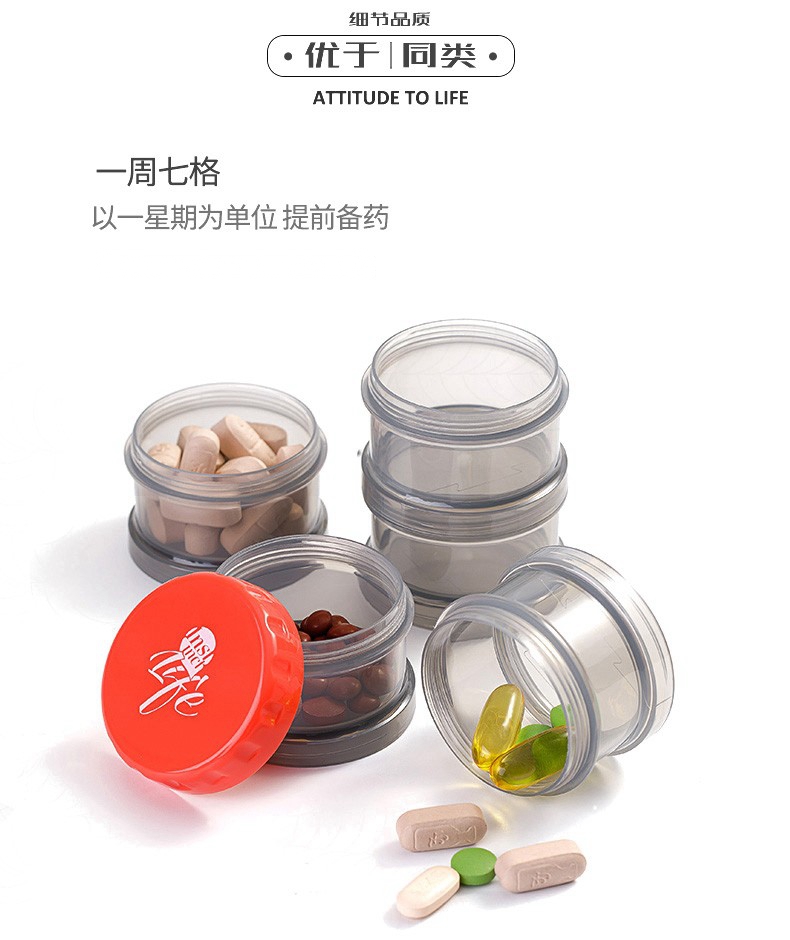 便携一周7格迷你密封分格小药盒蛋白粉圆瓶子保健品收纳盒储物罐