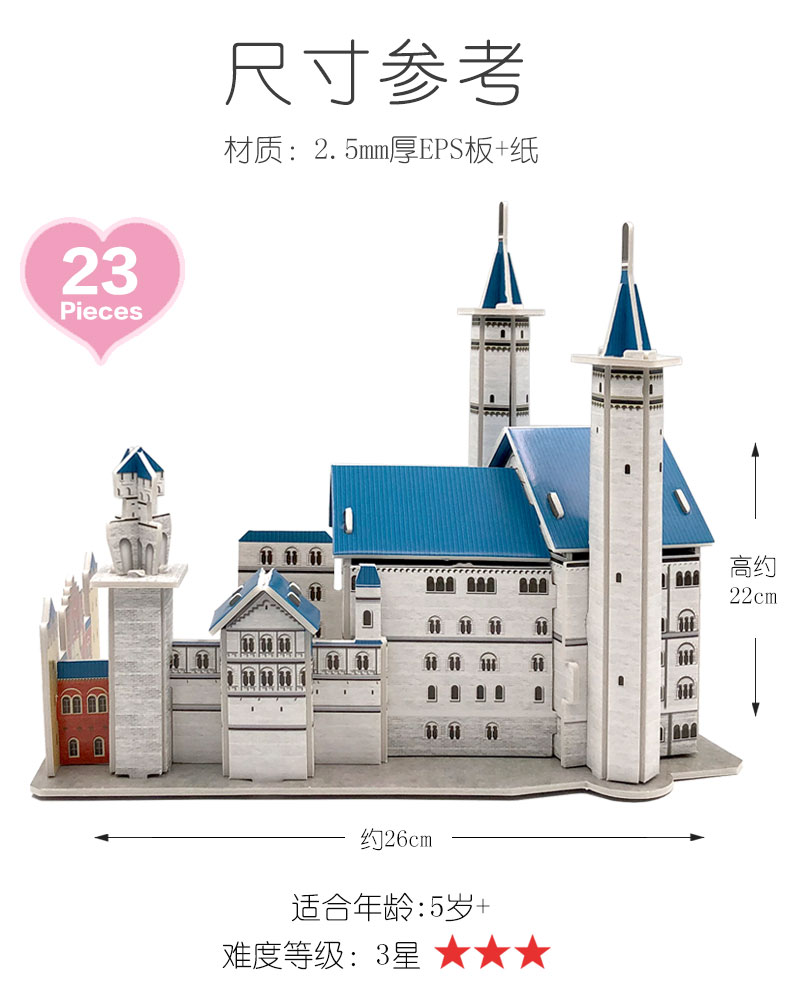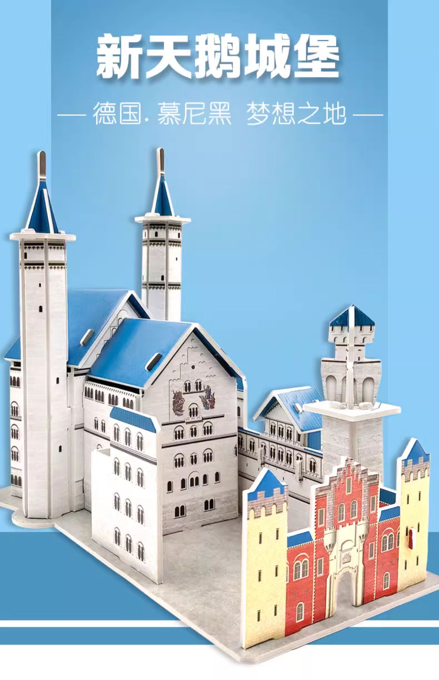 建筑拼图立体拼板手工制作教堂新天鹅城堡儿童益智玩具6岁3d模型