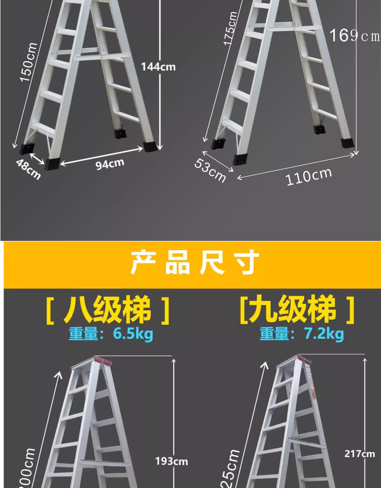 厂家直销加厚可折叠铝合金人字家用铝梯双侧踏板登高梯阁楼梯子