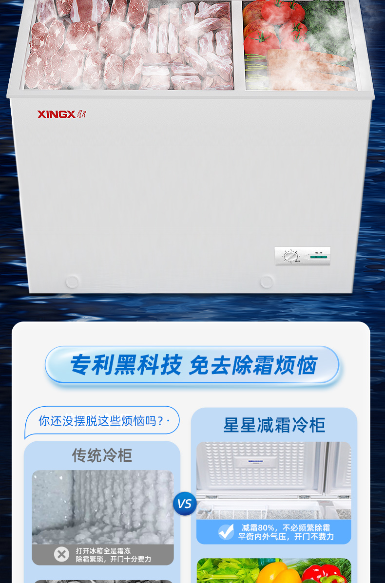 星星冰柜家用小型冷藏冷冻两用178/200/505升一级商用大容量冷柜