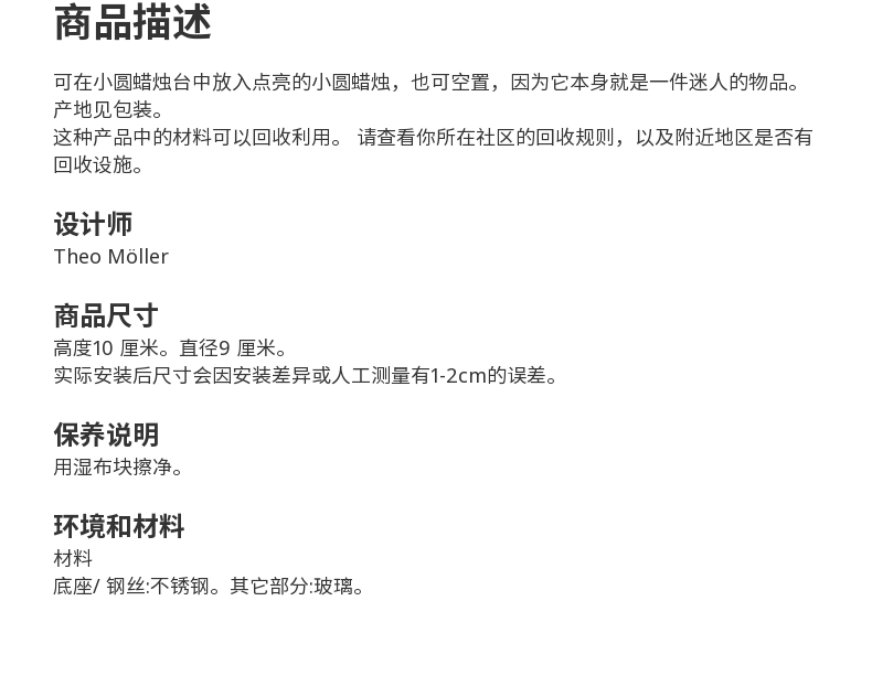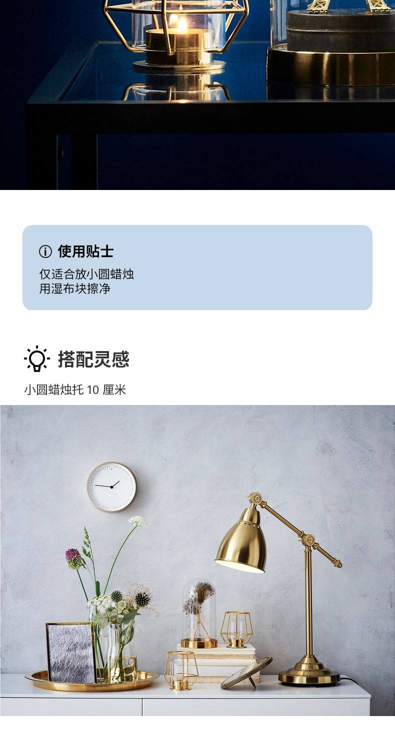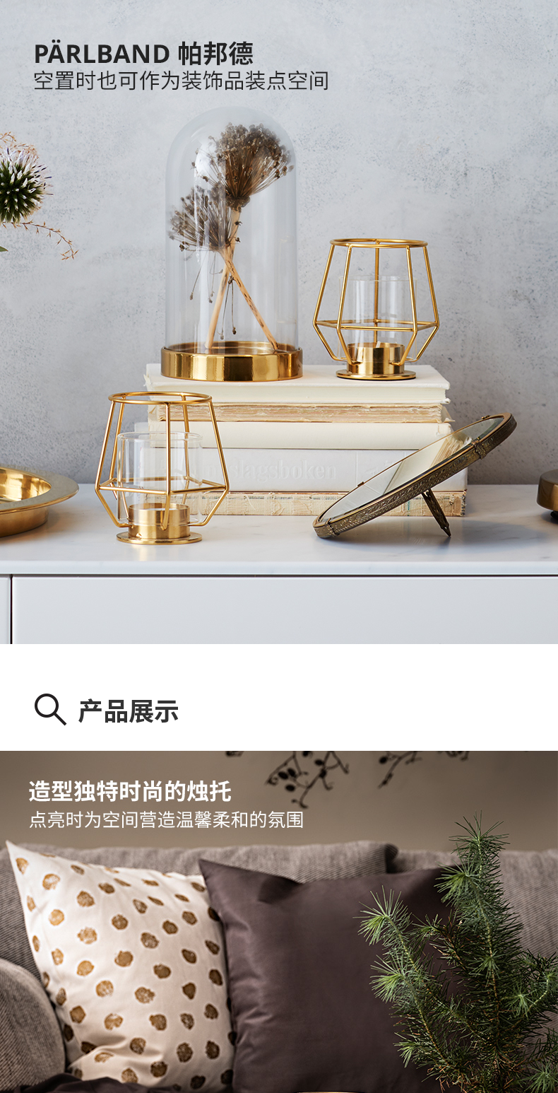 IKEA宜家PARLBAND帕邦德小圆蜡烛托金色烛台现代简约北欧风客厅用