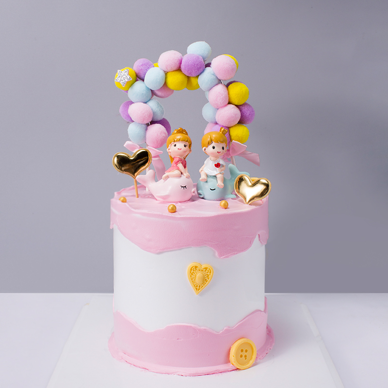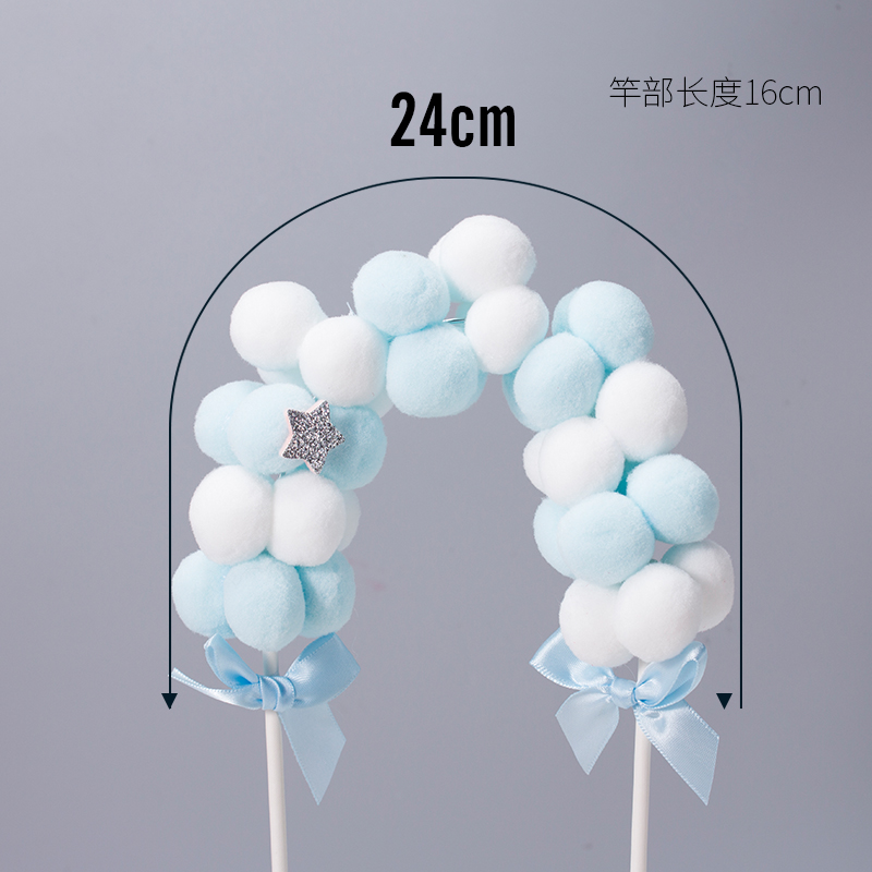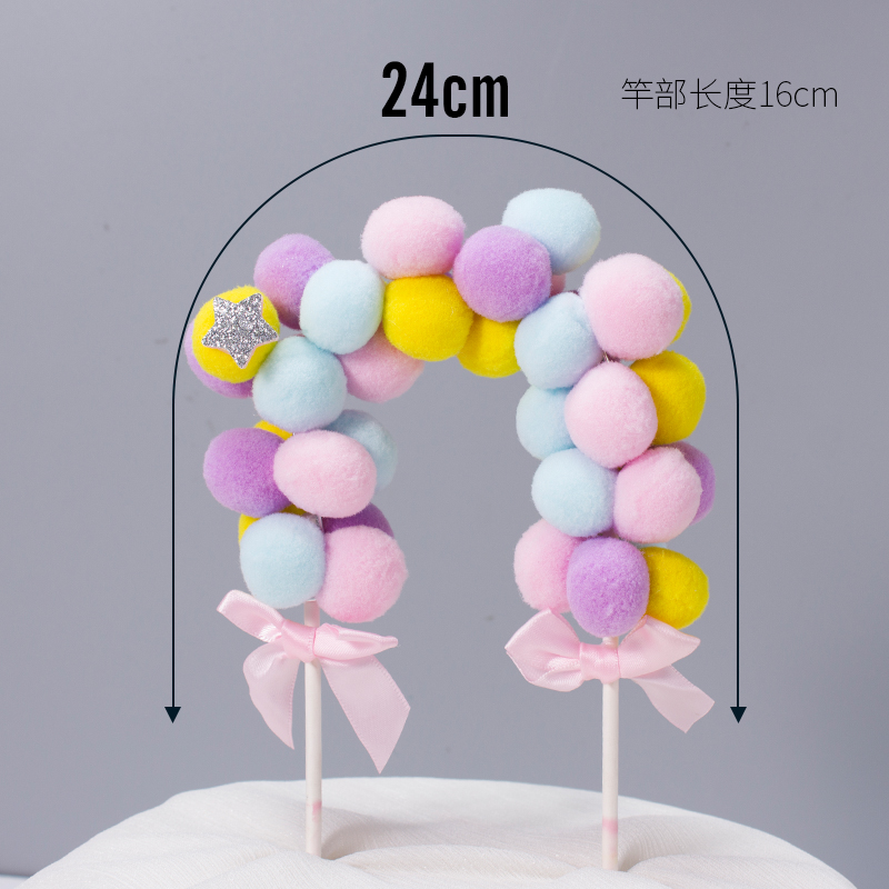 网红毛球拱门生日蛋糕装饰插件彩虹立体绒球生日派对装扮插旗摆件