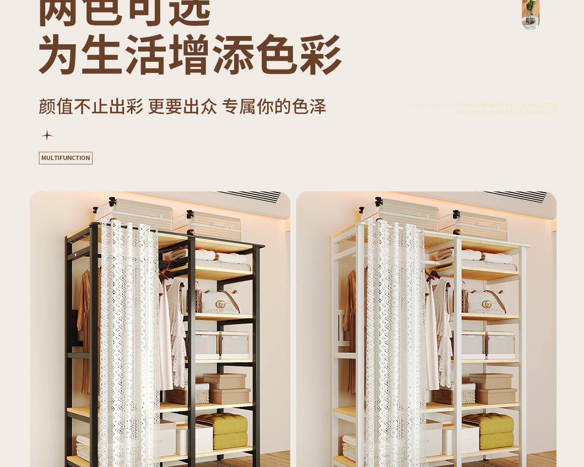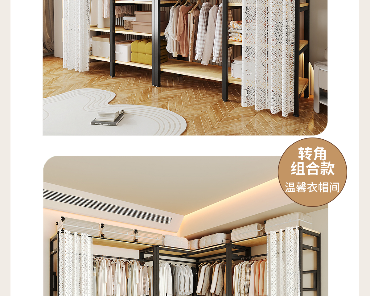 简易衣柜卧室家用转角衣柜开放式衣橱大容量一体衣帽间全钢架衣柜
