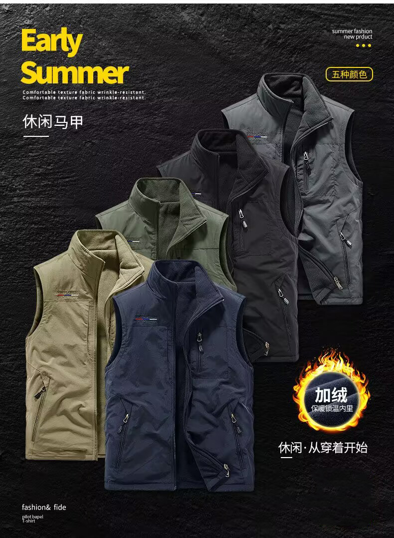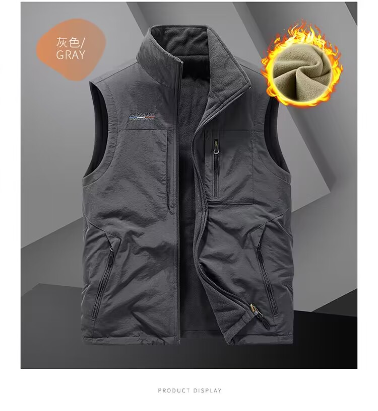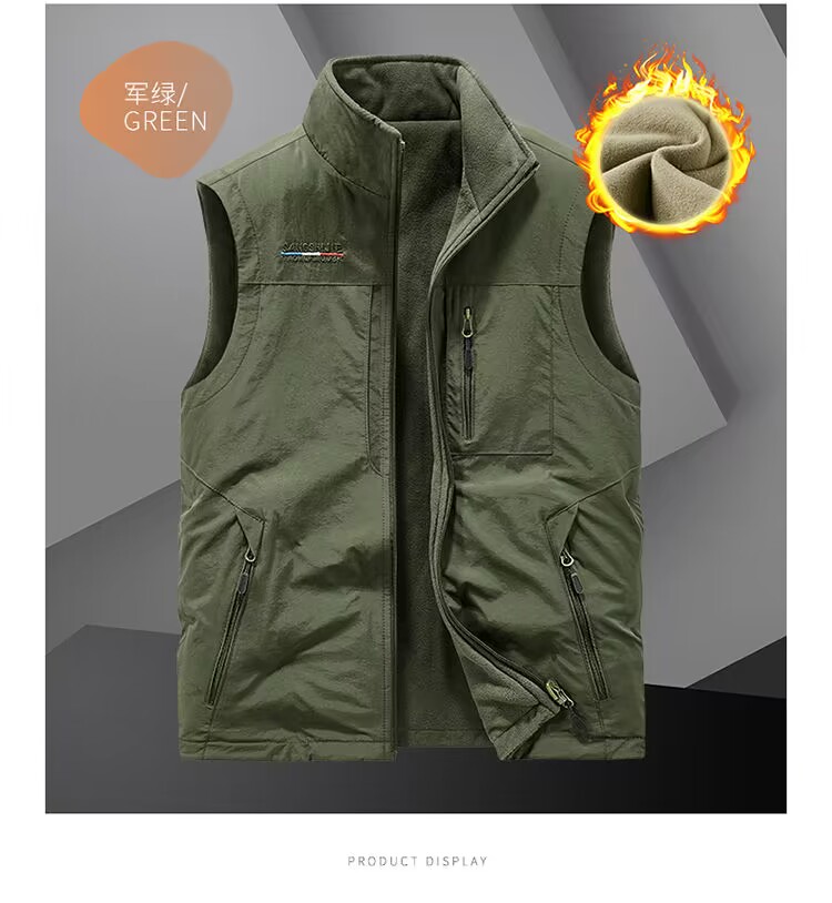 男士马甲秋冬季加绒加厚户外摄影运动背心中老年工装坎肩休闲外套