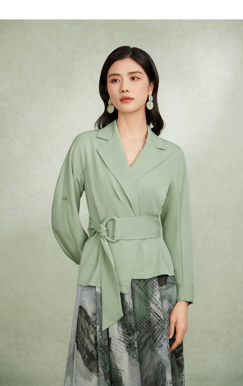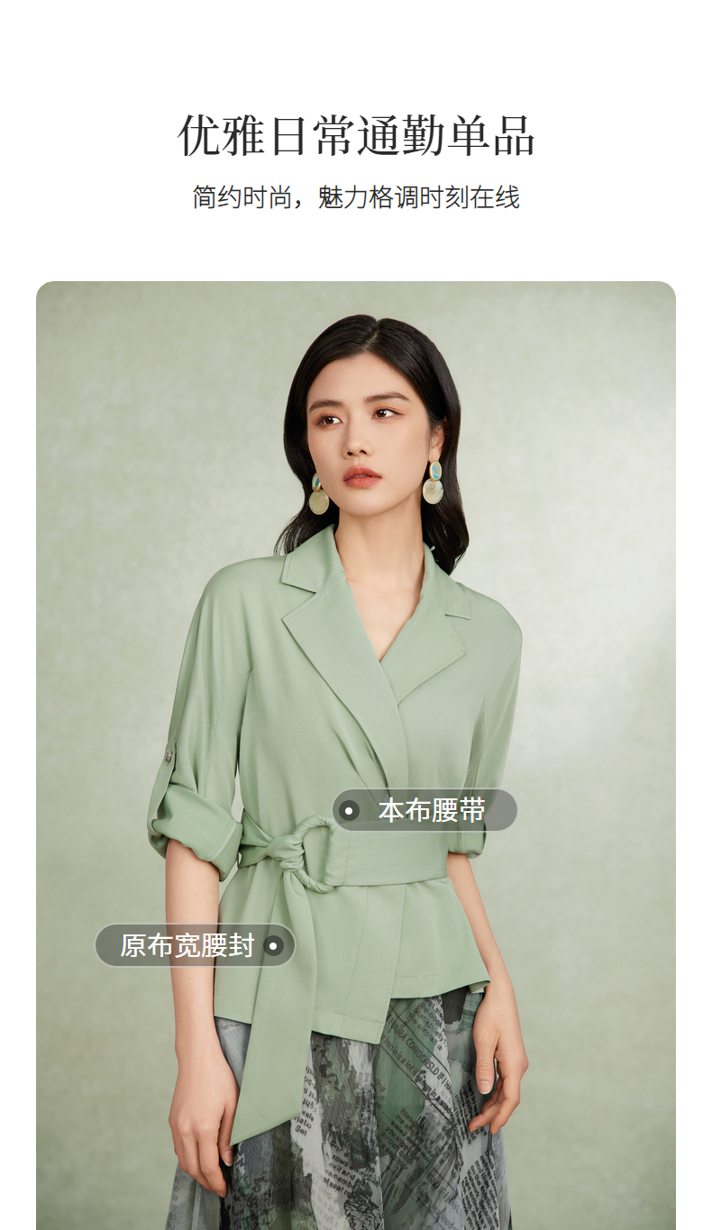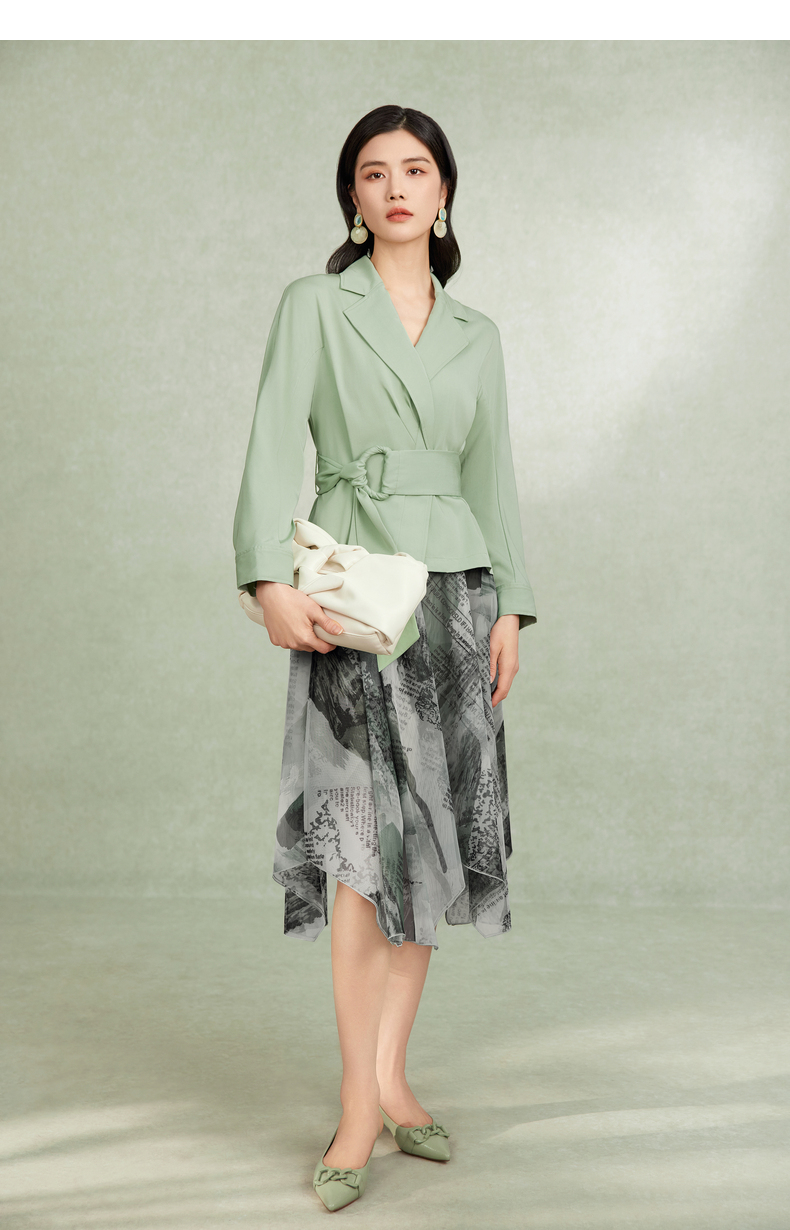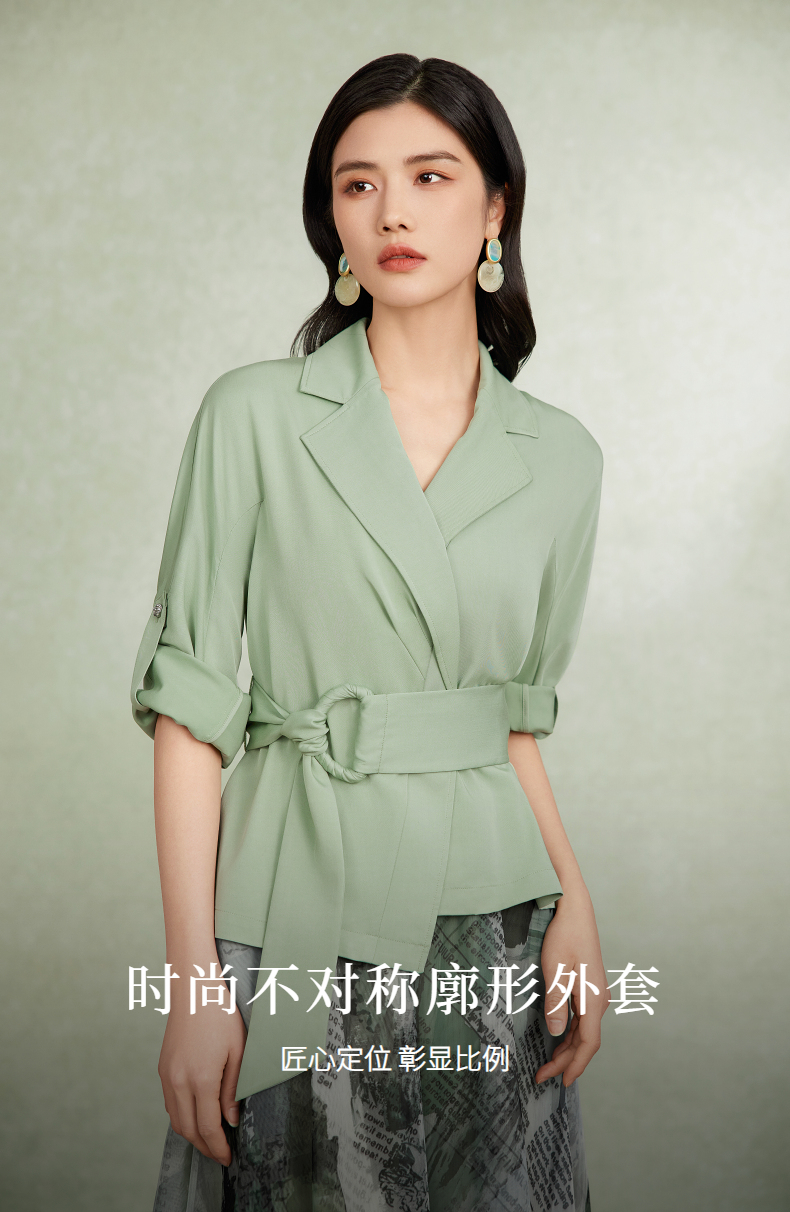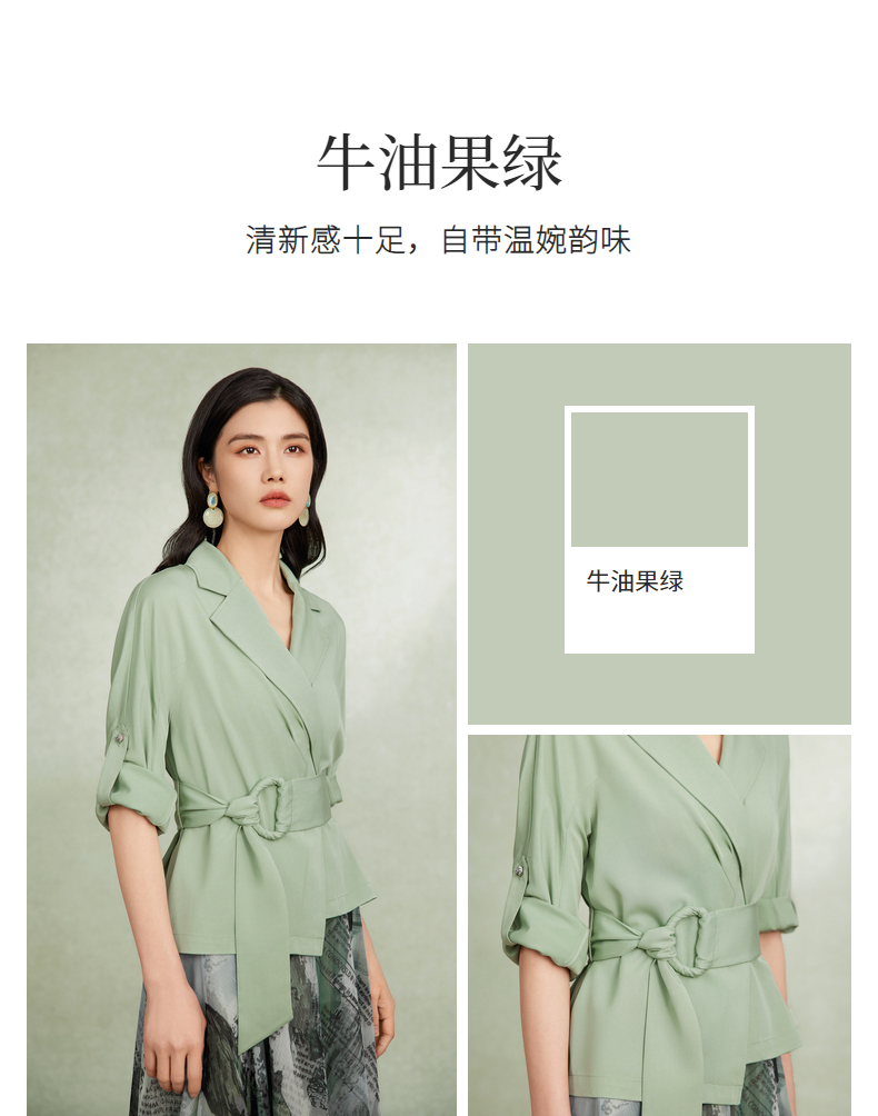 BBLLUUEE/粉蓝衣橱时尚不对称廓形短外套女2025夏装牛油果绿西装