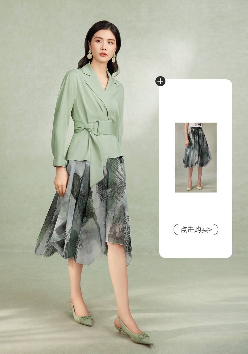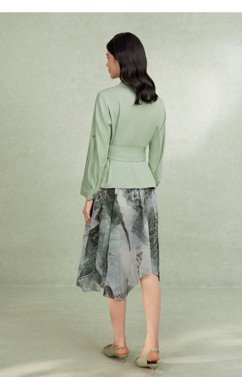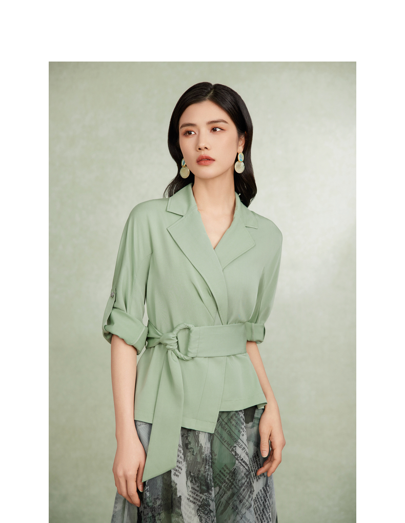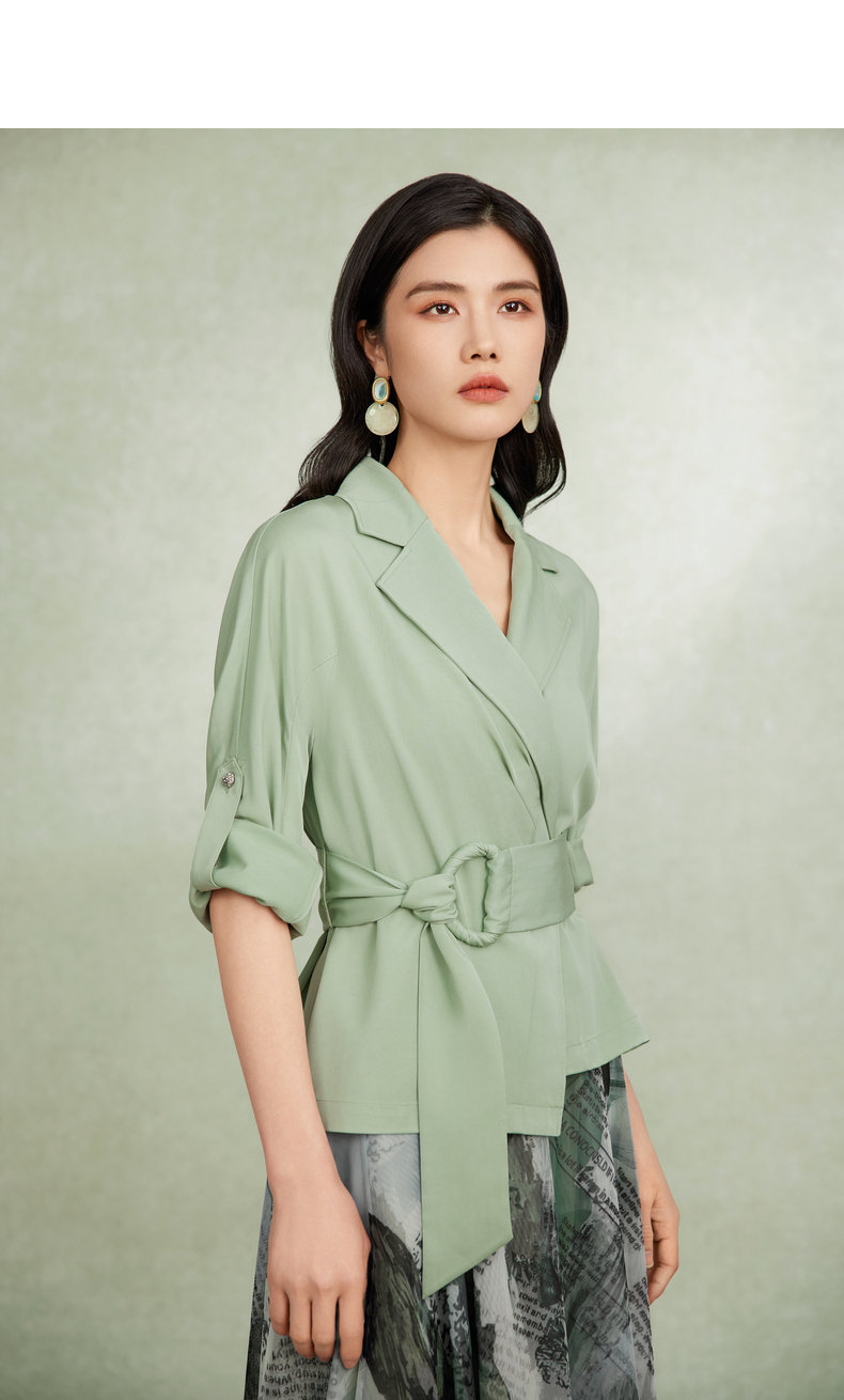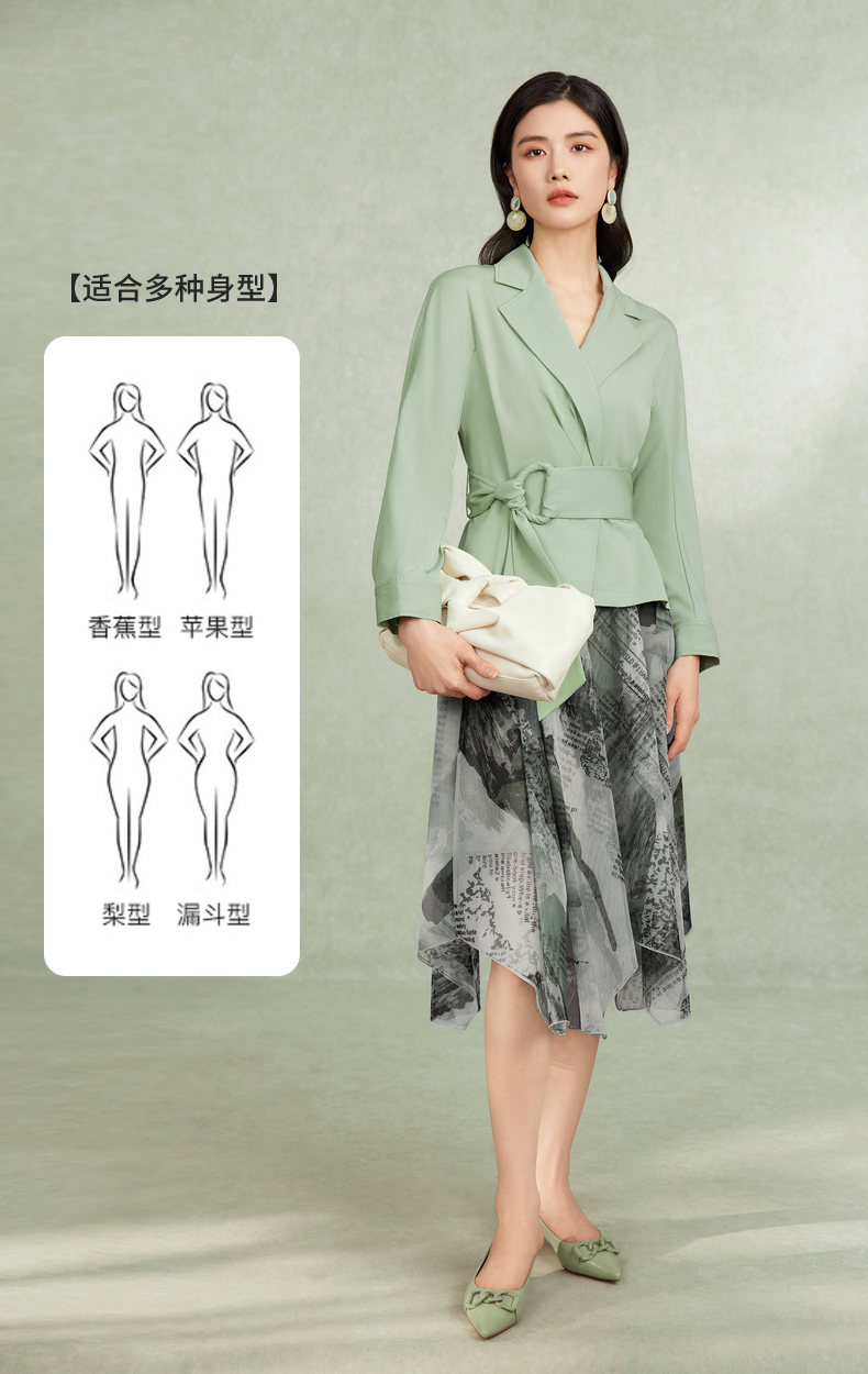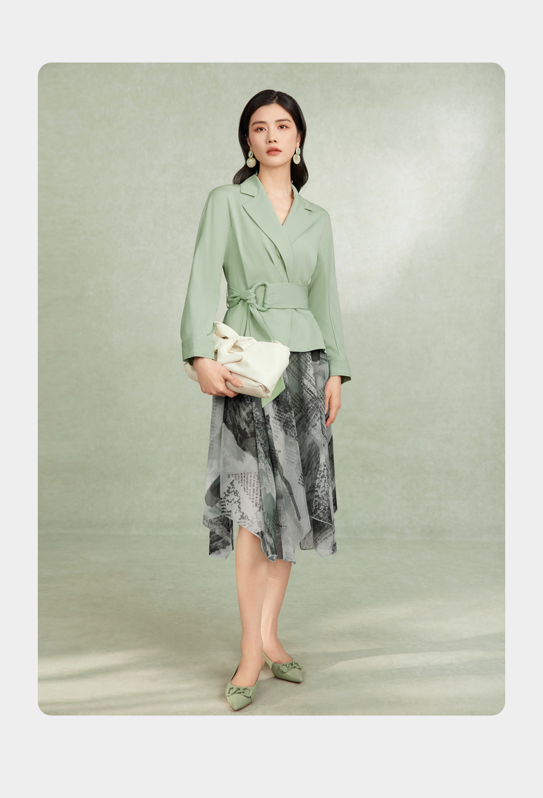 BBLLUUEE/粉蓝衣橱时尚不对称廓形短外套女2025夏装牛油果绿西装
