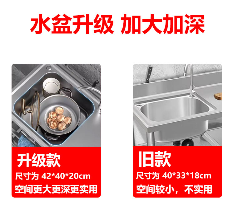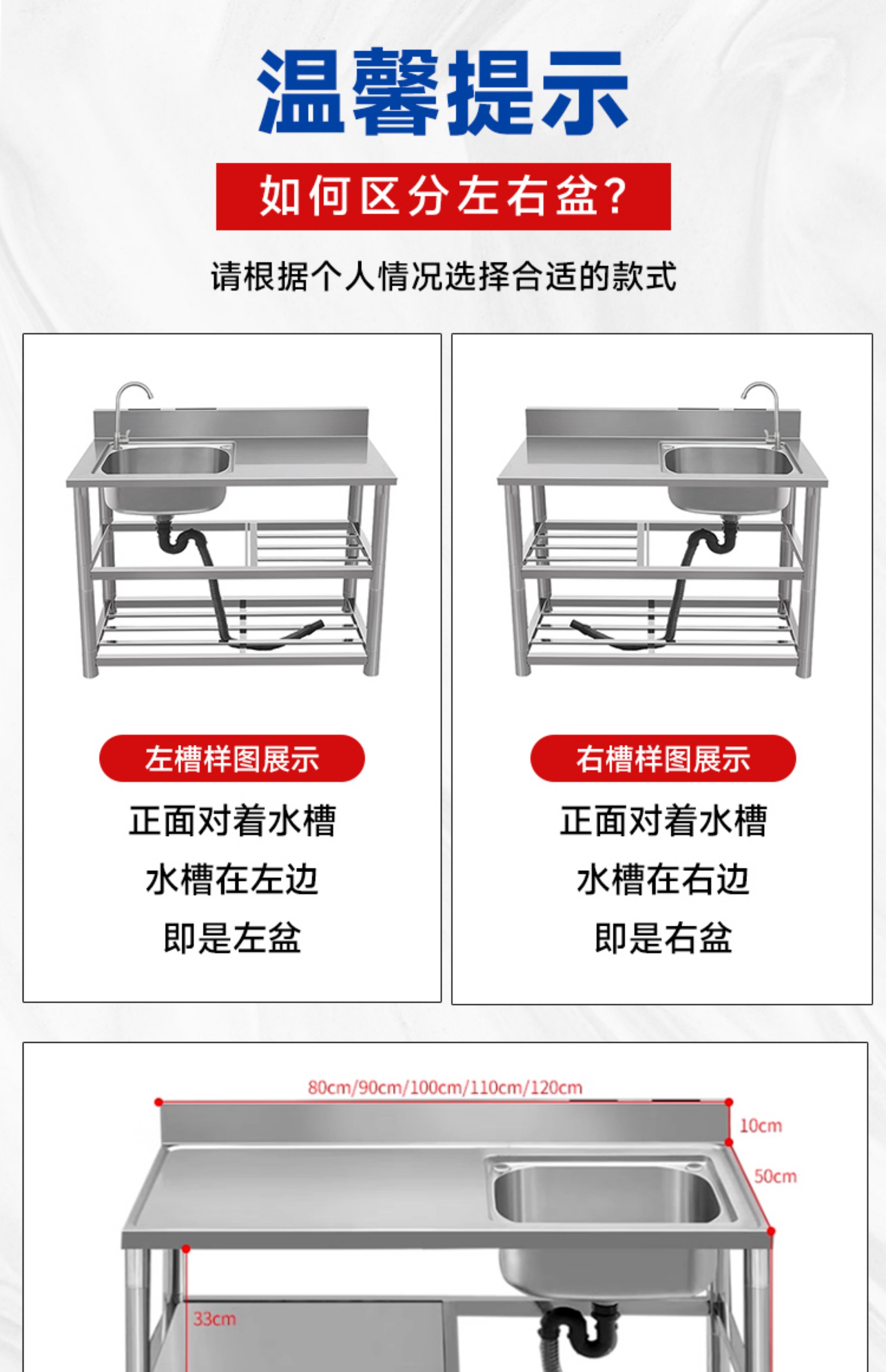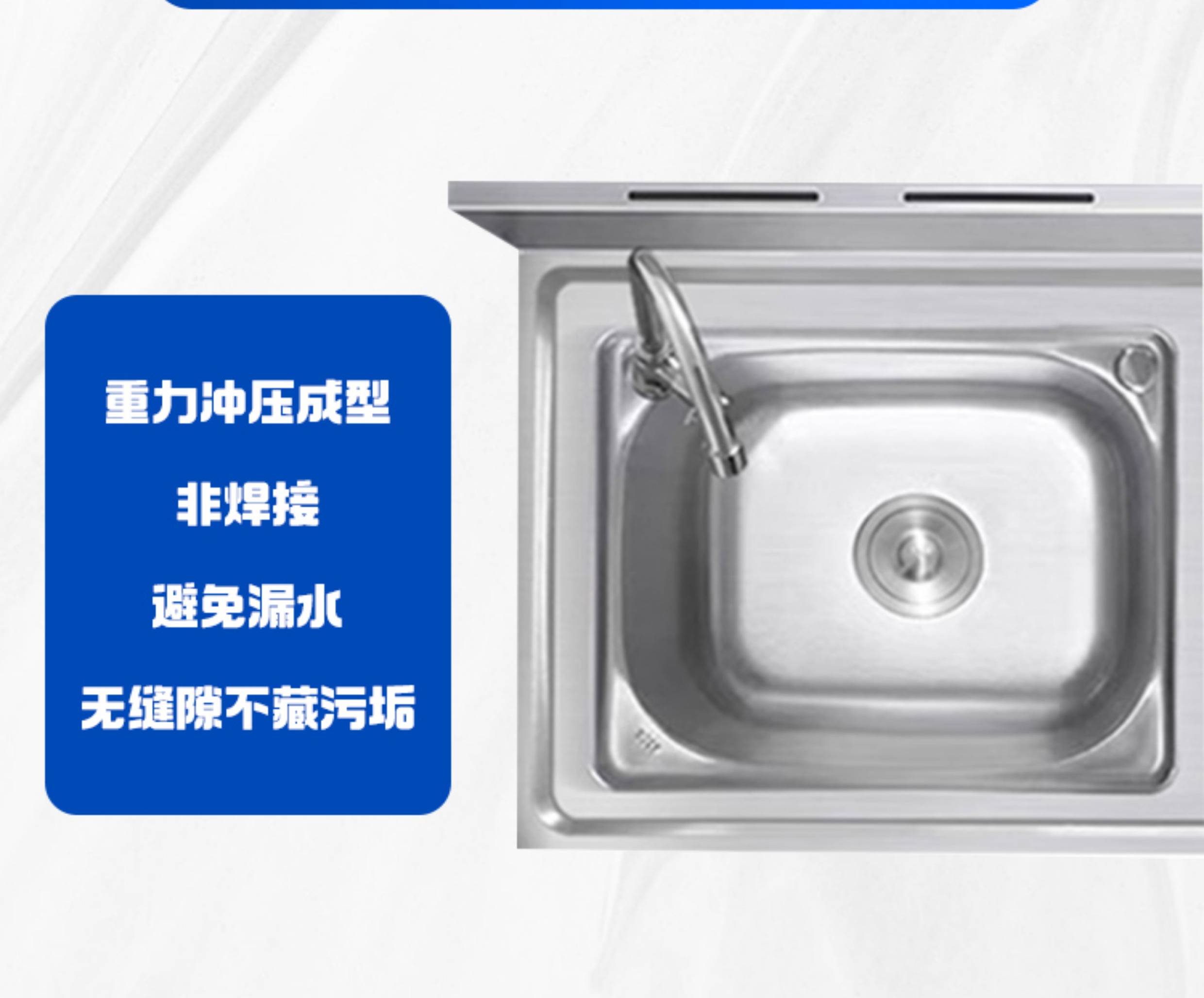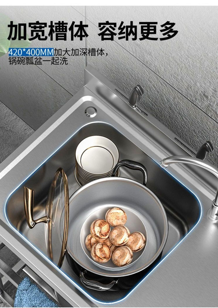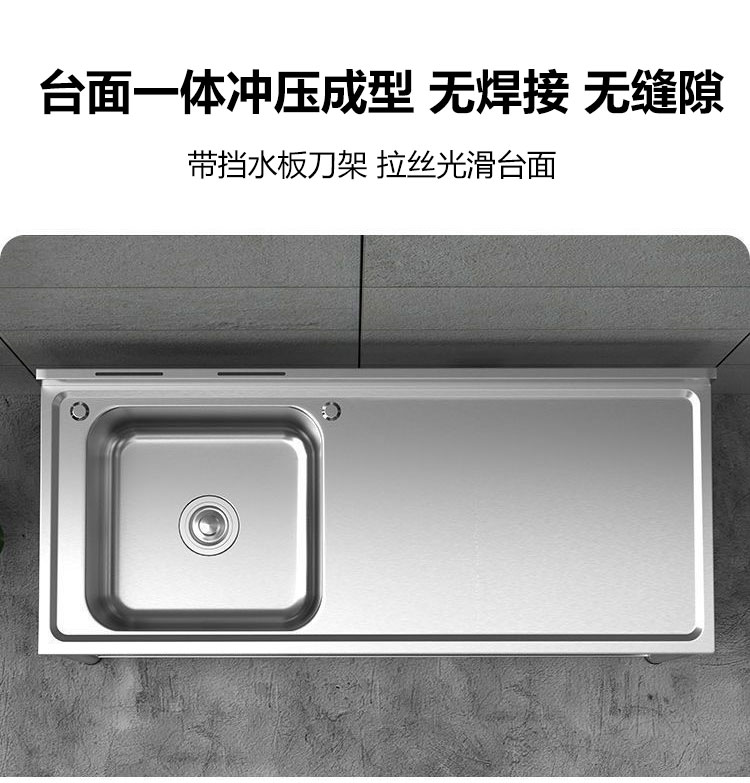不锈钢水槽台面一体厨房洗手盆带支架洗碗池大单槽家用洗菜盆双槽