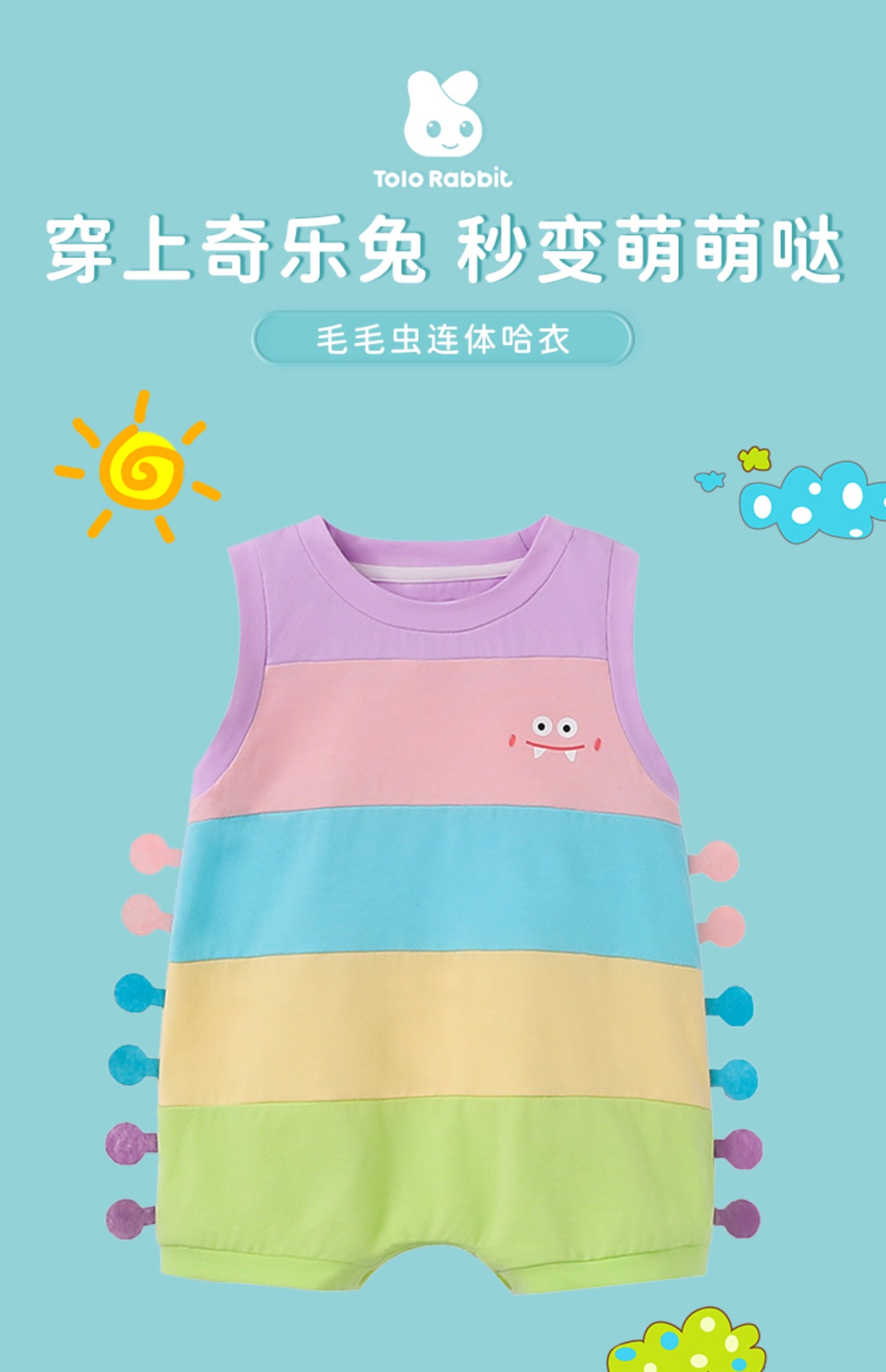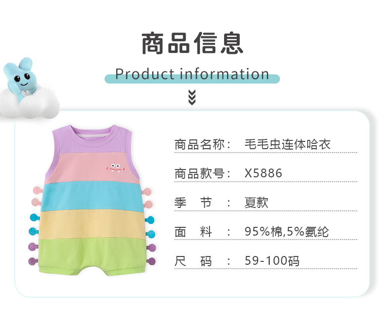 婴儿衣夏季新款哈衣宝宝个性超萌毛毛虫爬服新生儿纯棉外出连体衣