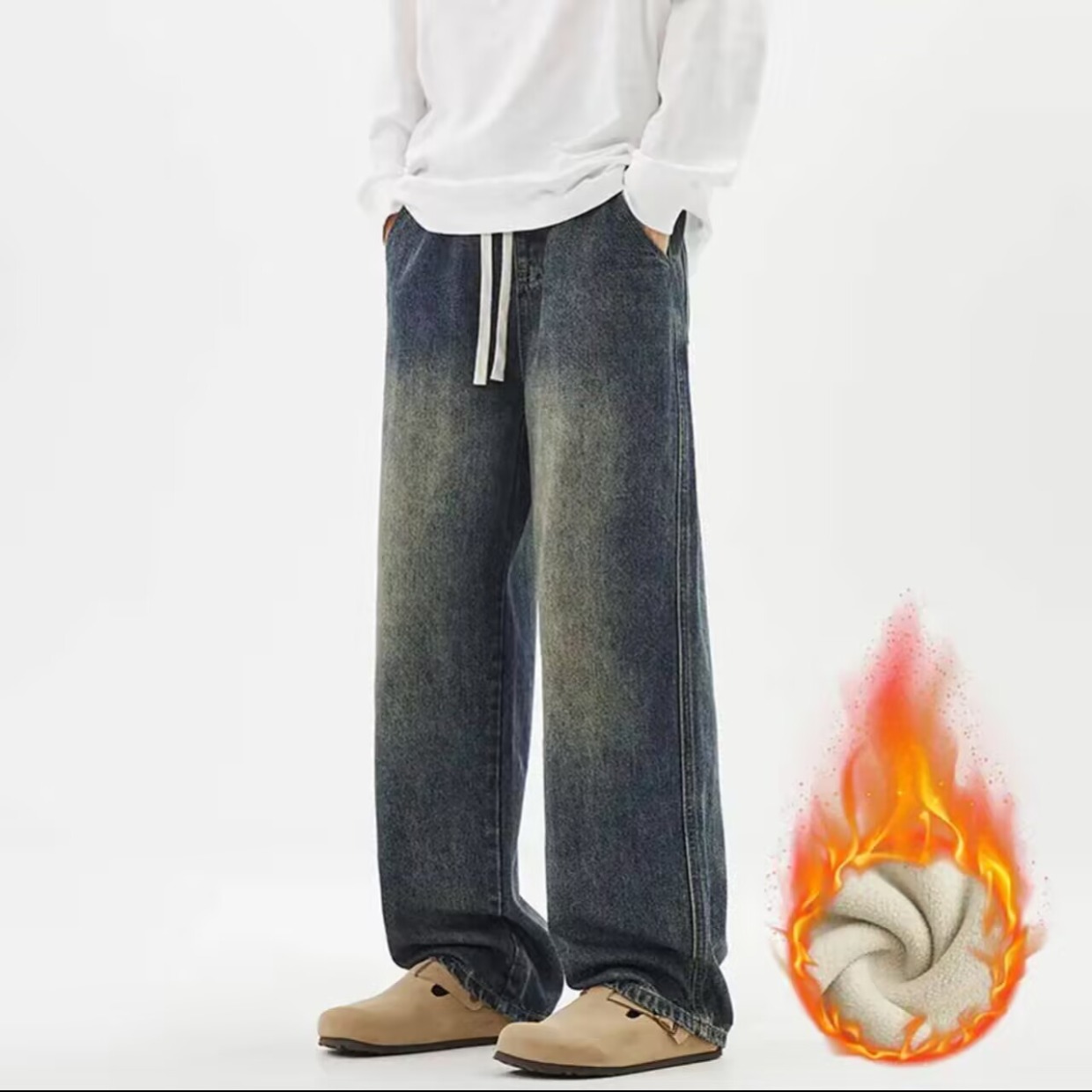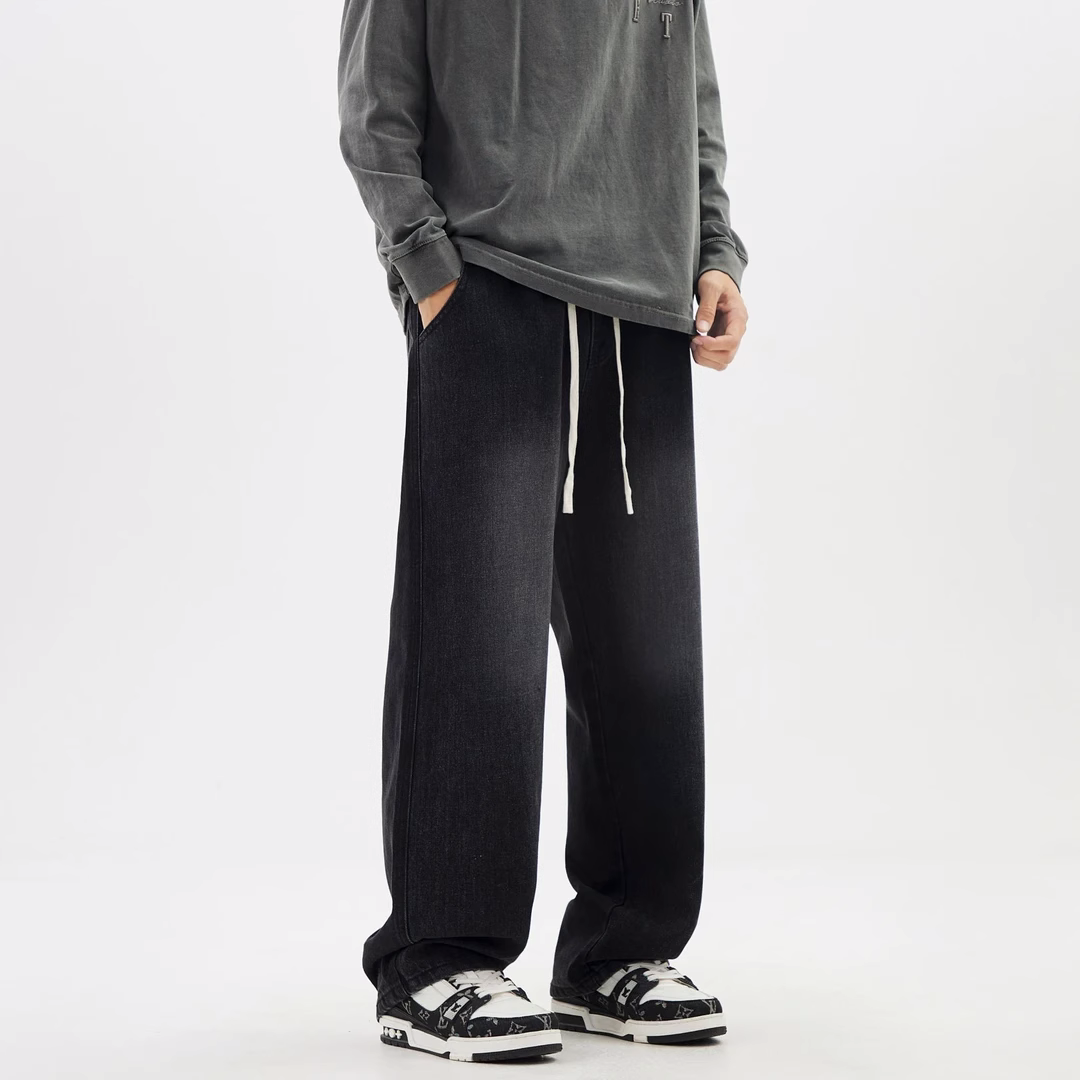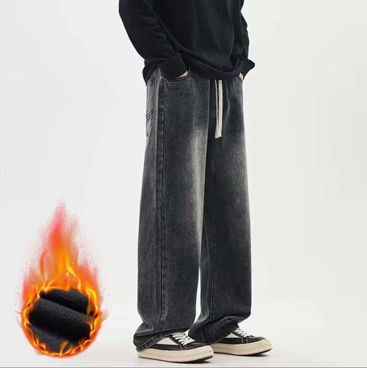 牛仔裤男士秋冬黑色美式男款裤子加绒男裤男生宽松休闲直筒裤长裤