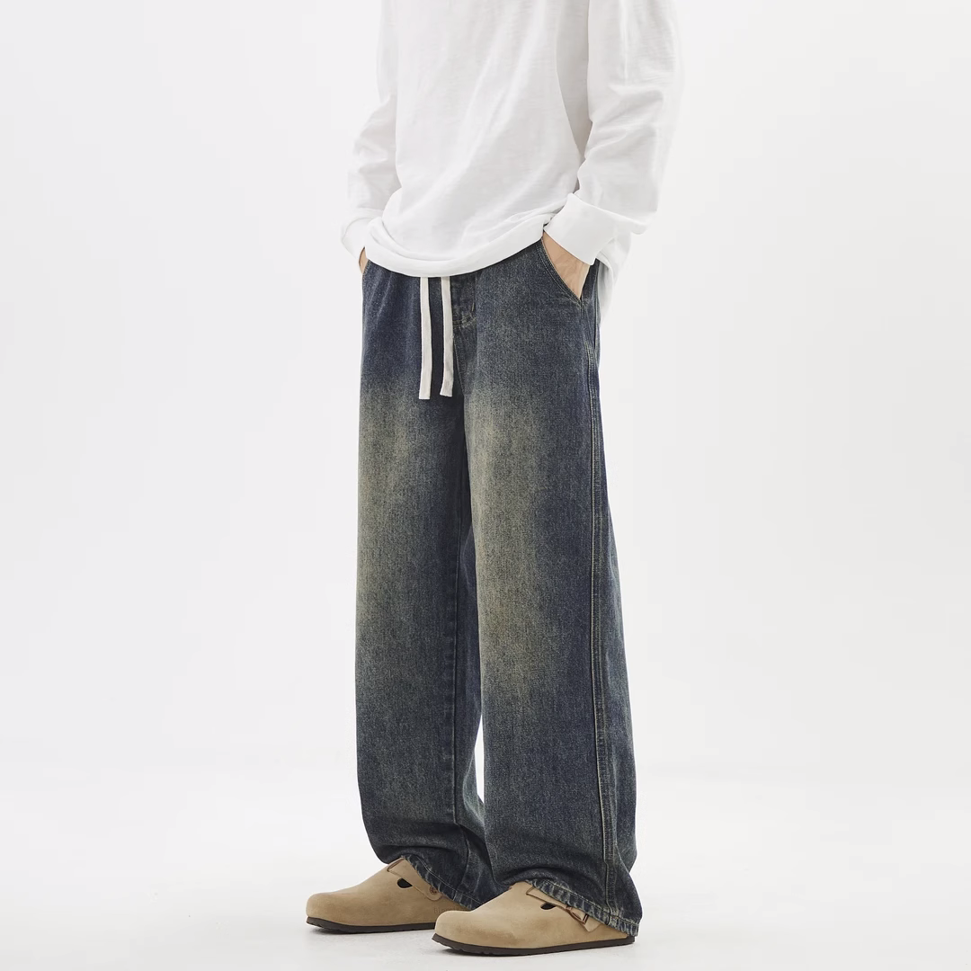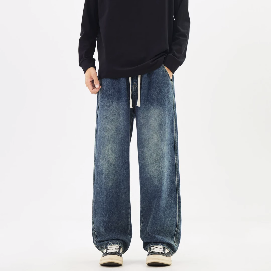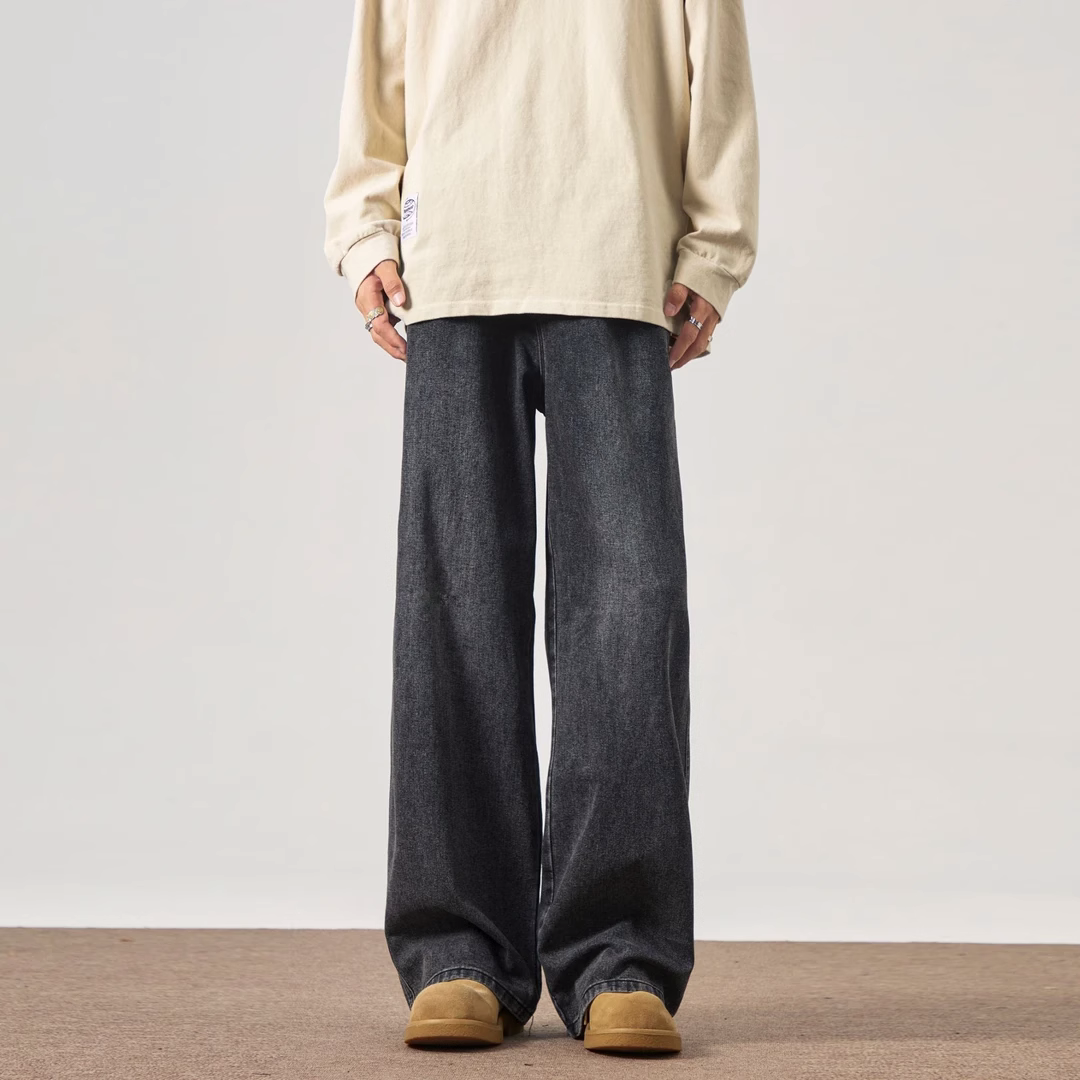 牛仔裤男士秋冬黑色美式男款裤子加绒男裤男生宽松休闲直筒裤长裤