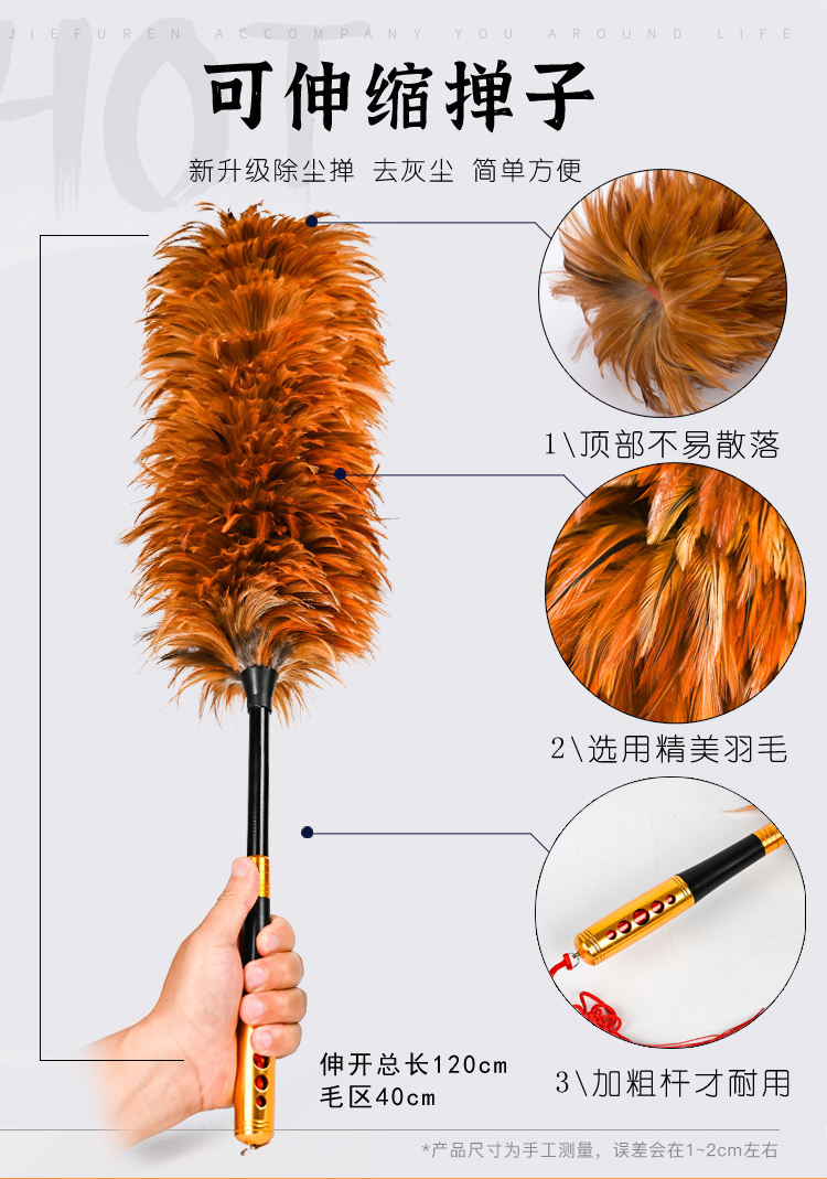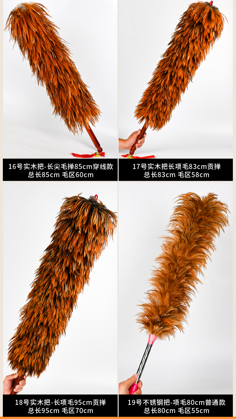 真鸡毛掸子扫灰除尘家用车用可水洗手工静电吸附扬尘客厅清洁强力