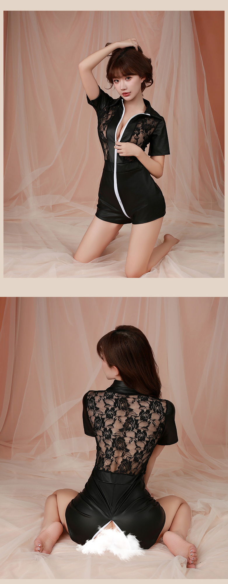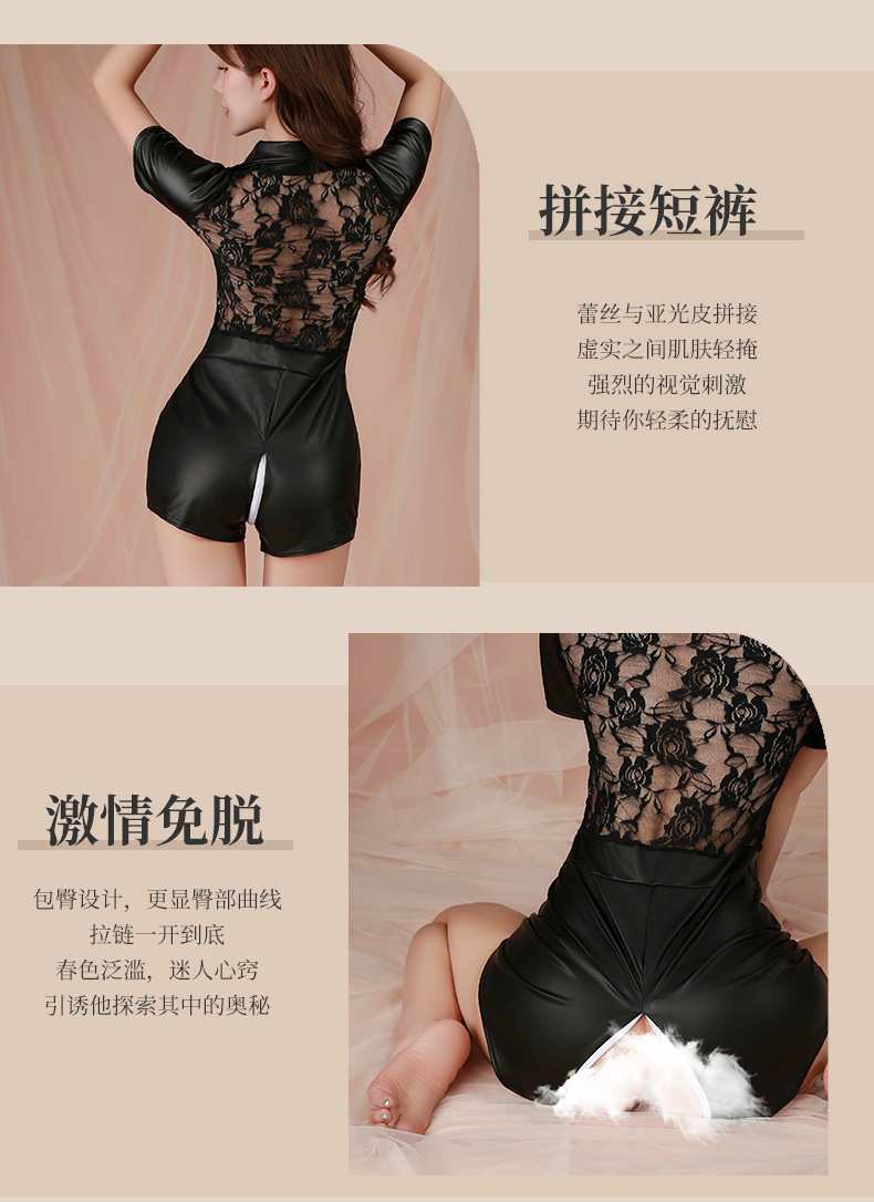 夜誓蒂妃内衣欧美性感塑身连体衣拉链带袖蕾丝内衣女