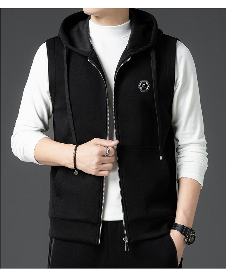 2024高端秋季新款欧货潮牌拉链连帽马甲男休闲时尚无袖坎肩背心